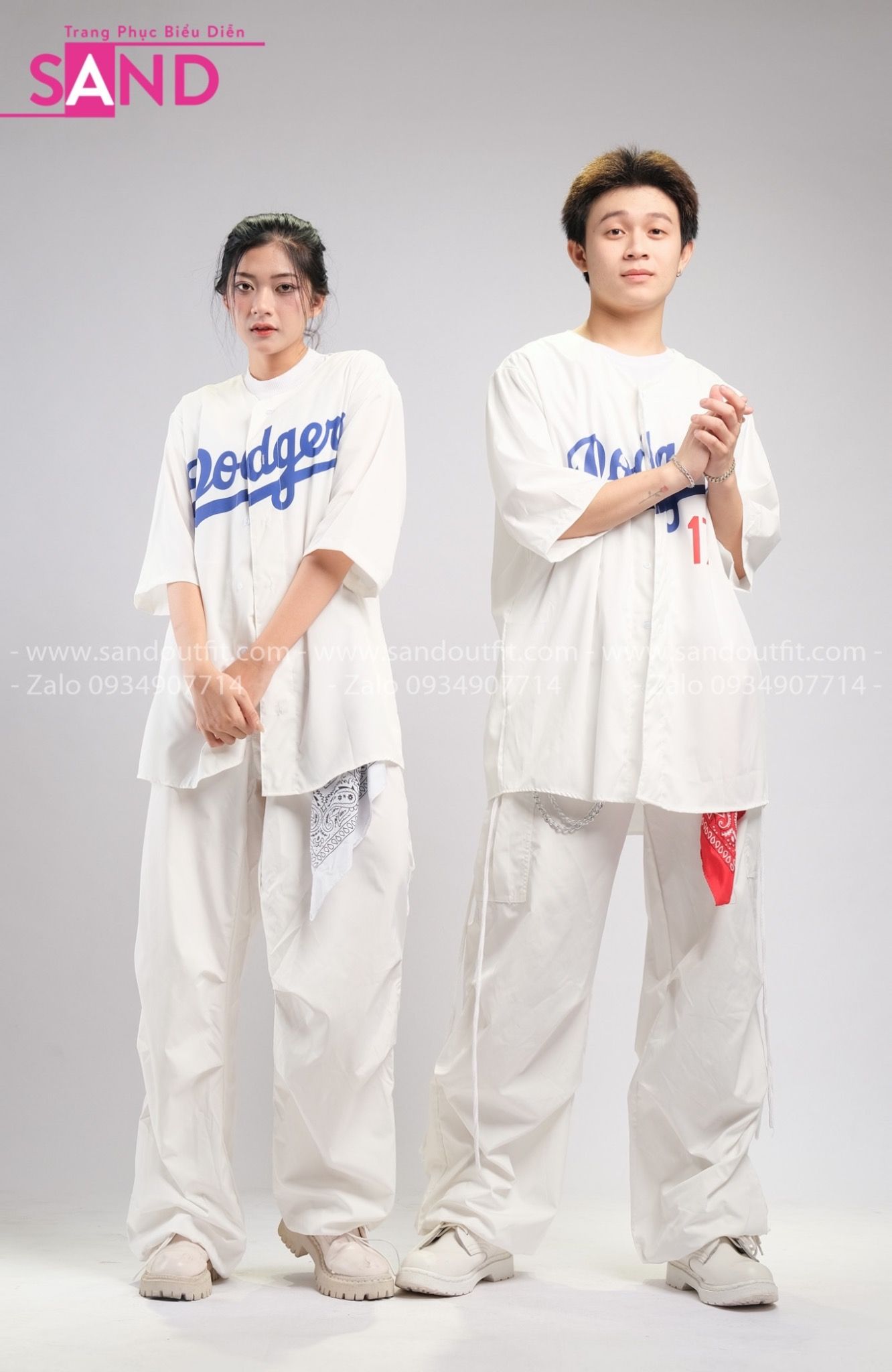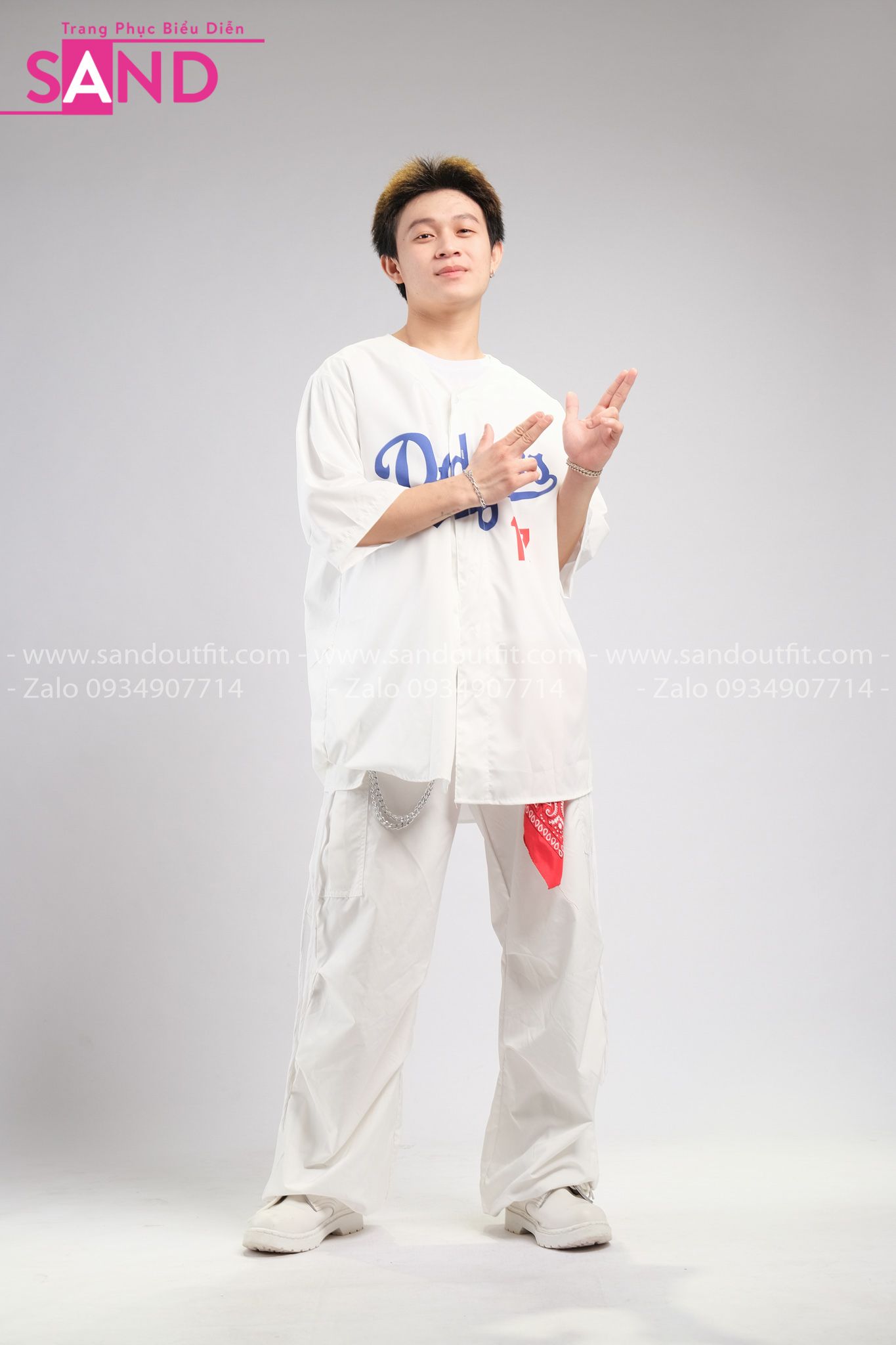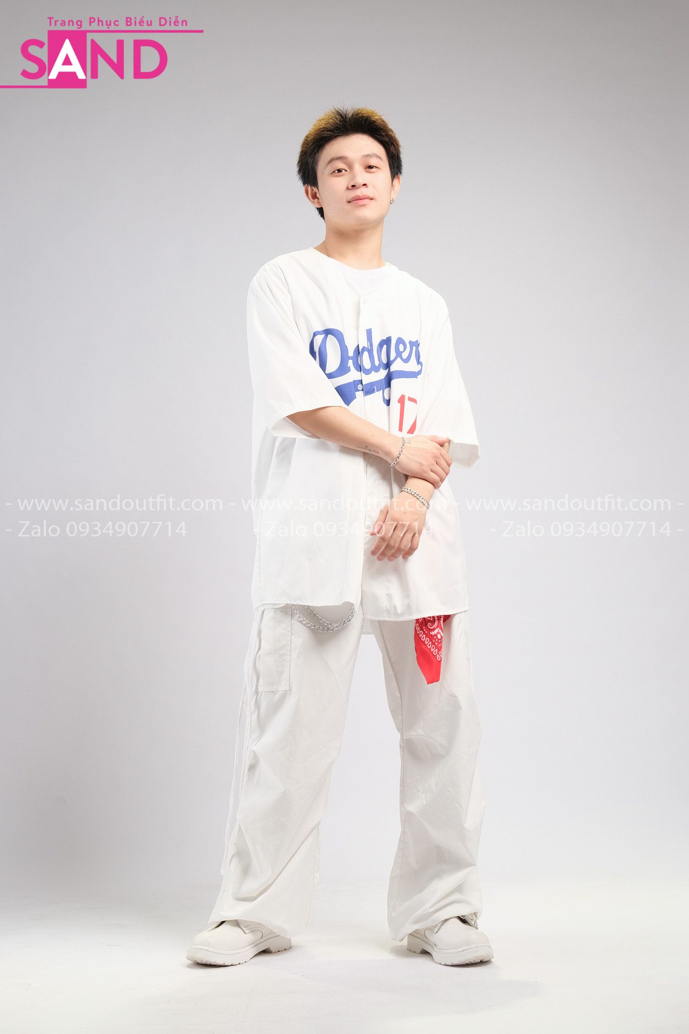 Outfit Phối Sẵn - (HQN0002 Quần Dài Trắng Nắp Túi Hộp Ngang Phối Dây phối HAB0001 Áo Bóng Chày Trắng Số 17)