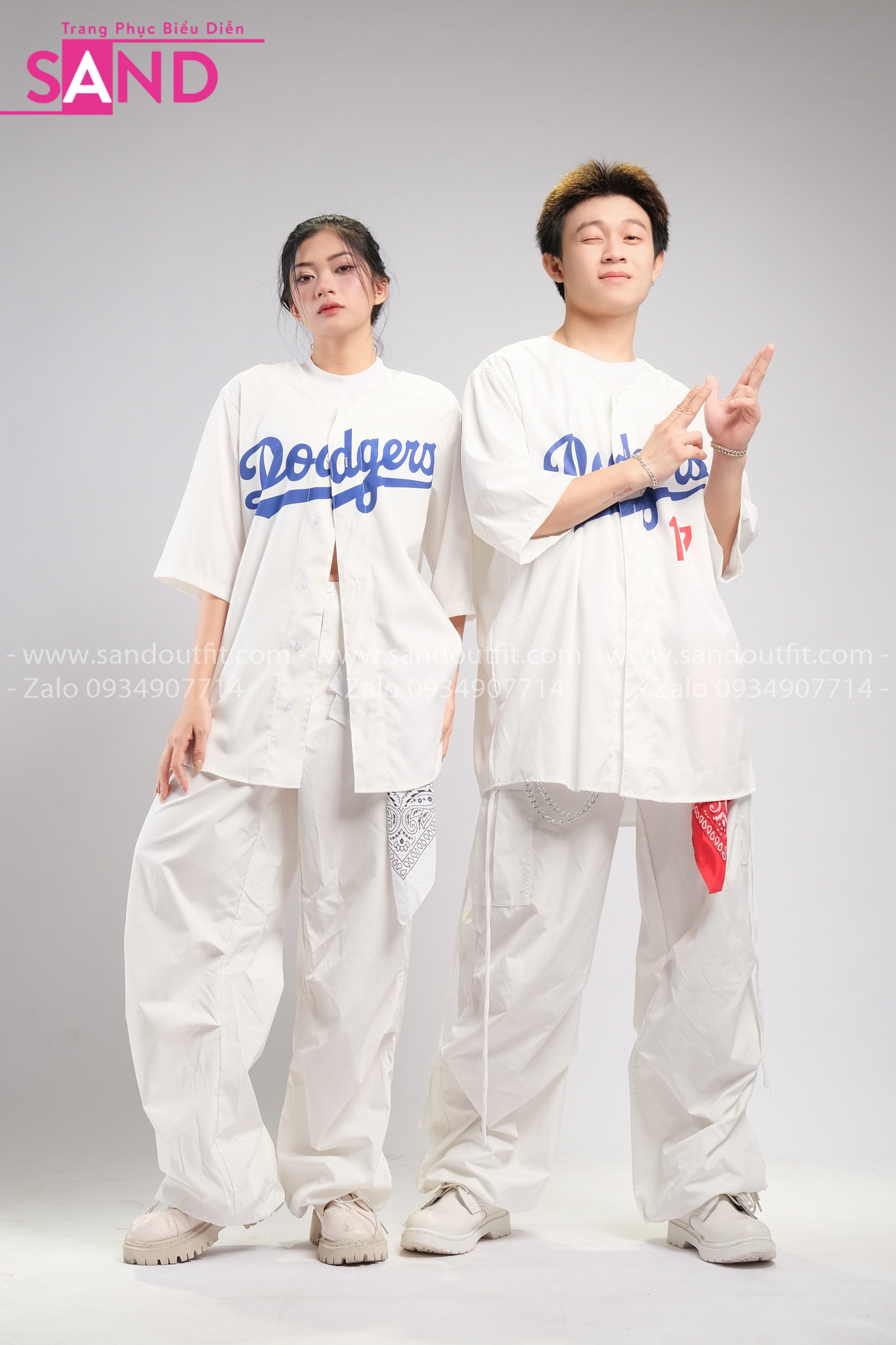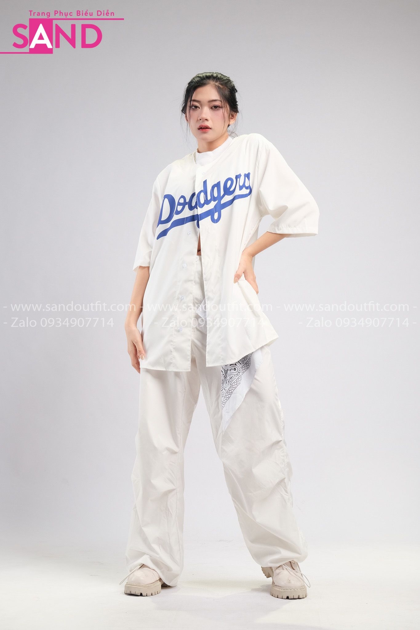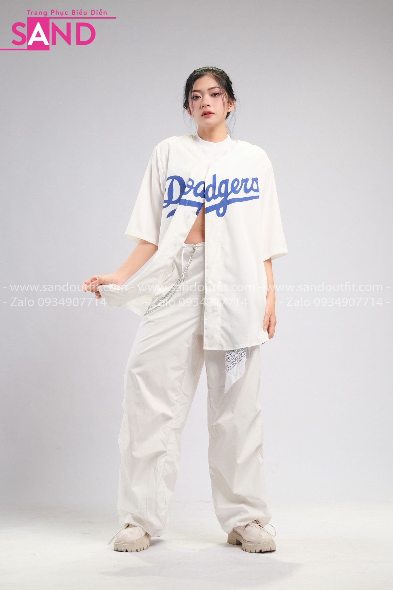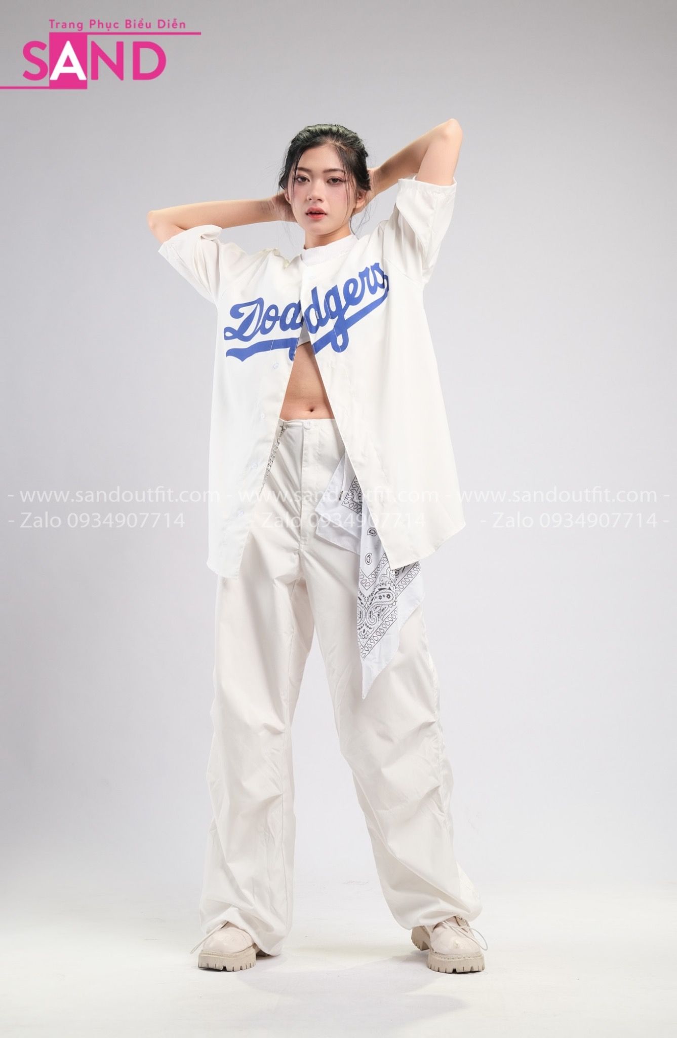 Outfit Phối Sẵn - (HQN0002 Quần Dài Trắng Nắp Túi Hộp Ngang Phối Dây phối HAB0001 Áo Bóng Chày Trắng Số 17)
