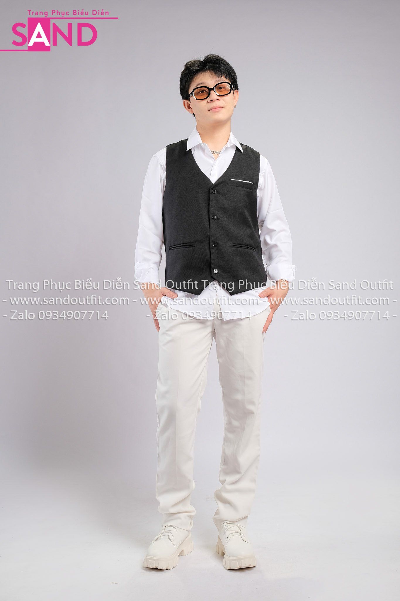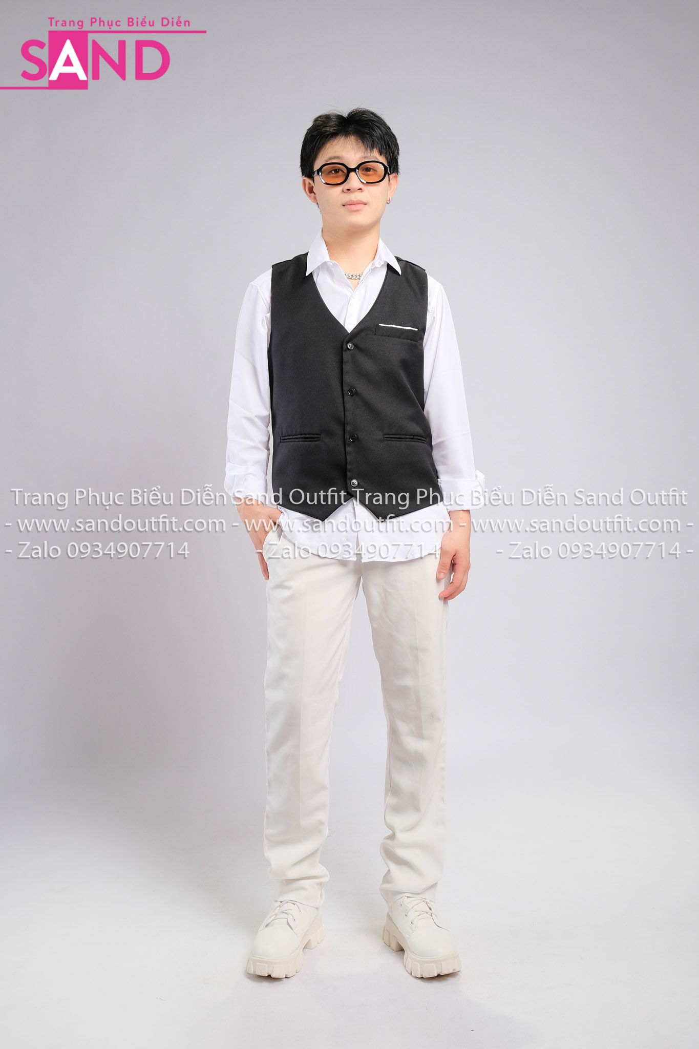 Outfit Phối Sẵn - ( HQD0002 Quần Tây Suông Nam Đủ Màu - Trắng phối HAG0101 Gile Rời Công Sở)