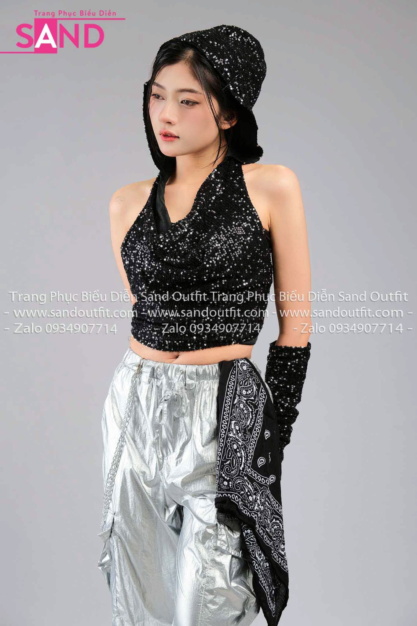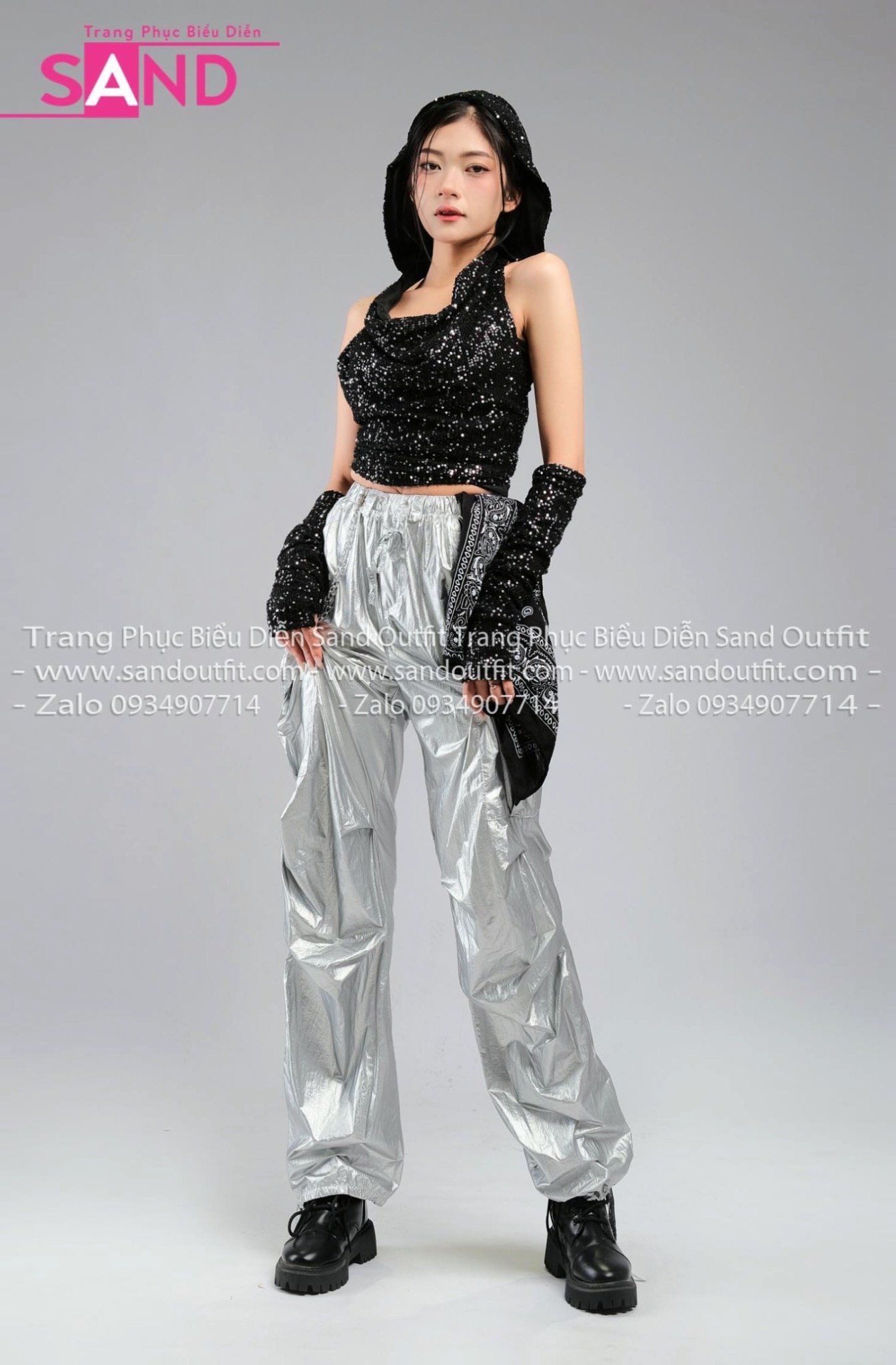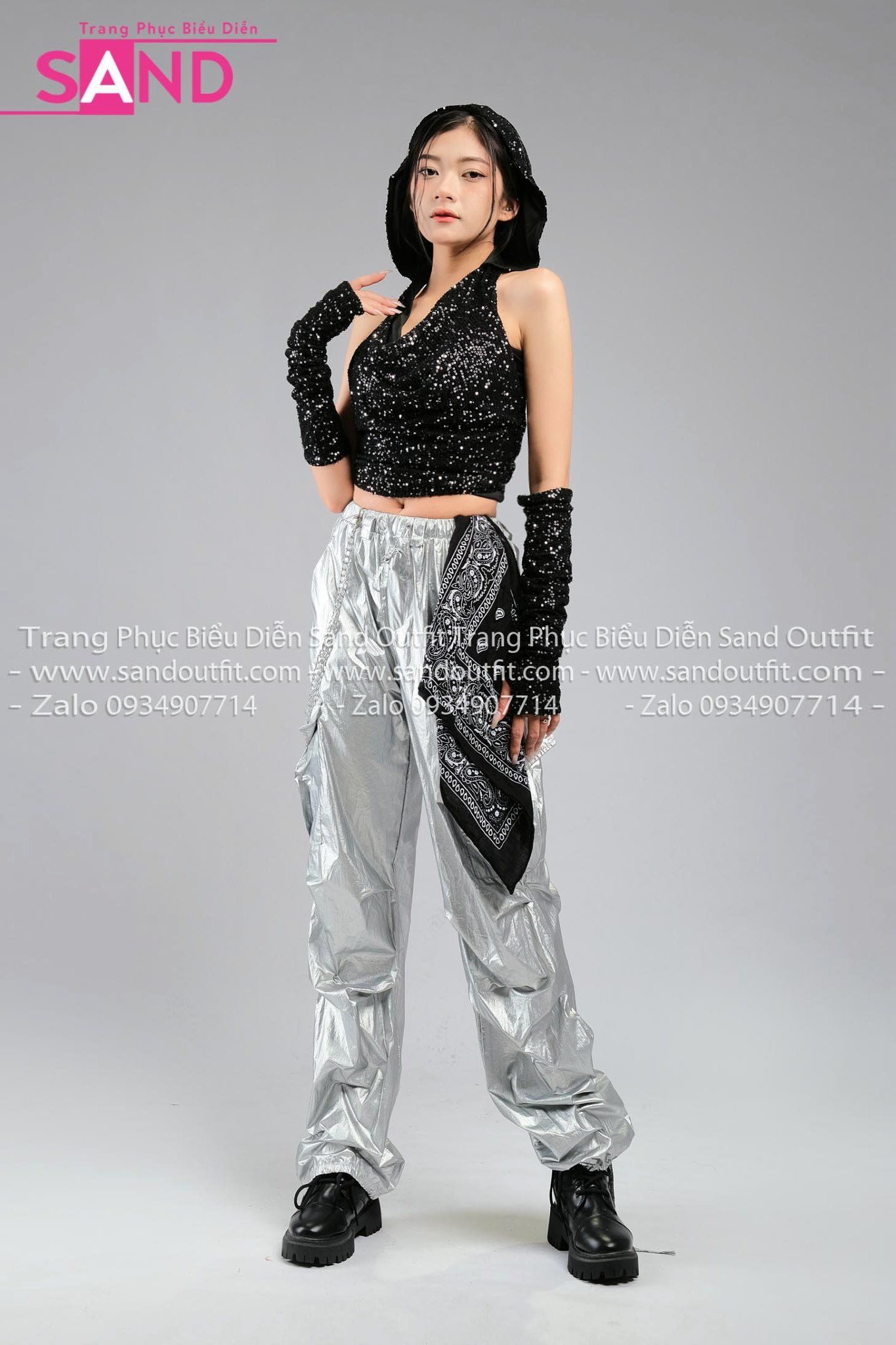 Outfit Phối Sẵn - (HQJ0202 Quần Bạc Jogger Túi Hộp Form Mềm phối HAM0103 Áo Kim Sa Đen Mũ Trùm Kèm Bao Tay Kim Sa)