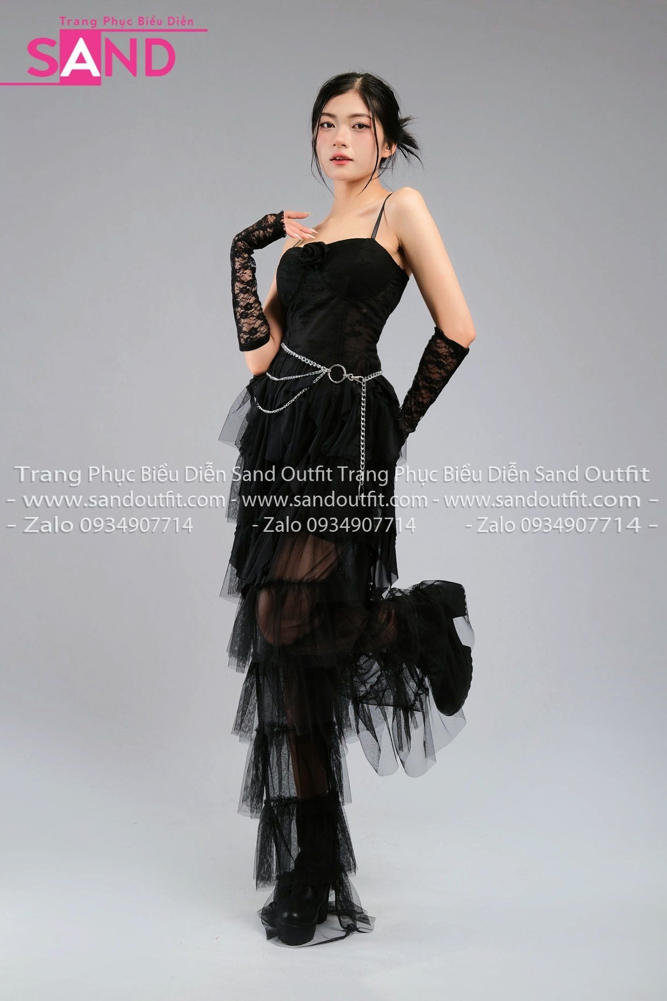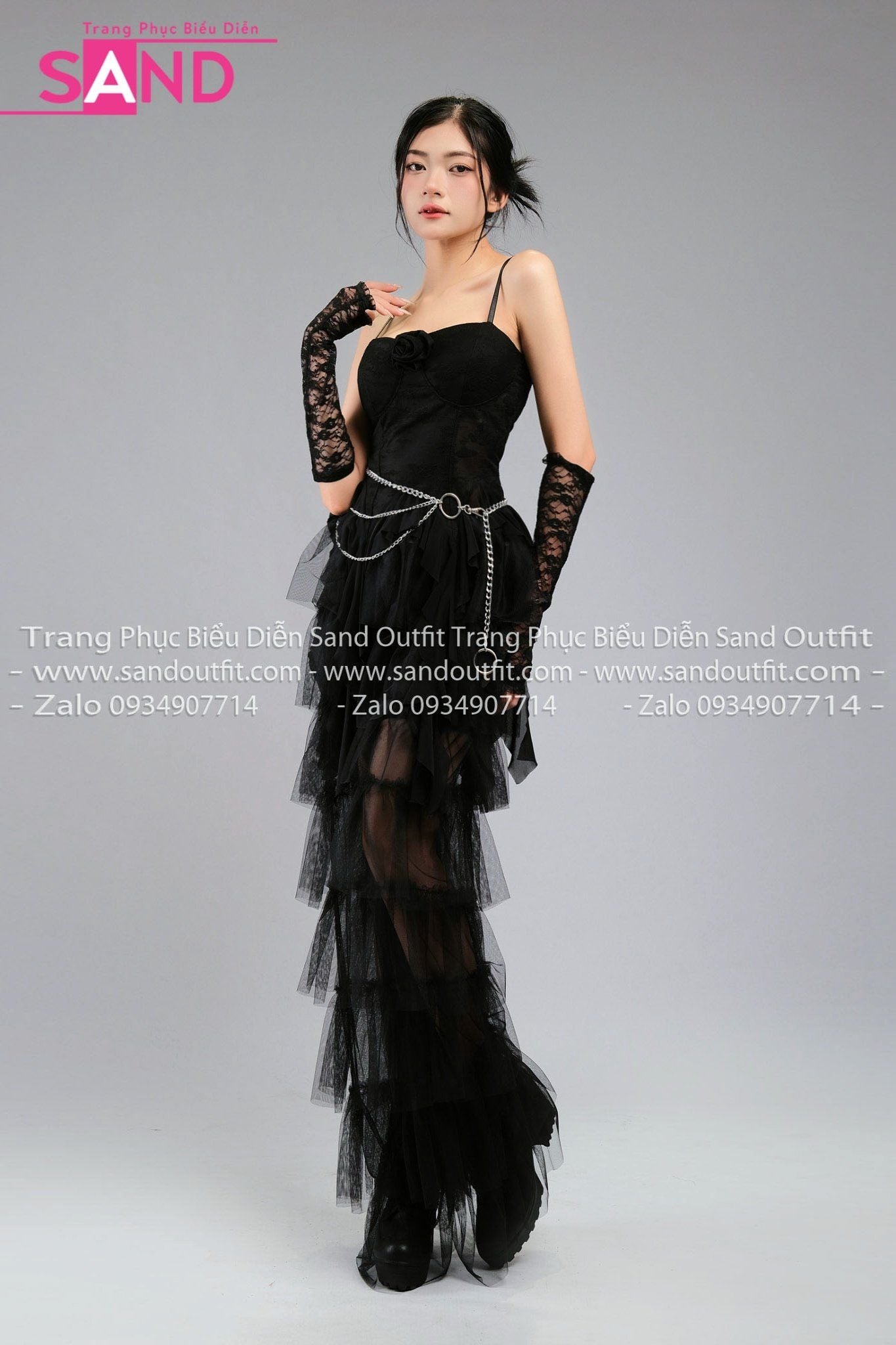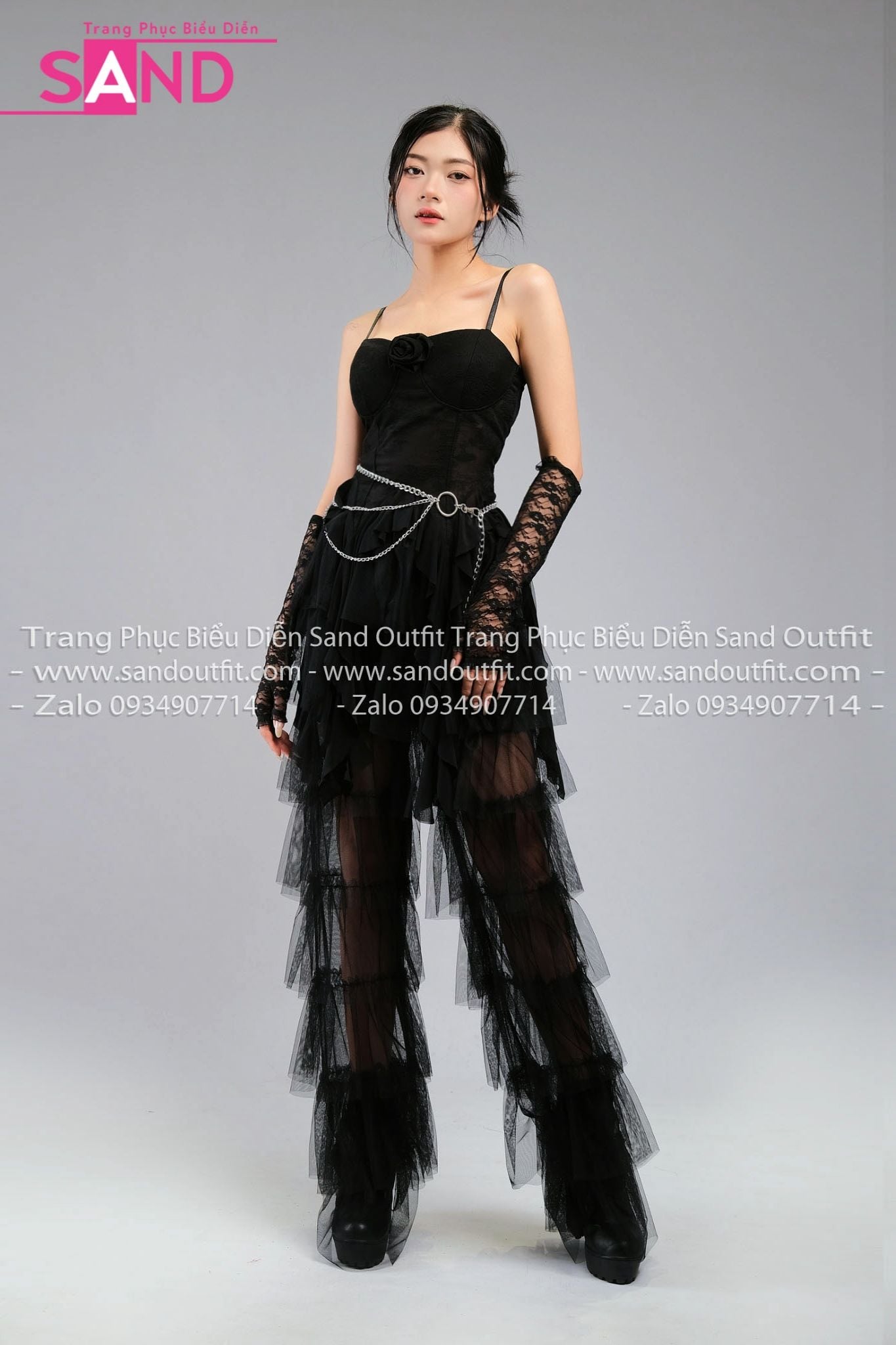 Outfit Phối Sẵn - ( HQD0102 Quần Dài Tua Rua Tầng Voan phối HAQ0101 Áo 2 Dây Cúp Ngực Tua Rua Đen)