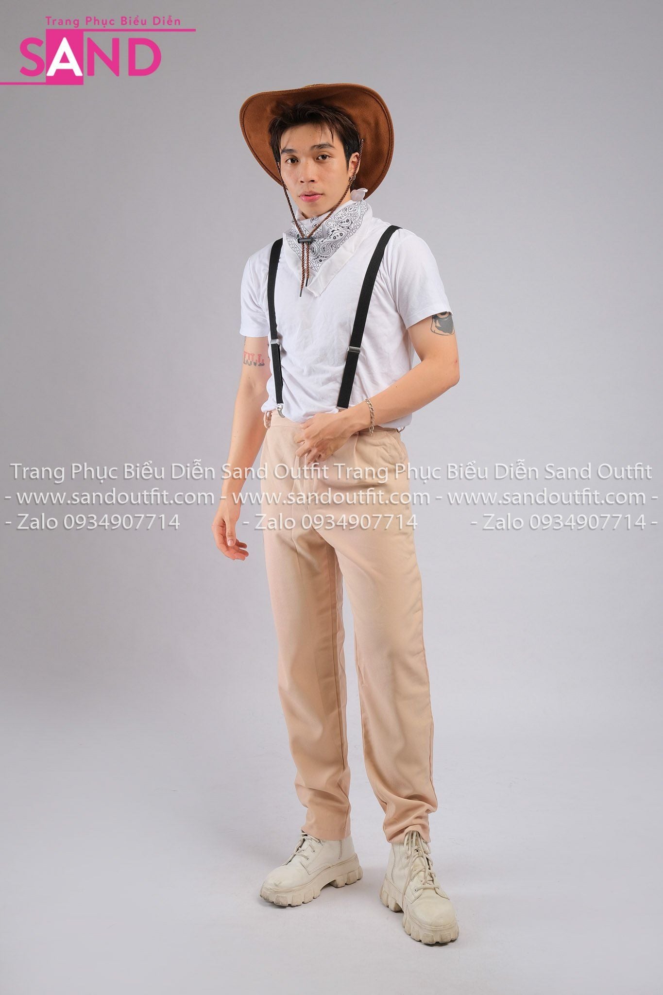 Outfit Phối Sẵn - (HAT0001 Áo Thun Ngắn Tay Basic Trắng phối PDN0101 Dây Đai Chữ Y - HQD1001 Quần Be Học Sinh Nam)