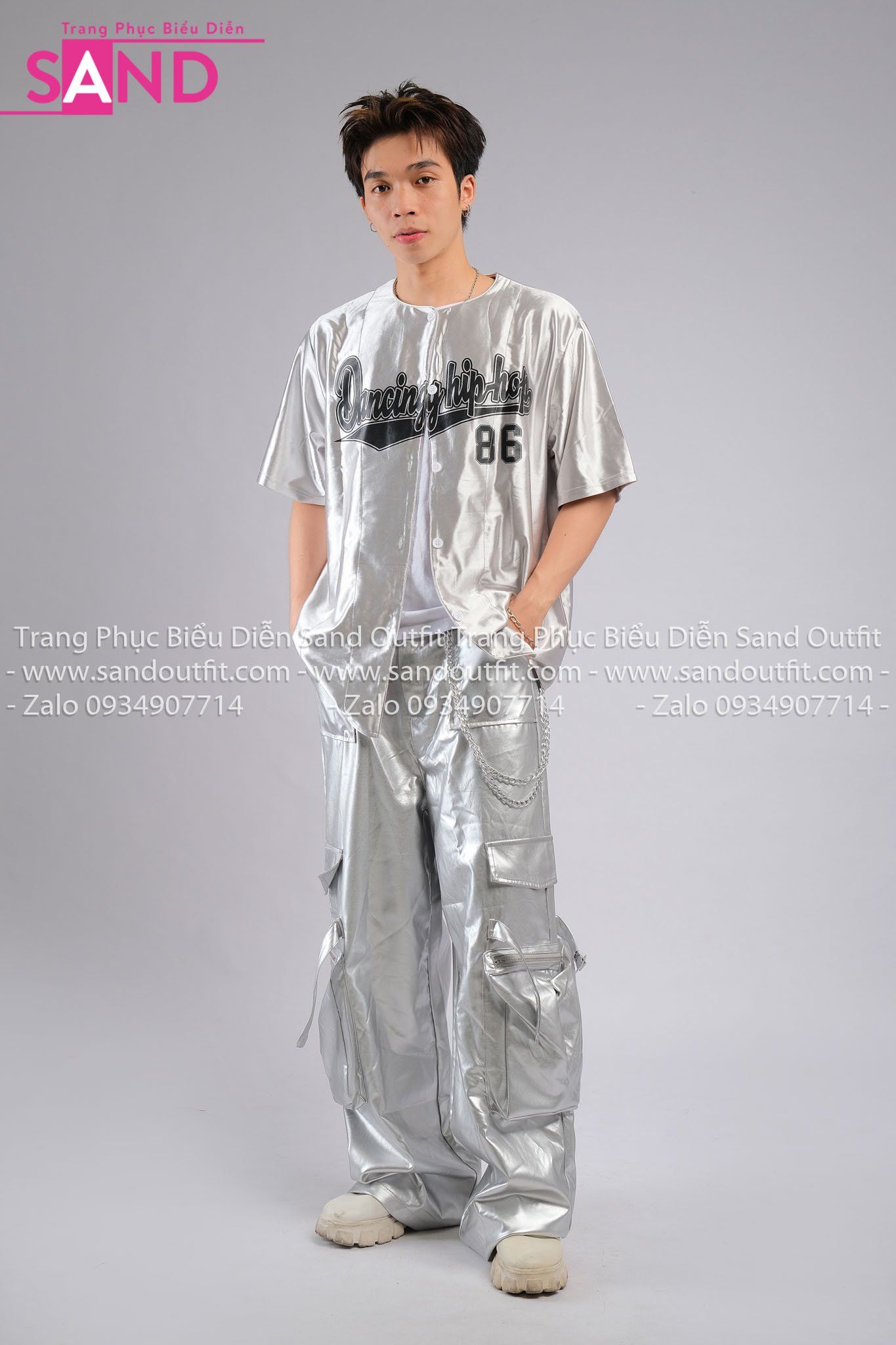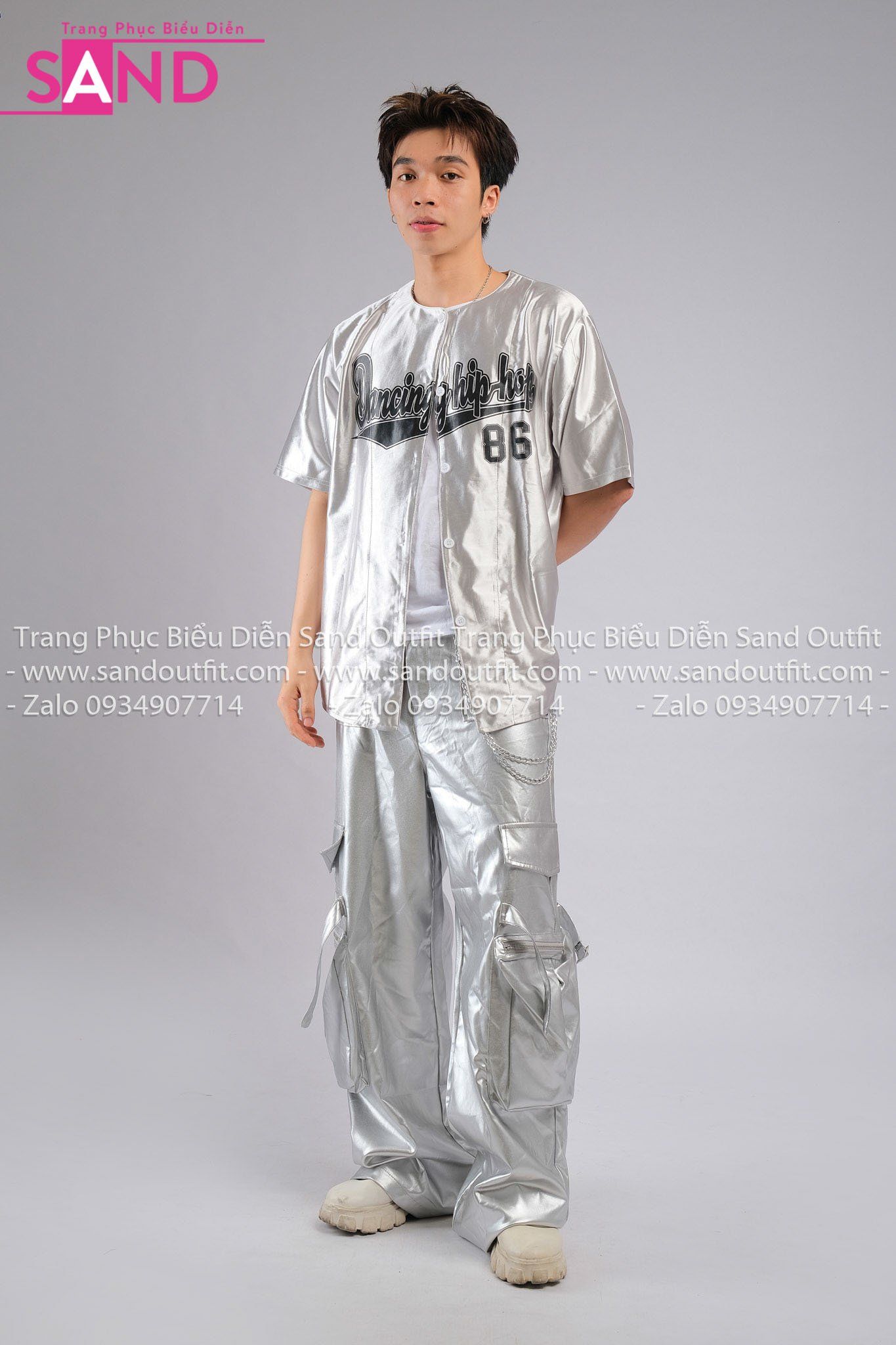 Outfit Phối Sẵn - (HAB0201 Áo Bóng Chày Bạc phối HQD0203 Quần Bạc Ống Suông Túi Hộp Form Cứng )