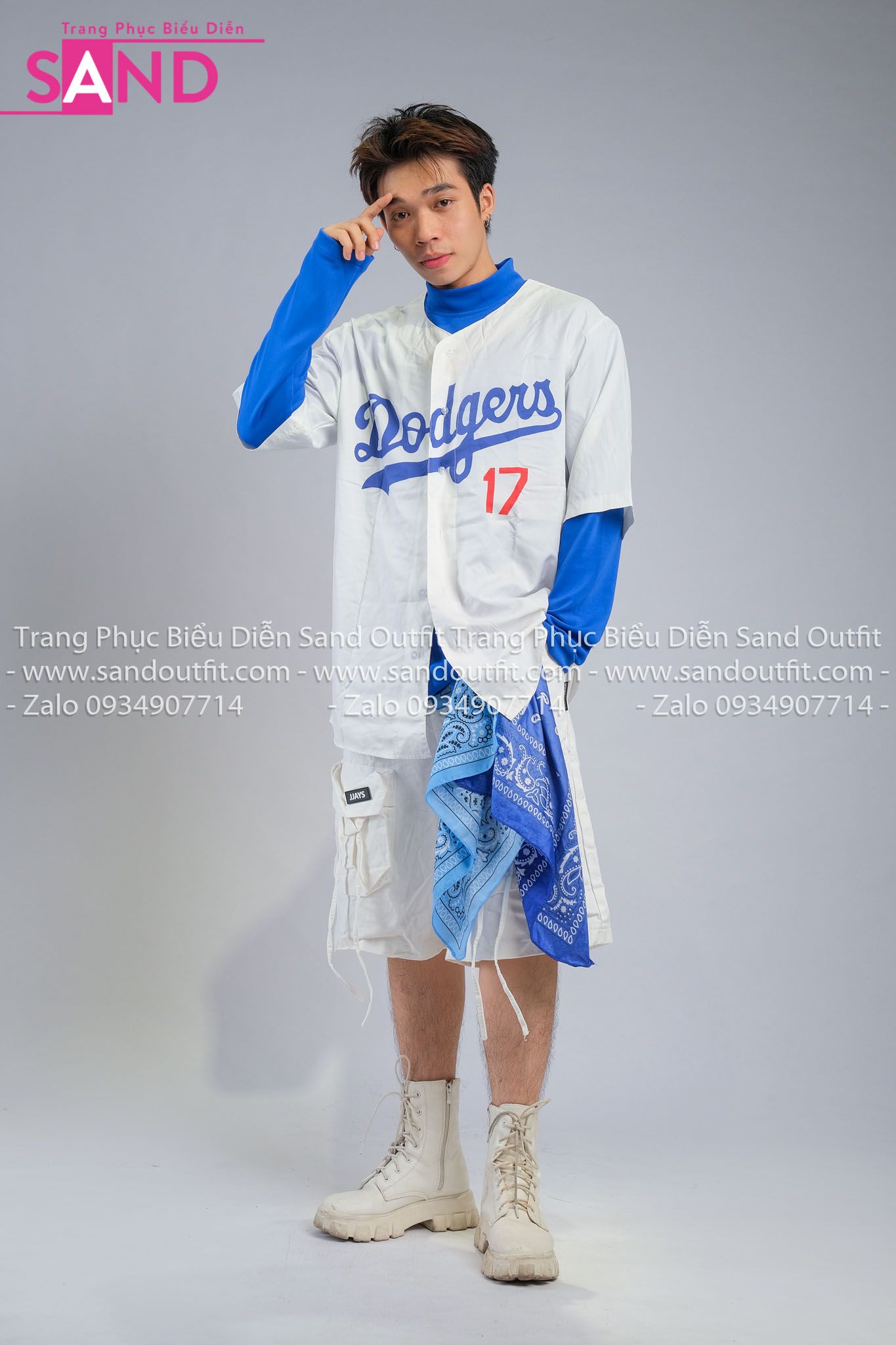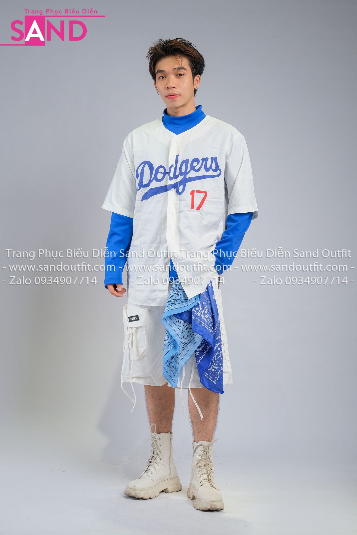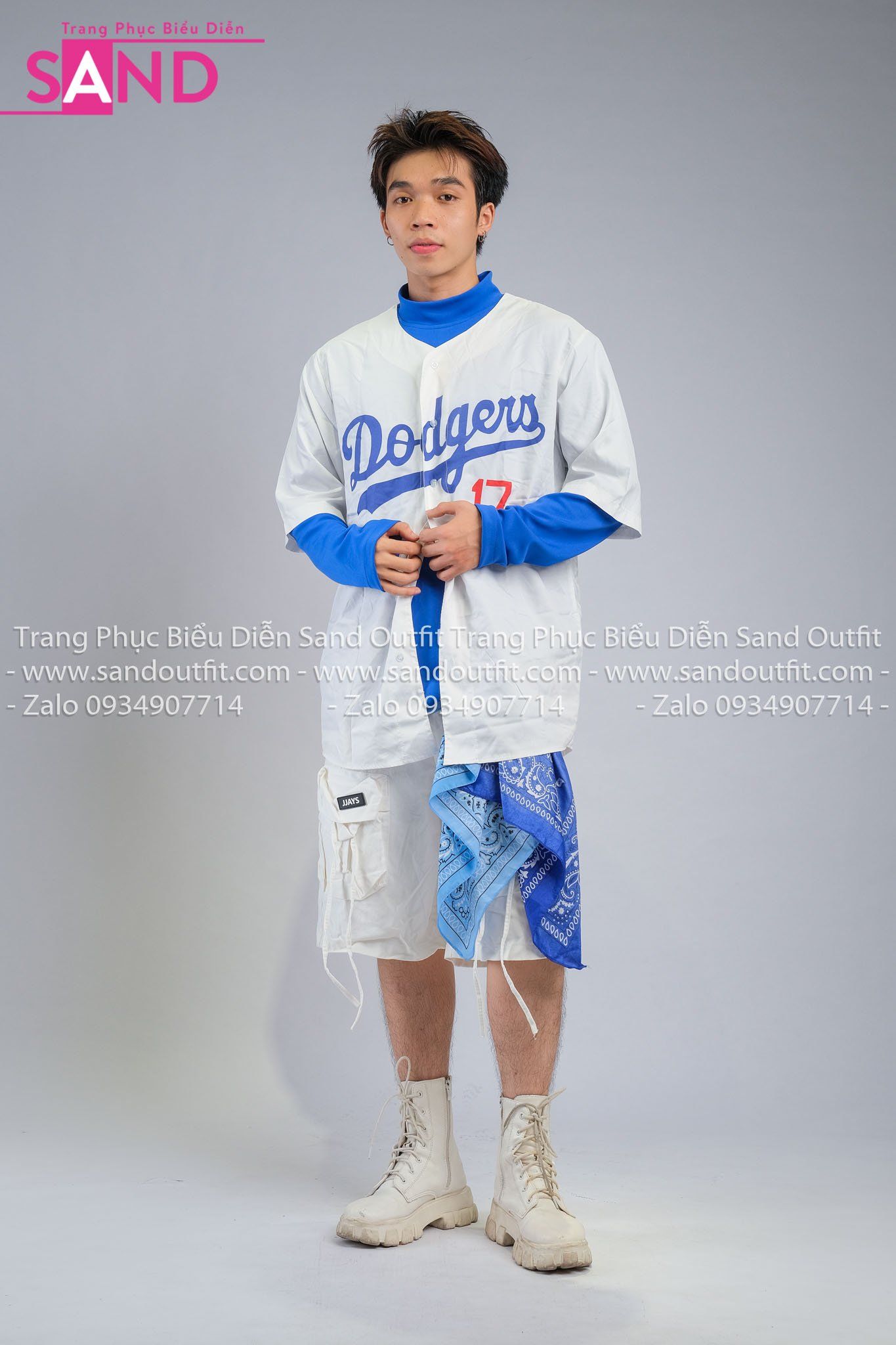 Outfit Phối Sẵn - (HAB0001 Áo Bóng Chày Trắng Số 17 phối HST0008 Quần Short Ống Rộng Túi Hộp - Trắng )