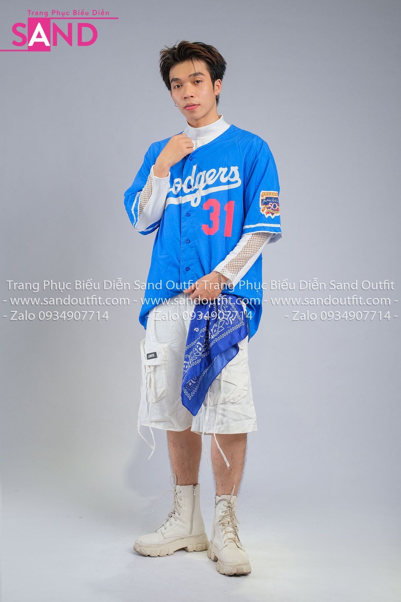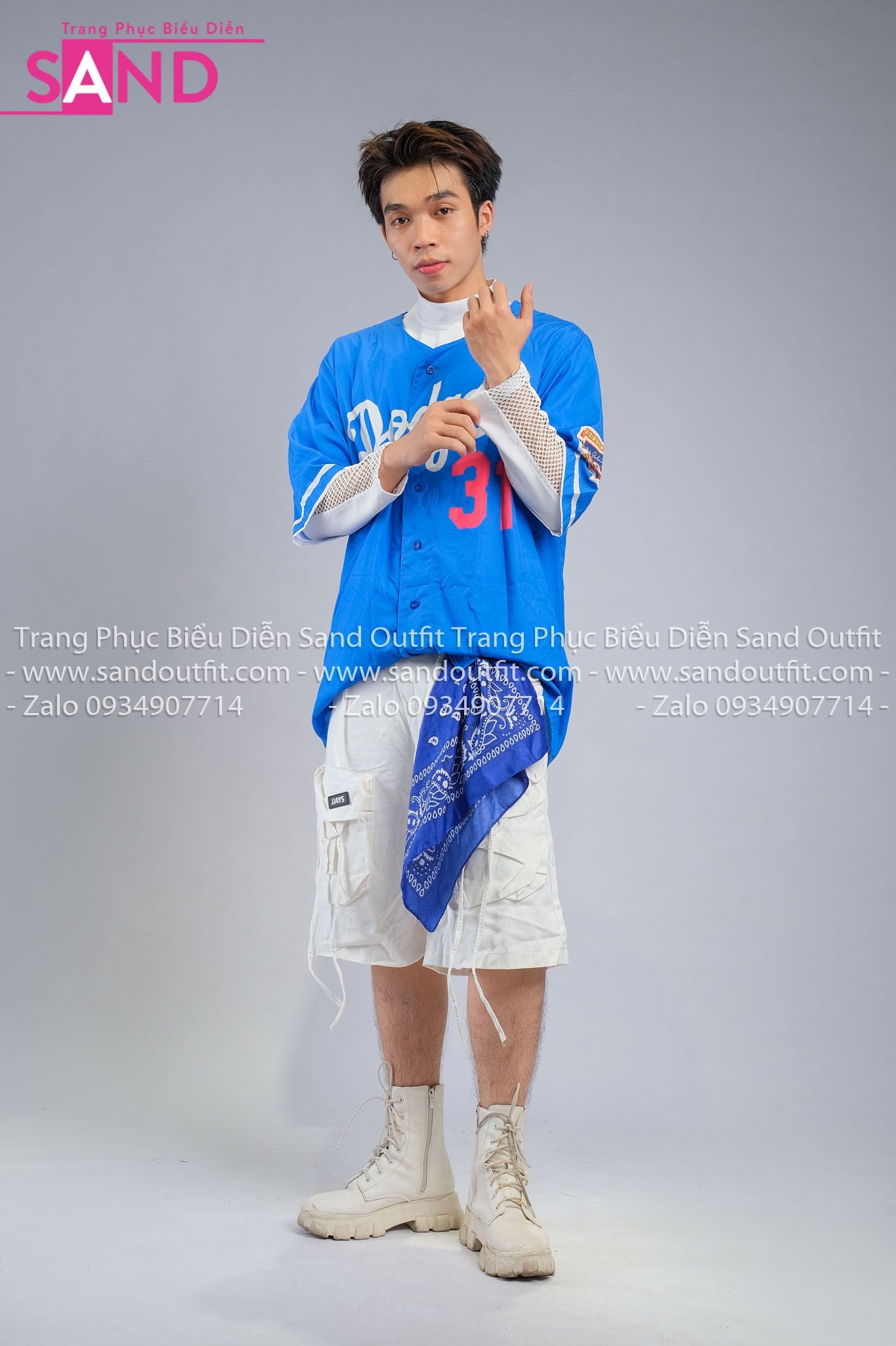 Outfit Phối Sẵn - (HAB0803 Áo Bóng Chày Xanh Dương Số 31 phối HST0008 Quần Short Ống Rộng Túi Hộp - Trắng)
