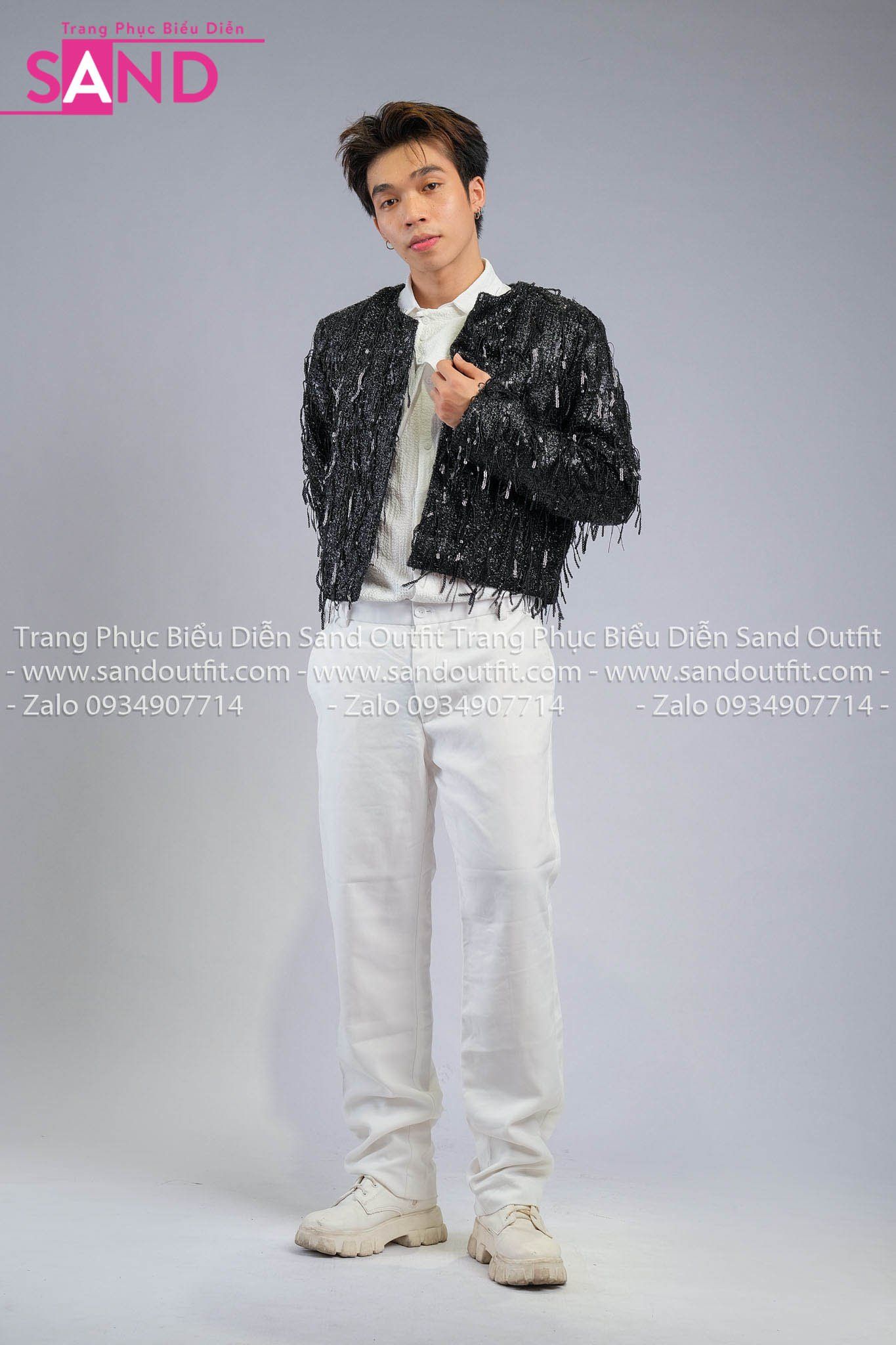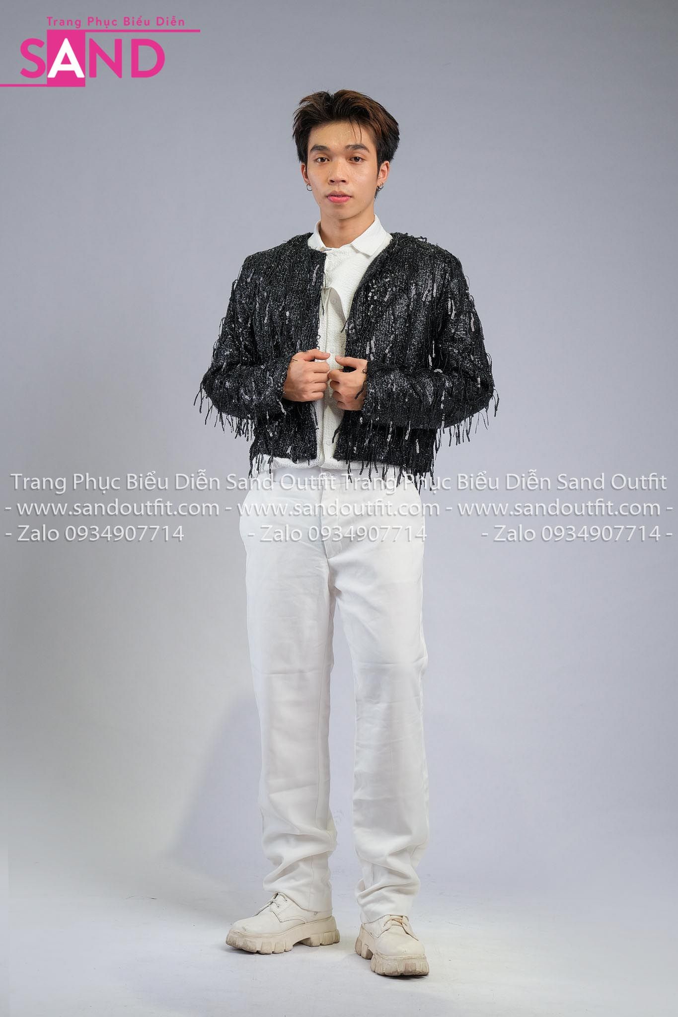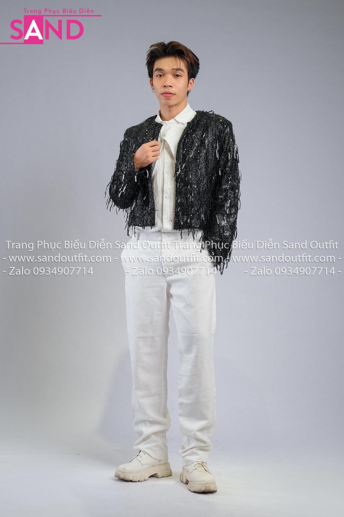 Outfit Phối Sẵn - (HAM0407 Áo Khoác Kim Sa Tua Rua Đen Nam phối HQD0002 Quần Tây Suông Nam Đủ Màu - Trắng)