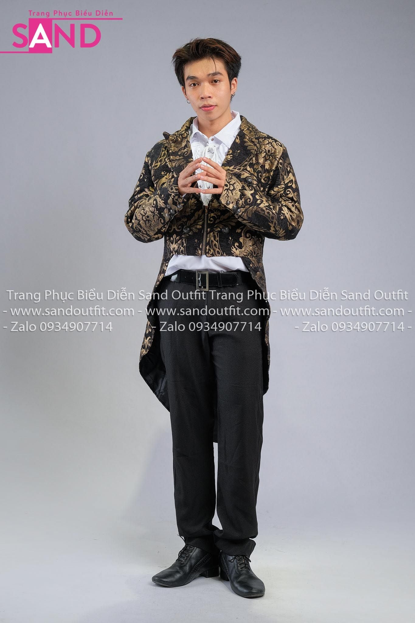 TAV0005 Khoác Vest Đuôi Dài Hoạ Tiết Nâu Sang Trọng- Đen