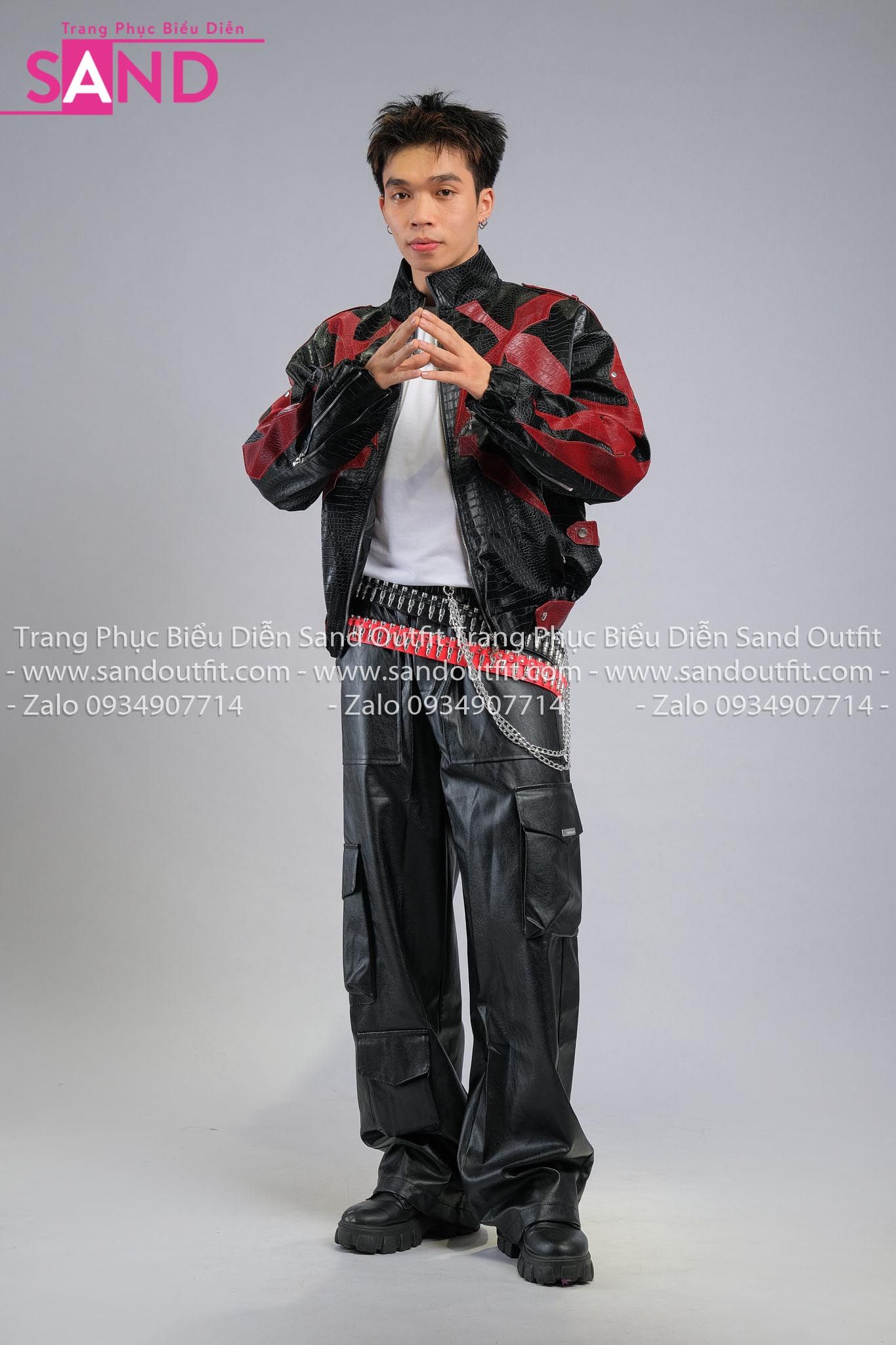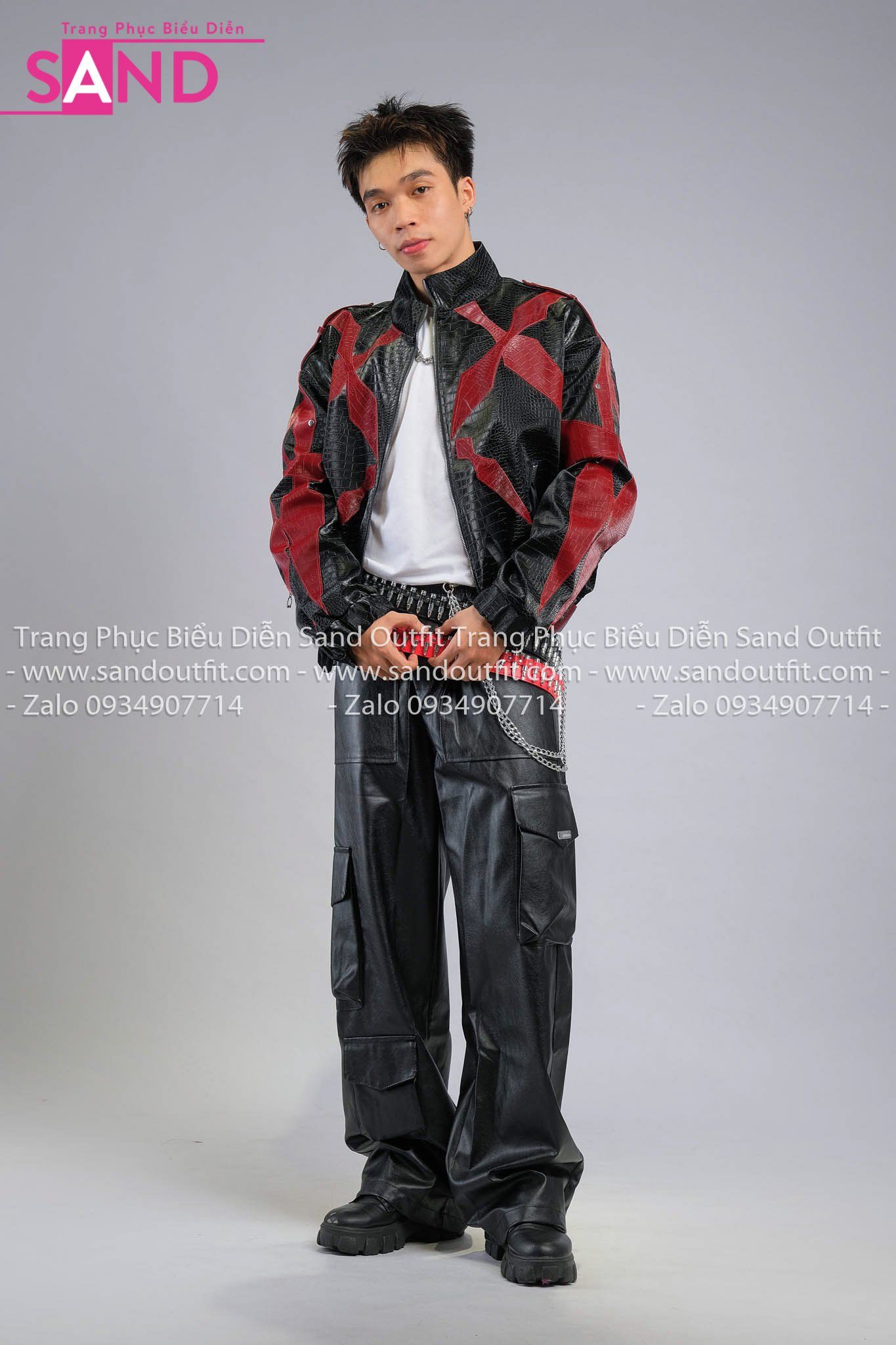 Outfit Phối Sẵn - (HAD0131 Áo Khoác Da Cá Sấu Đen Phối Đỏ Nam phối HQA0106 Quần Da Suông Túi Hộp Nam - Đen)