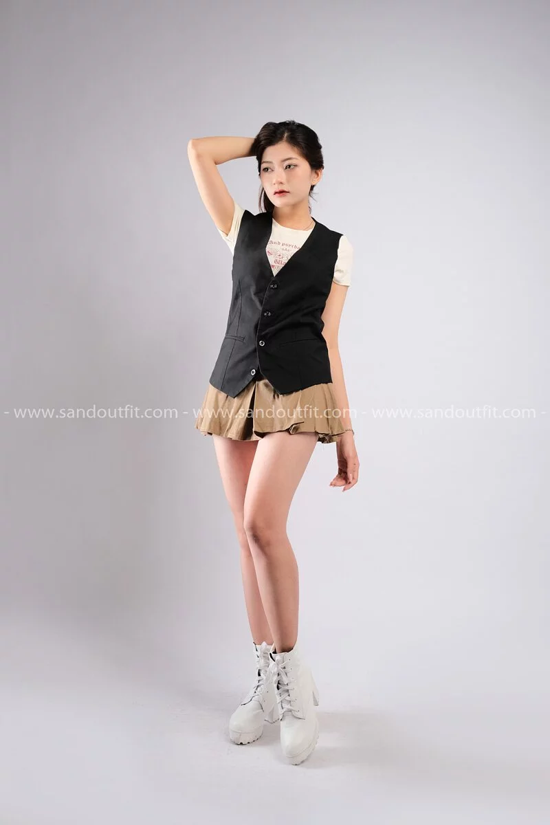 Outfit Phối Sẵn - (Chân Váy Chữ A Nâu phối Gile Kaki Đen)