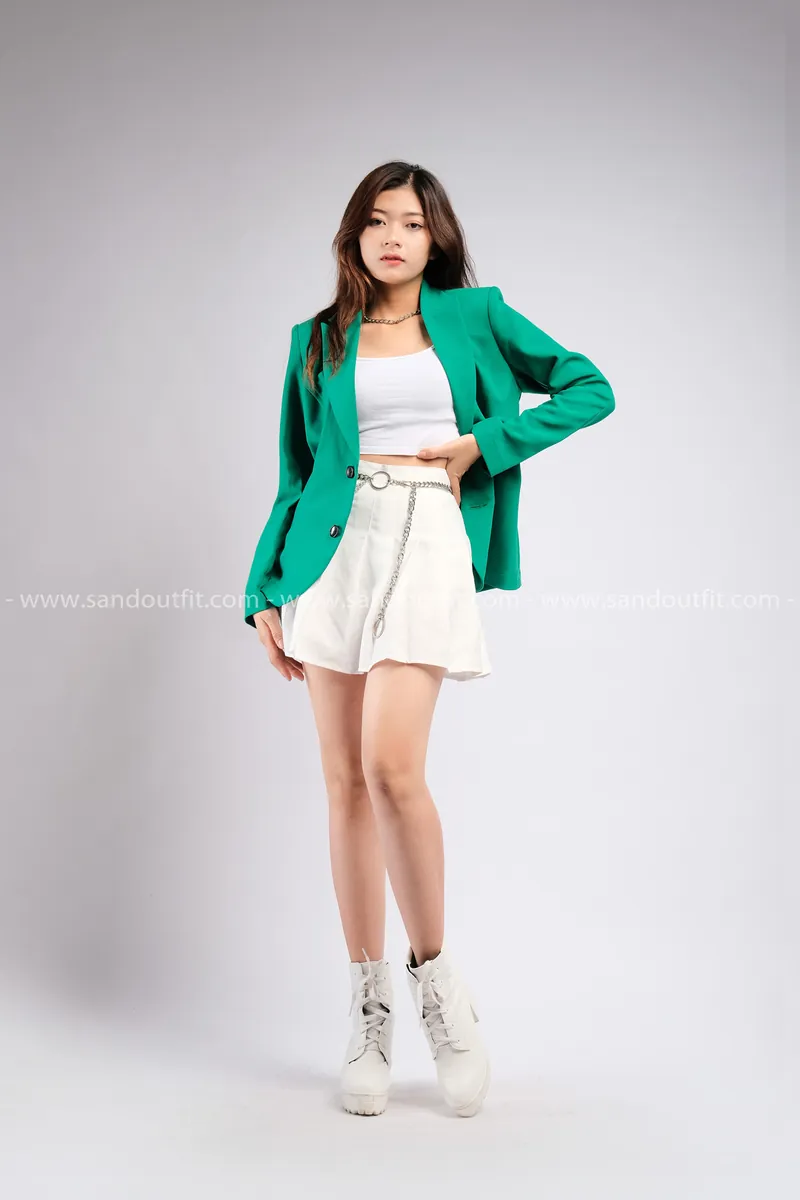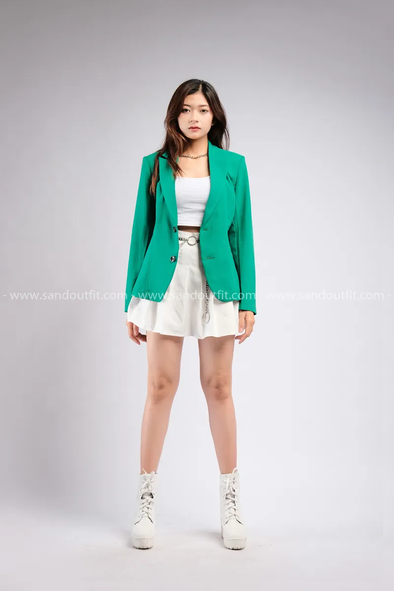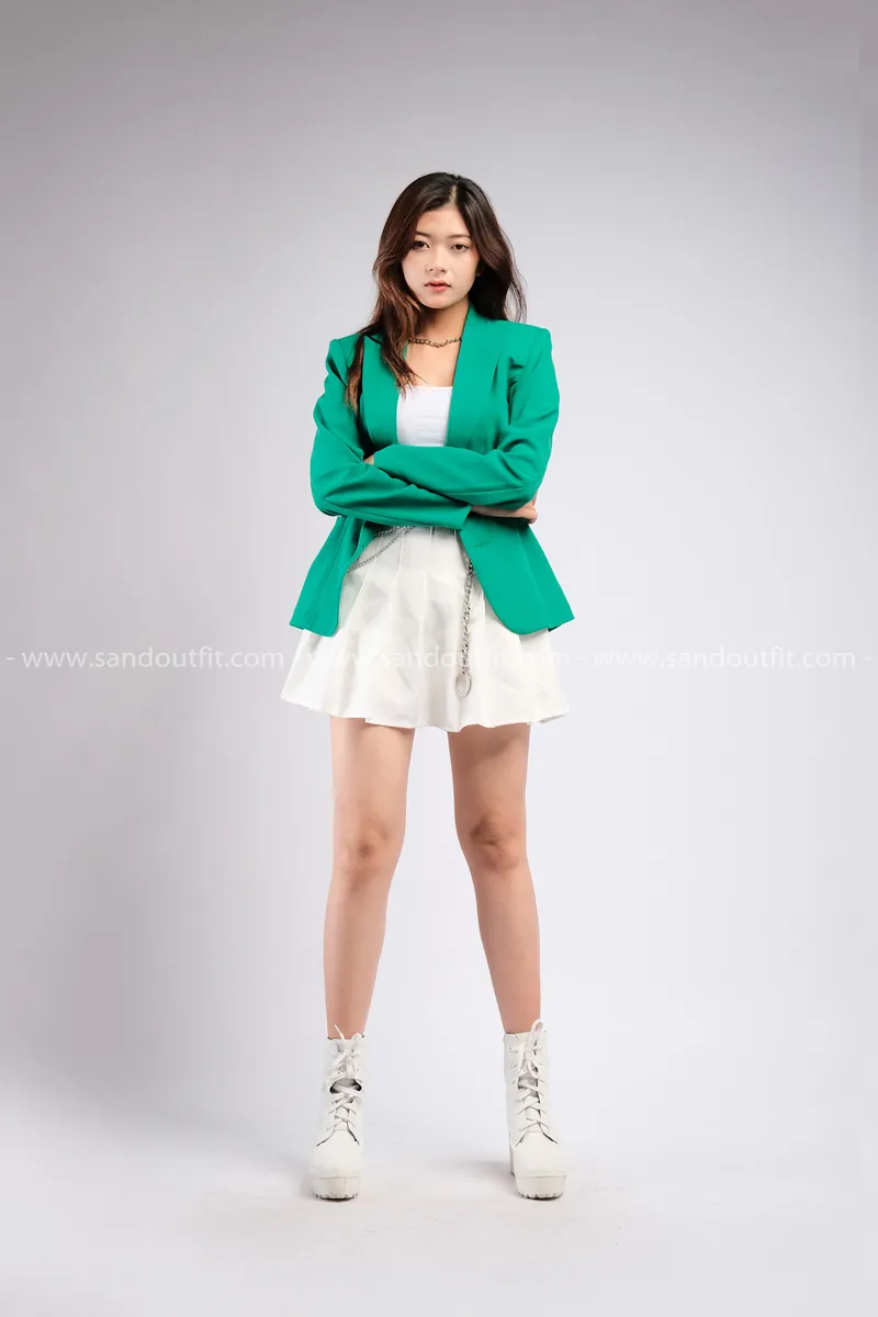 Outfit Phối Sẵn - (Chân Váy Trắng phối Vest Xanh Lá)