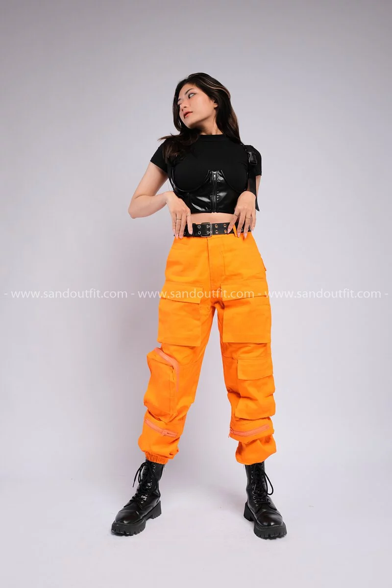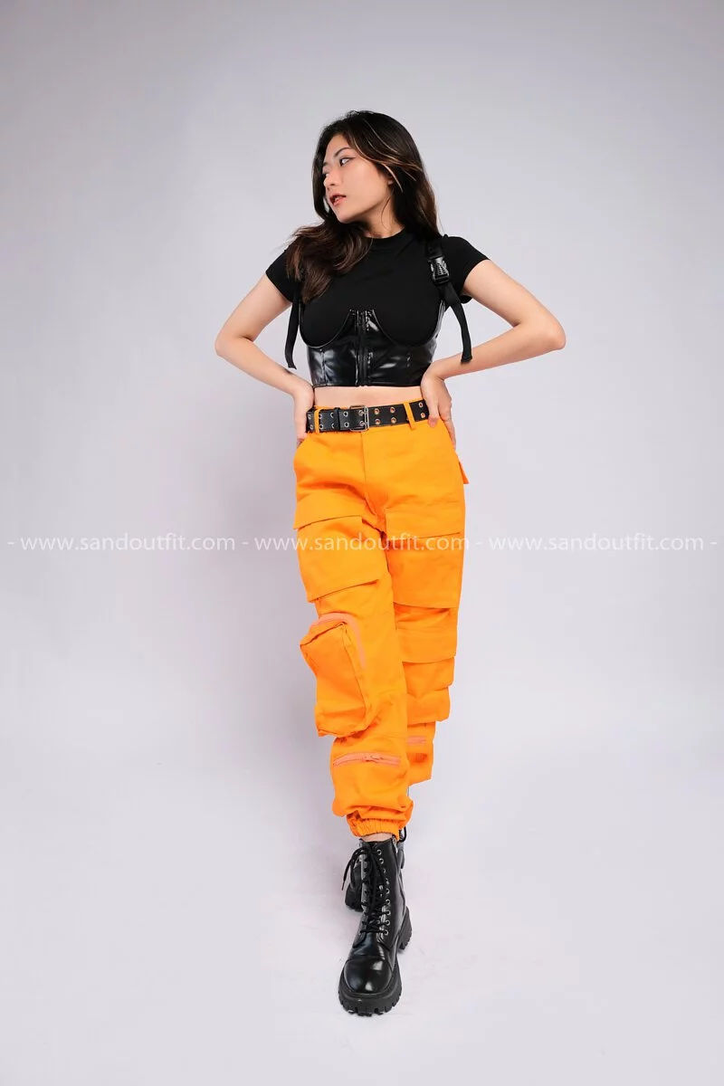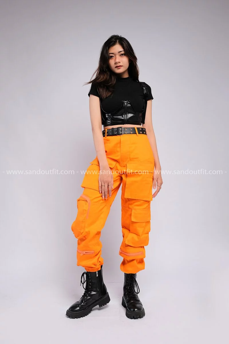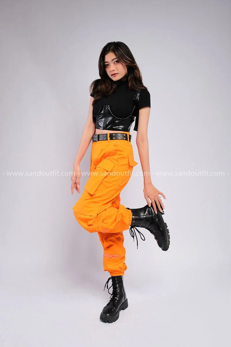 Outfit Phối Sẵn - (Quần 6 Túi Cam phối Áo Croptop)