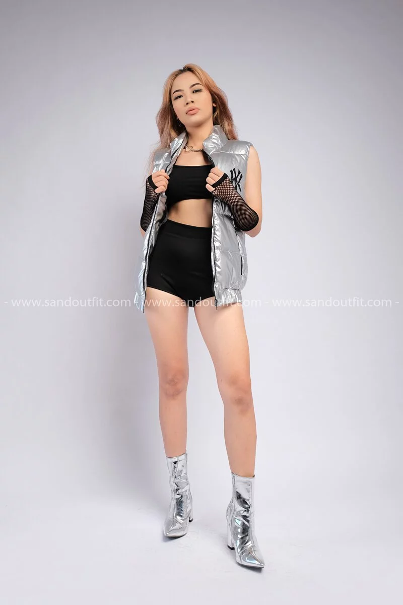 Outfit Phối Sẵn - (Quần Cạp Cao phối HAP0202 Áo Khoác Gile Phao Không Tay Da Bóng - Bạc)