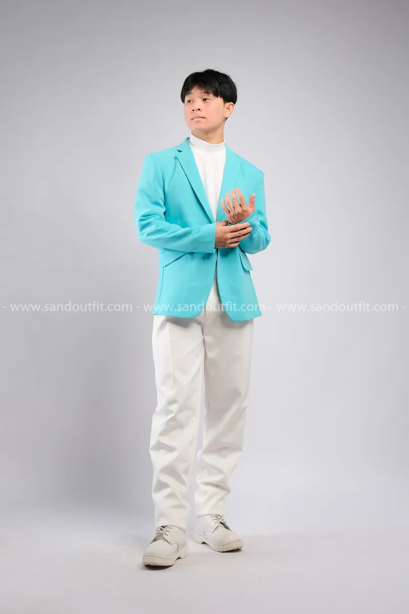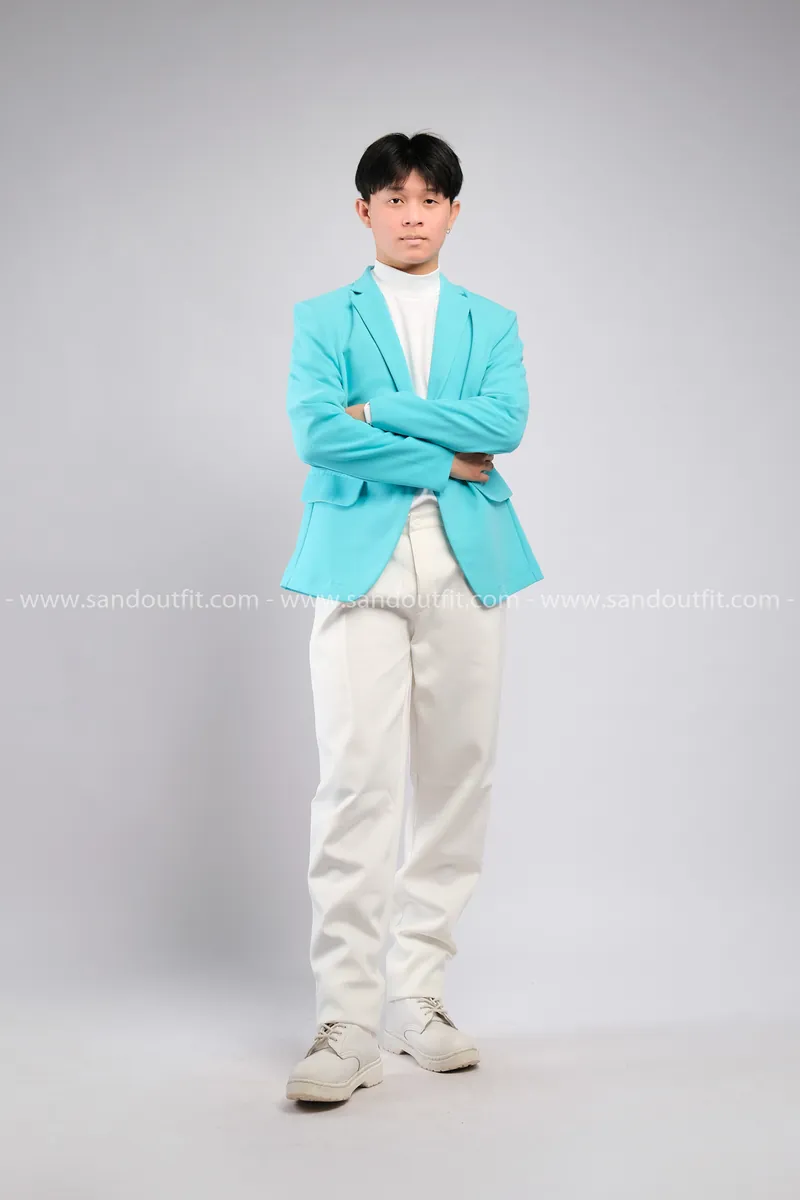 Outfit Phối Sẵn - (Quần Dài Kaki Ống Suông Trắng phối Vest Xanh Biển)