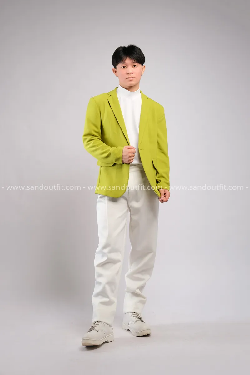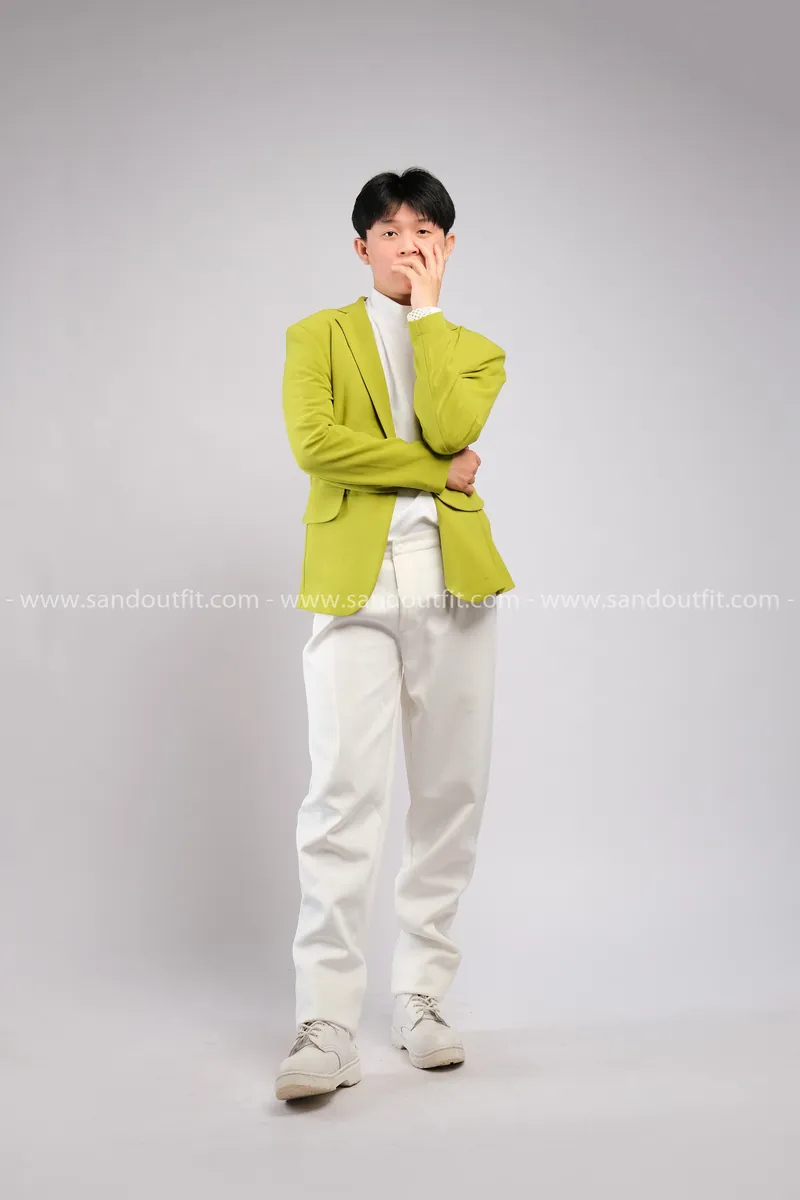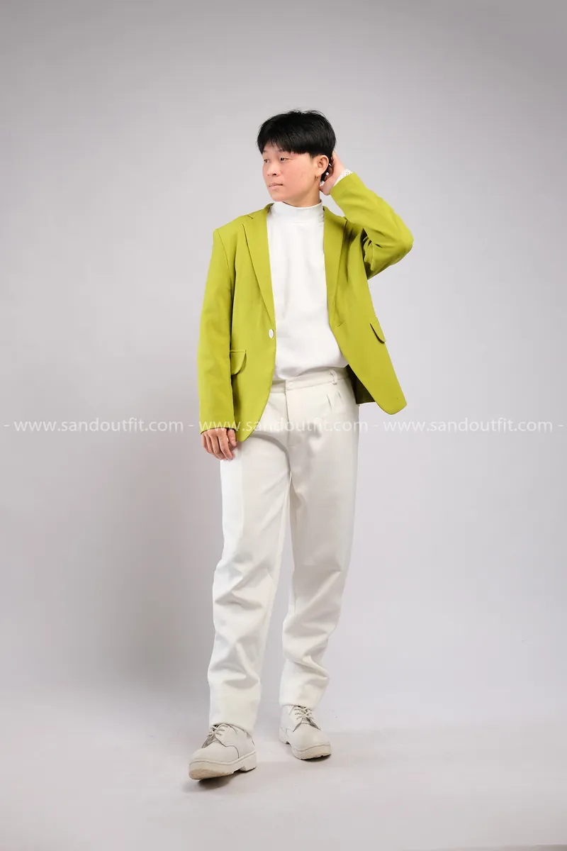 Outfit Phối Sẵn - (Quần Dài Kaki Ống Suông Trắng phối Vest Xanh Lá Chuối)