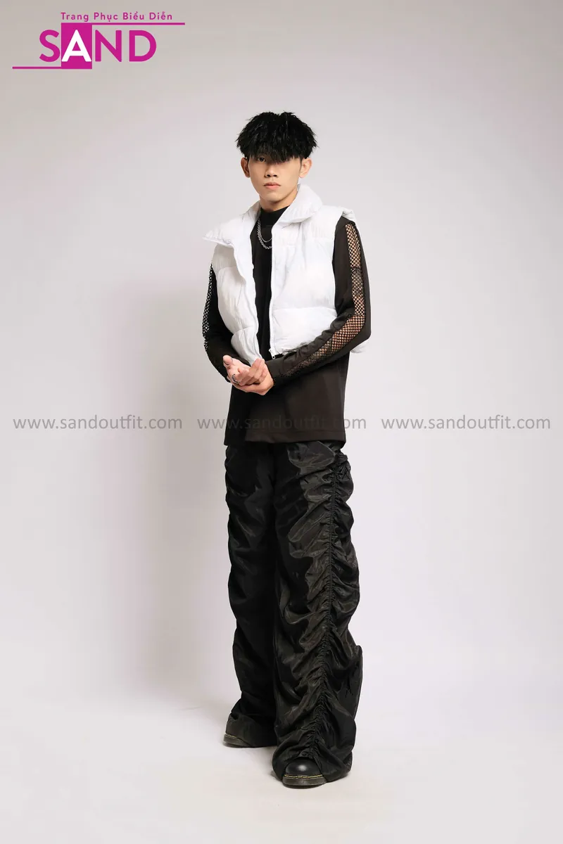 Outfit Phối Sẵn - (Quần Dù Ống Rộng phối Phao Gile Trắng)