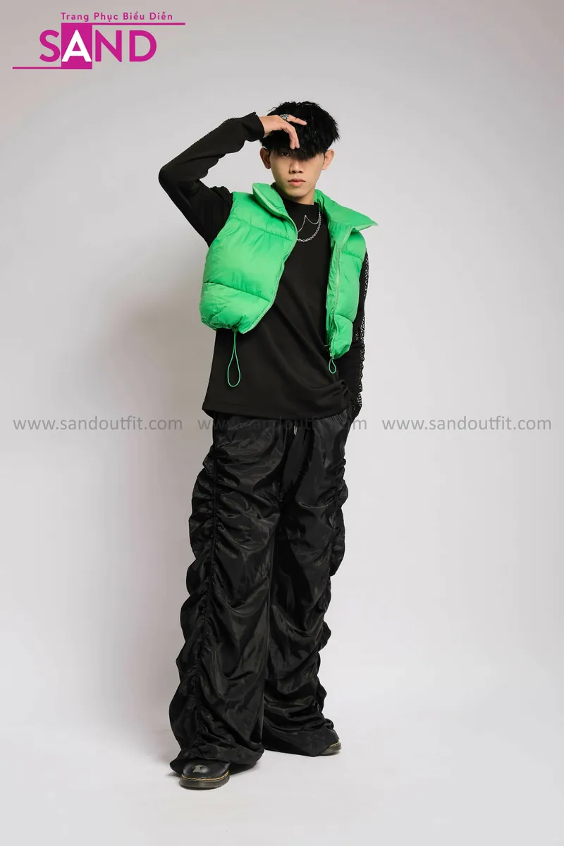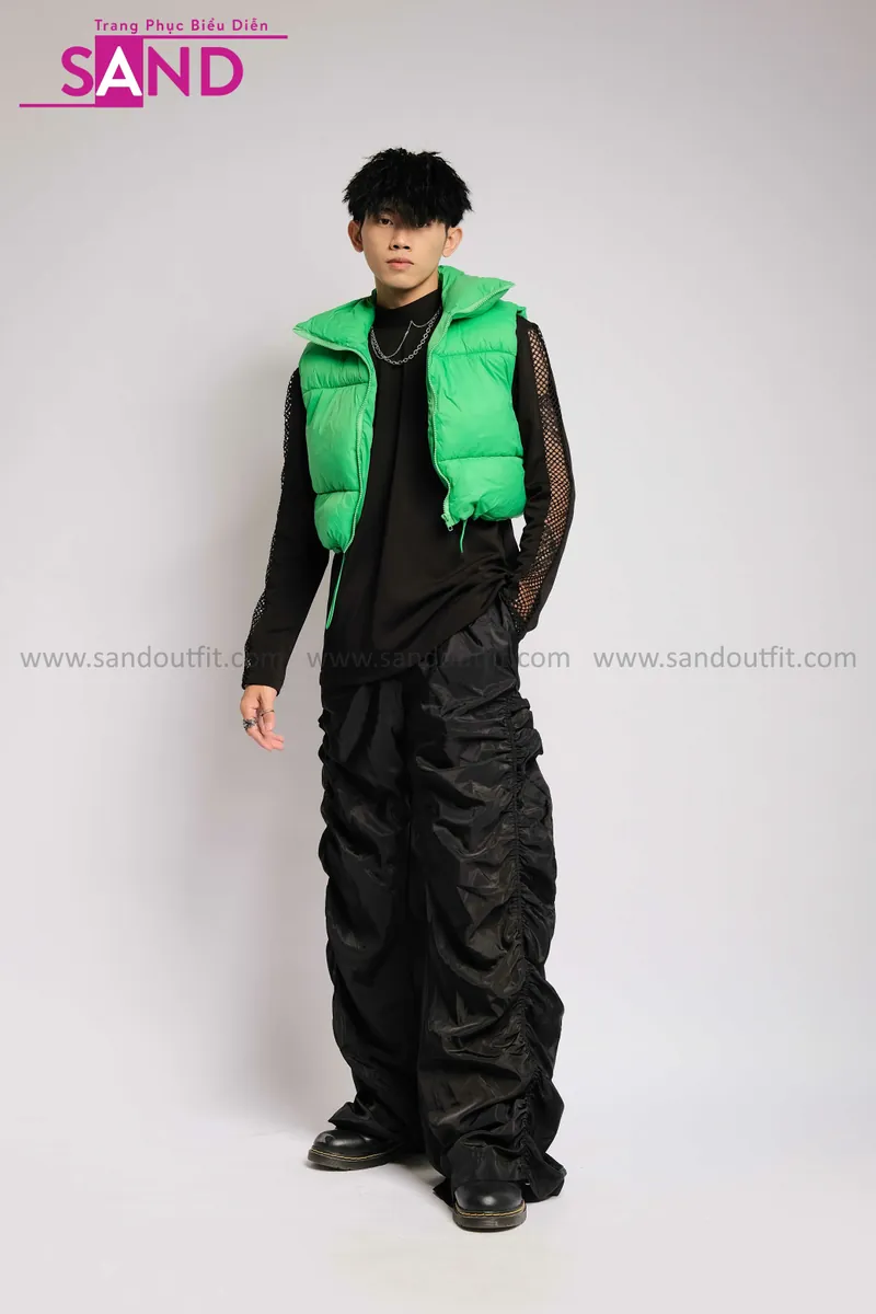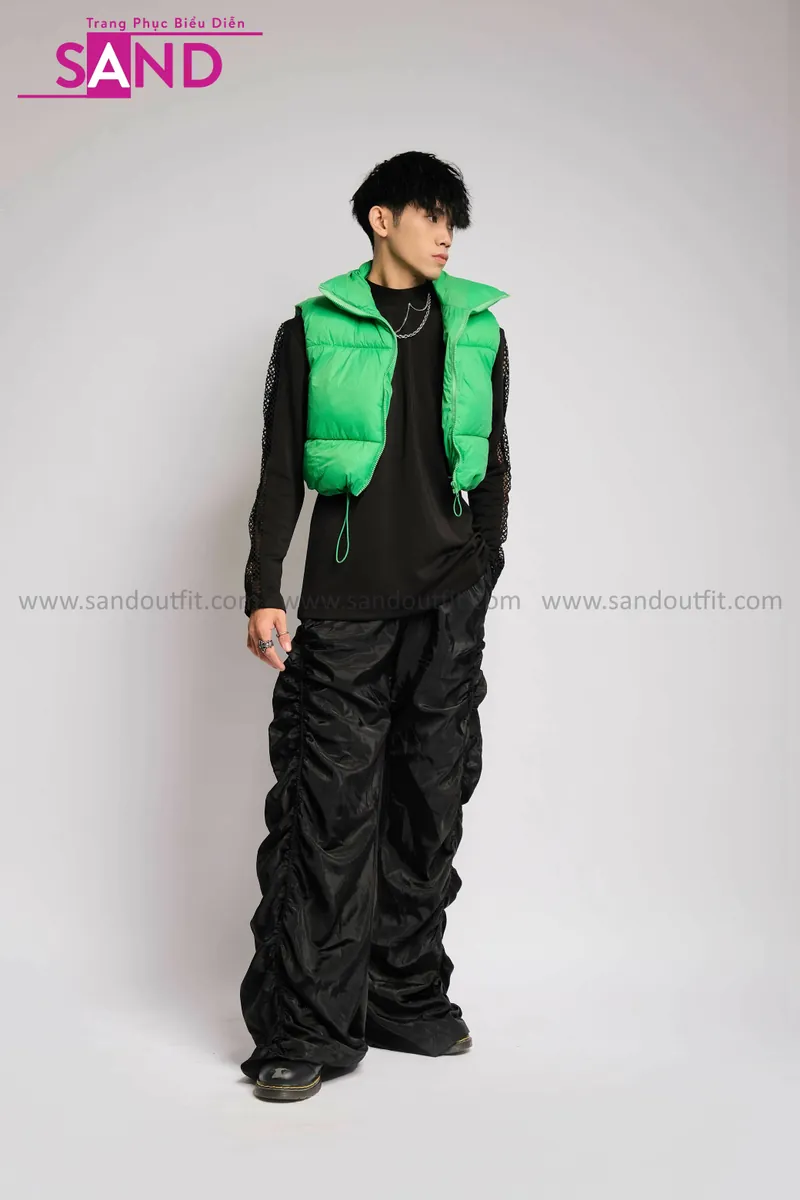 Outfit Phối Sẵn - (Quần Dù Ống Rộng phối Phao Gile Xanh Lá)