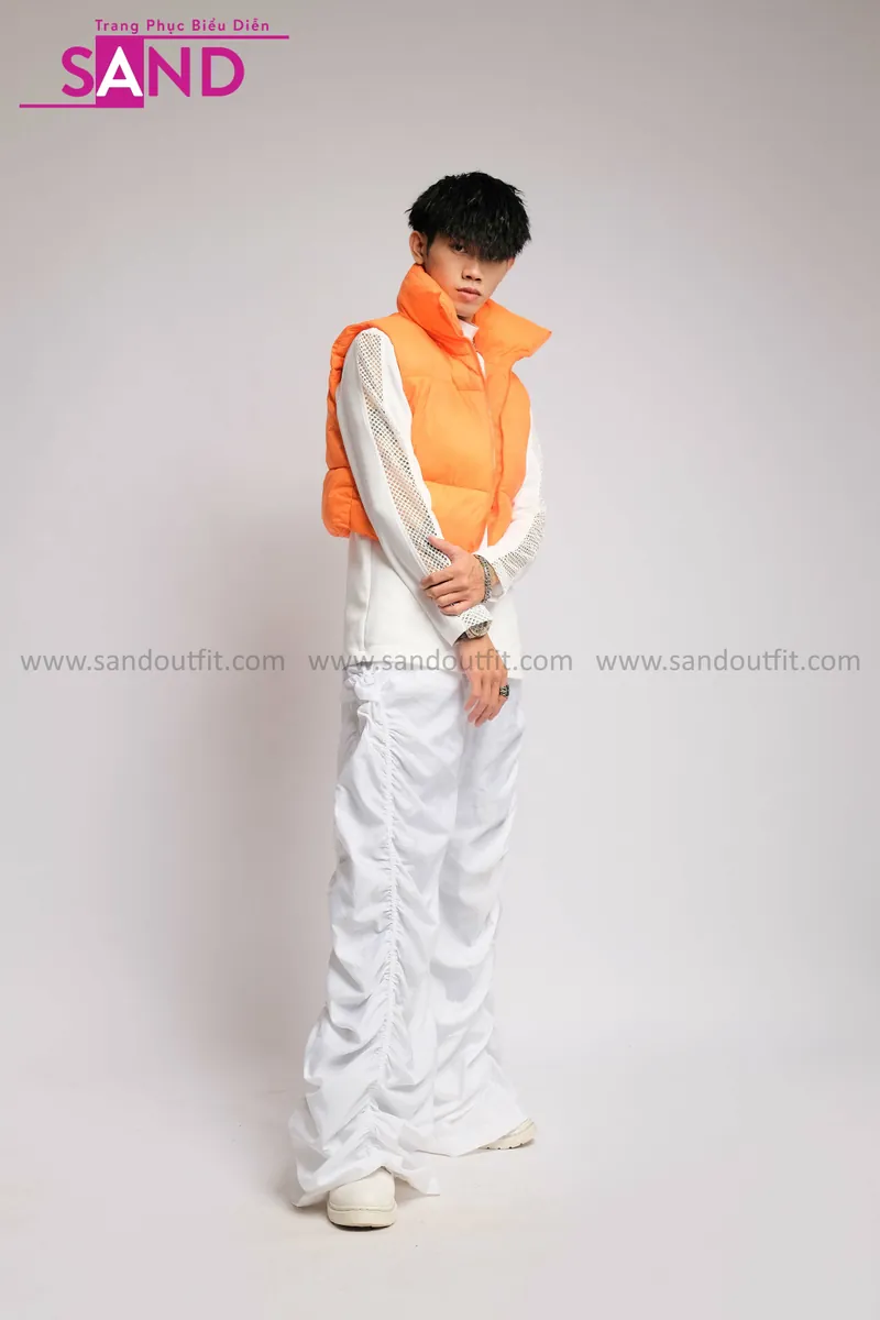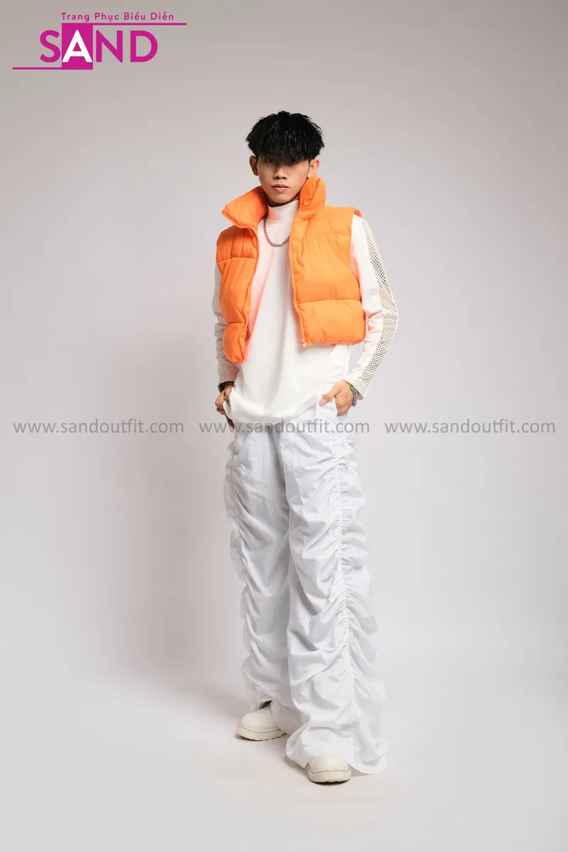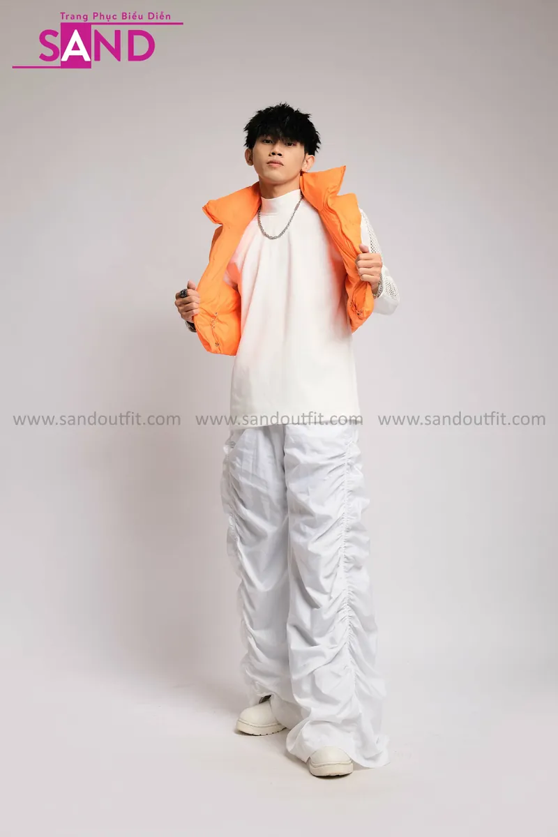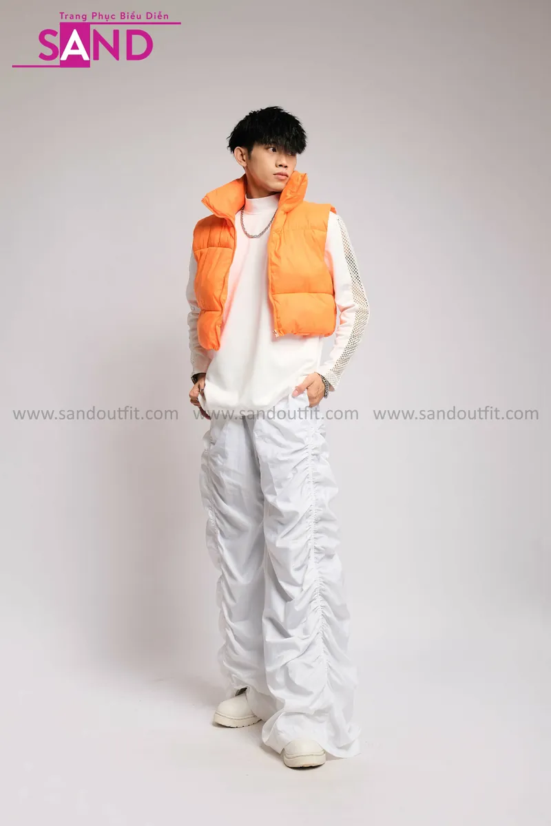 Outfit Phối Sẵn - (Quần Dù Ống Rộng Trắng phối Phao Gile Cam)
