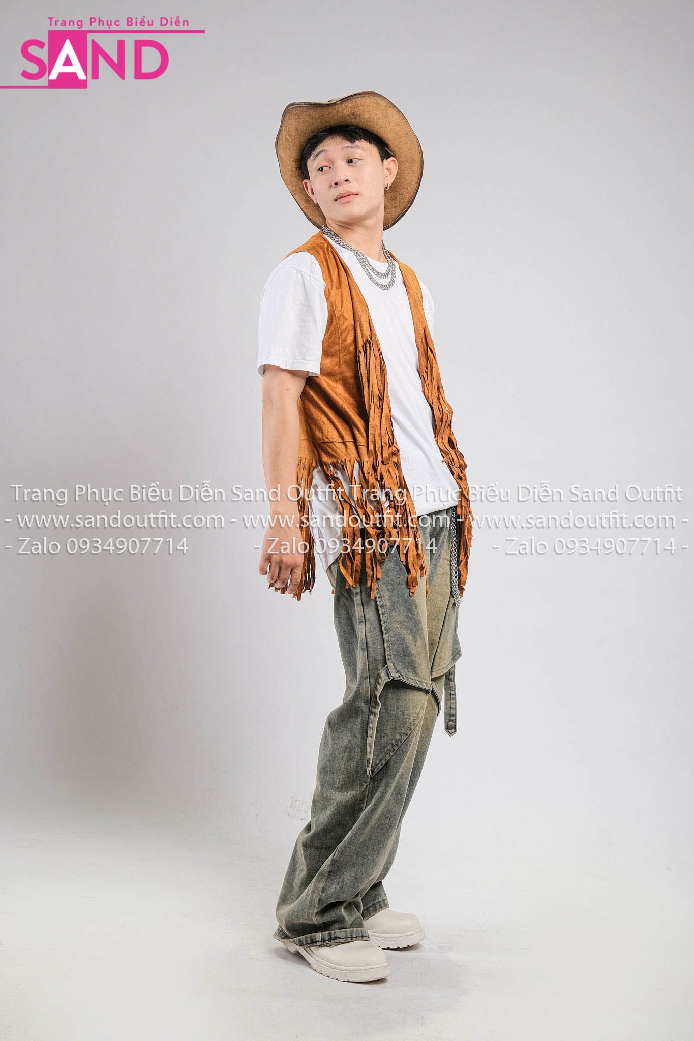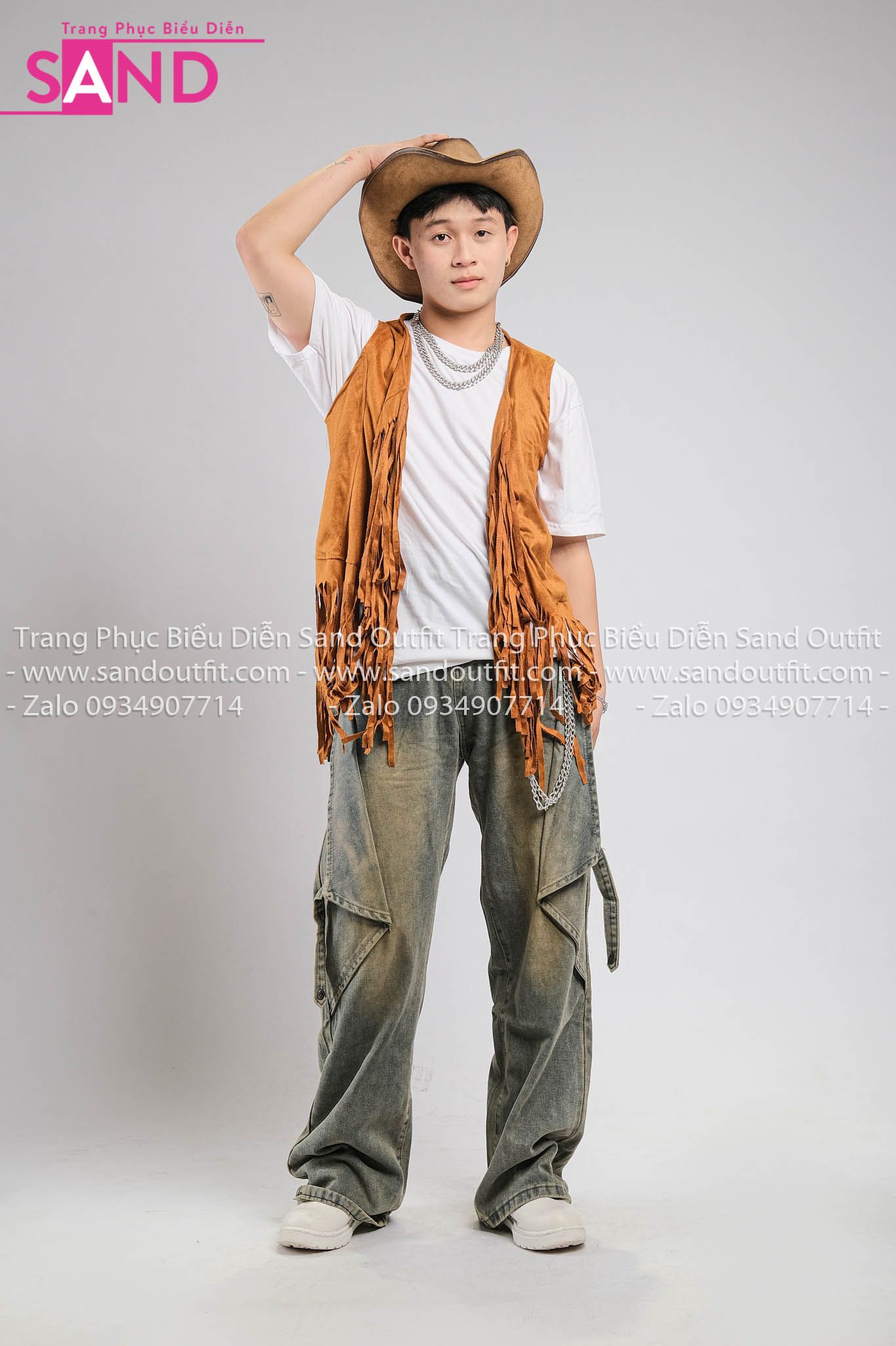 Outfit Phối Sẵn - (HQB0817 Quần Jean Túi Hộp Ống Rộng Mẫu 17 phối HAG1001 Áo Gile Tua Rua Nâu Mẫu 1 )