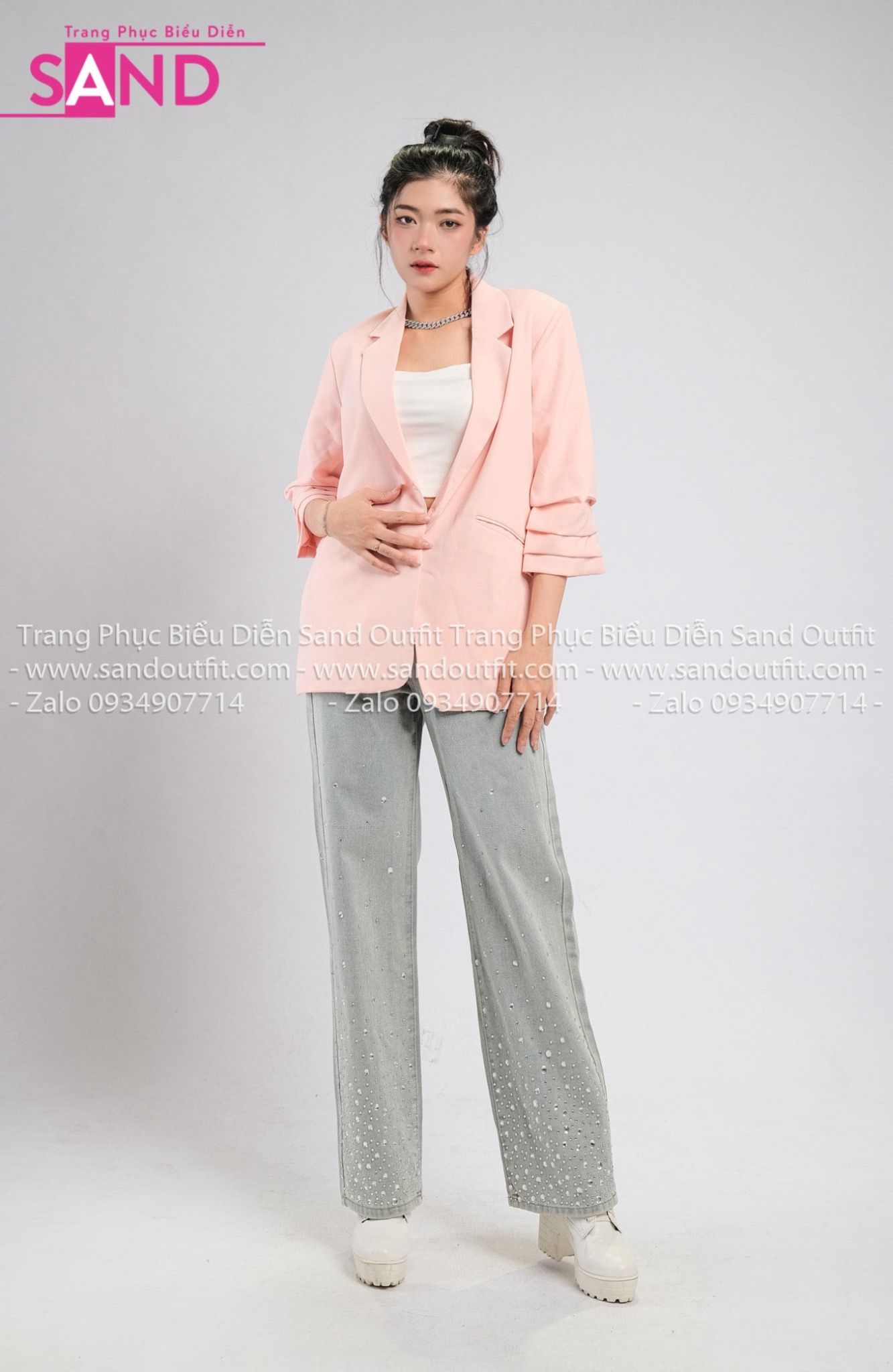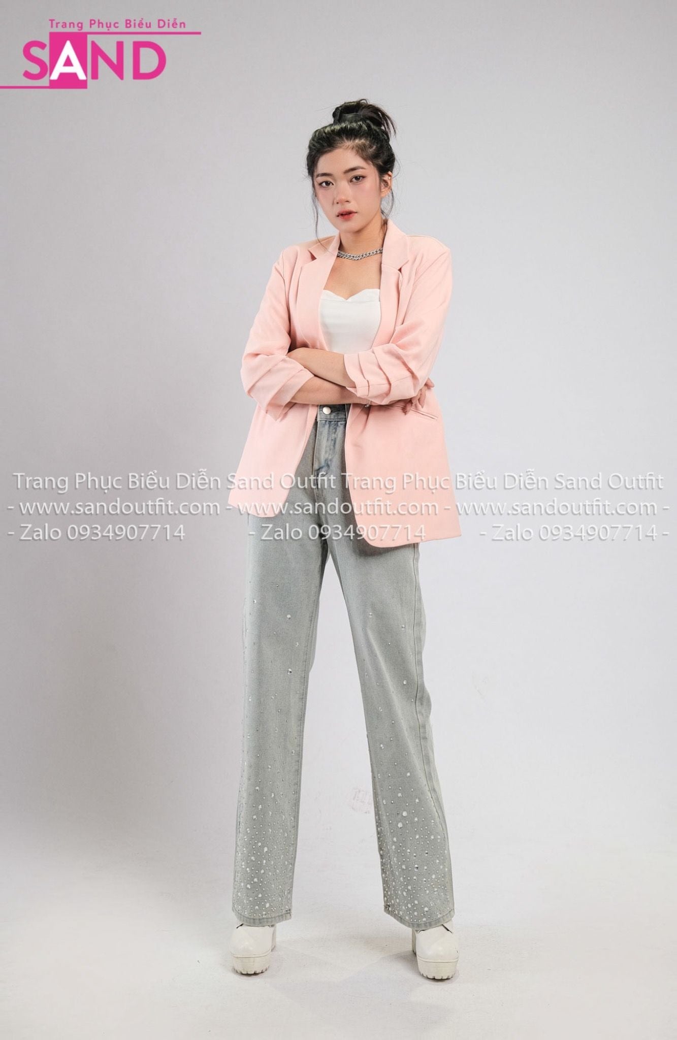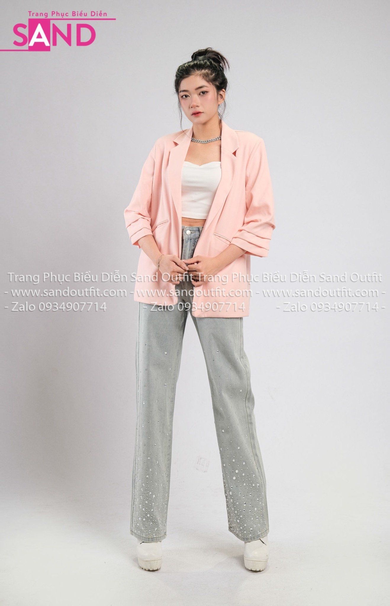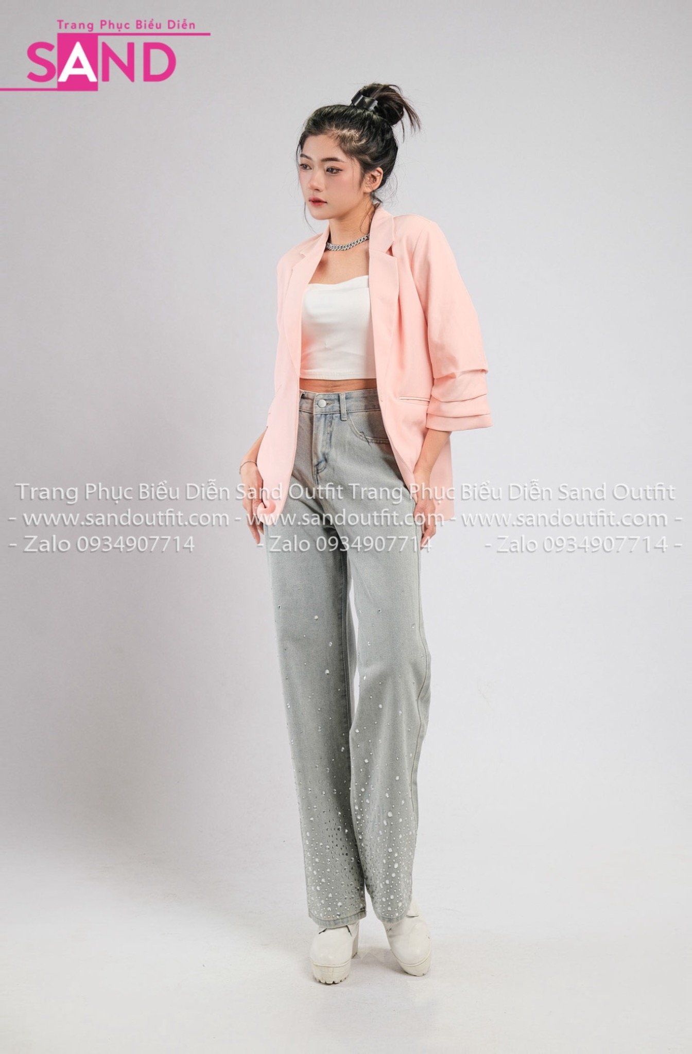 Outfit Phối Sẵn - ( HQB0805 Quần Jean Túi Hộp Ống Rộng Giọt Nước Mẫu 5 phối Blazer Hồng)
