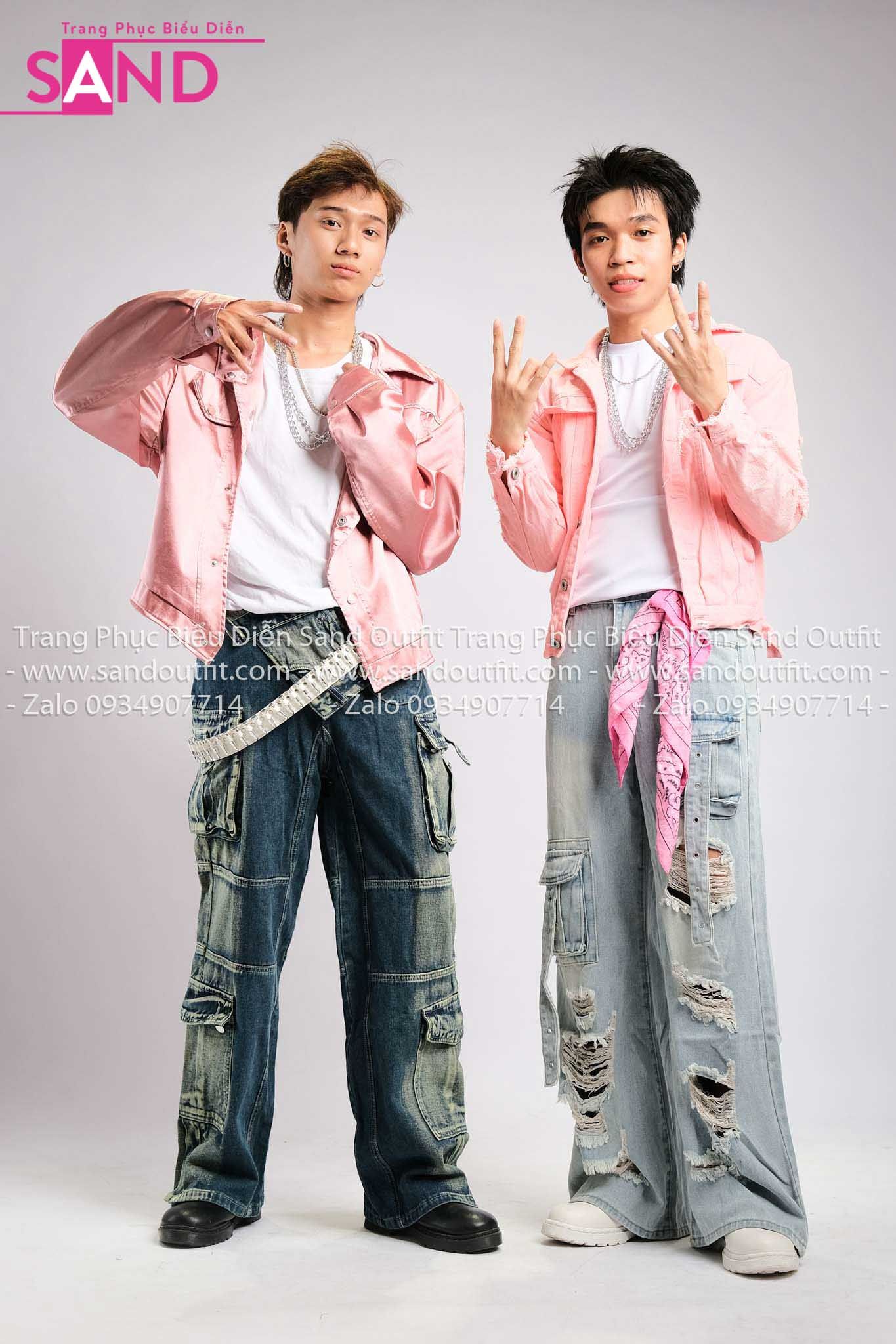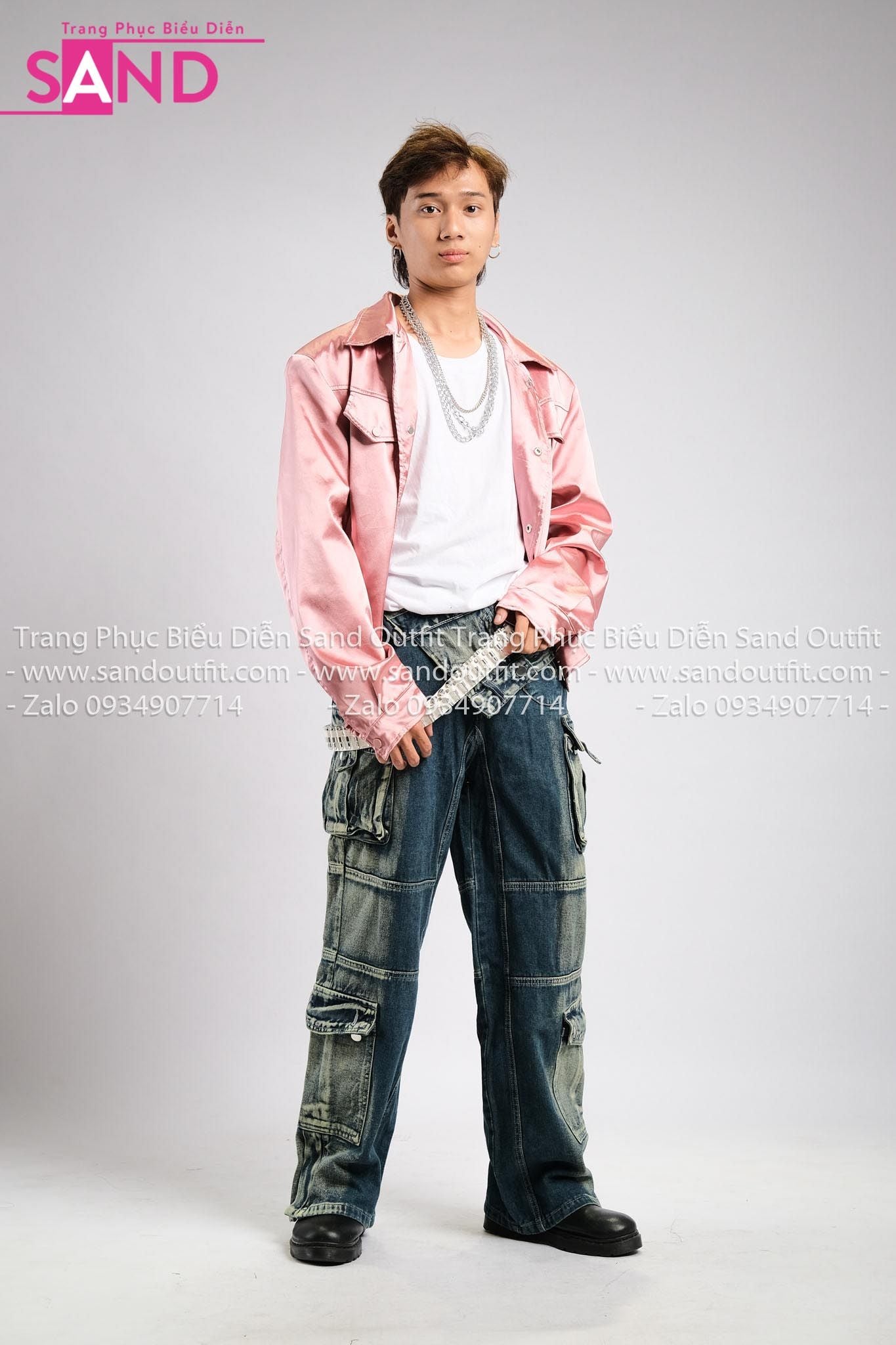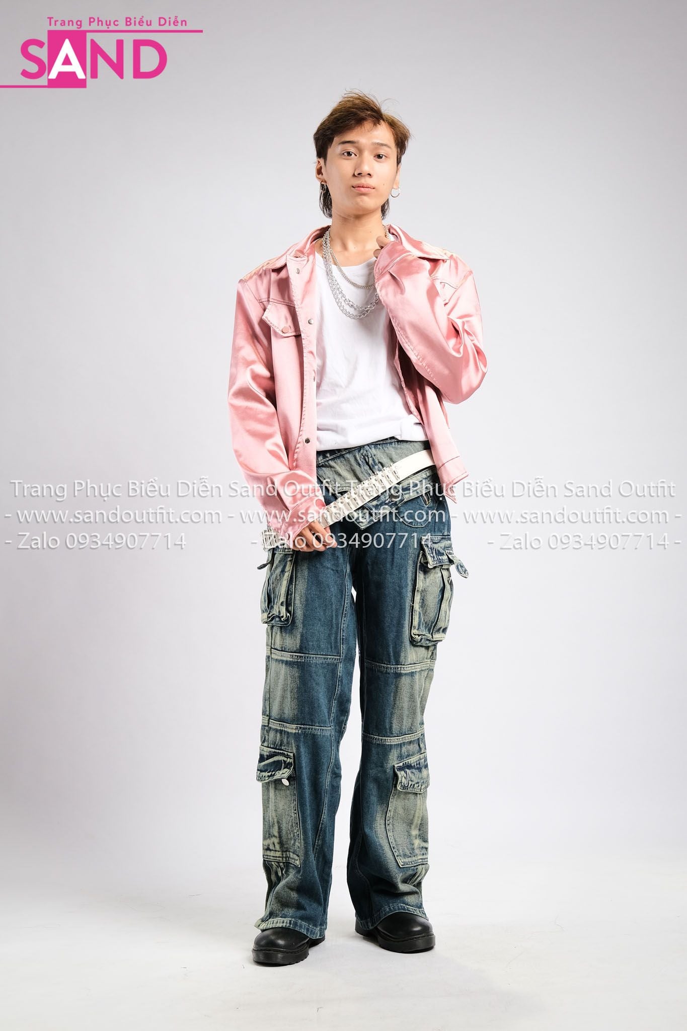 Outfit Phối Sẵn - (HQB0804 Quần Jean Túi Hộp Ống Rộng Lưng Bản To Mẫu 4 phối HAK0502 Áo Khoác Cổ Sơ Mi Vải Bóng Túi Hộp - Hồng)