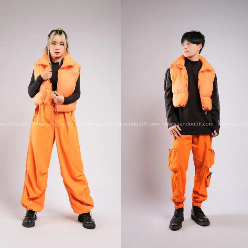 Outfit Phối Sẵn - (Quần Jogger Cam phối Phao Gile Cam)