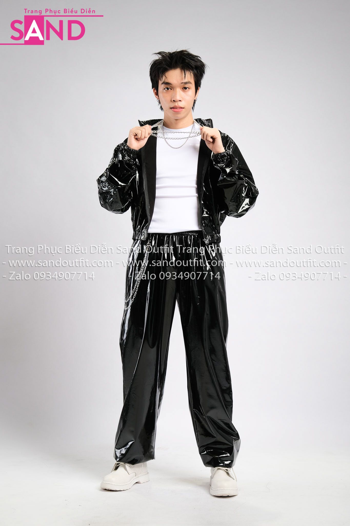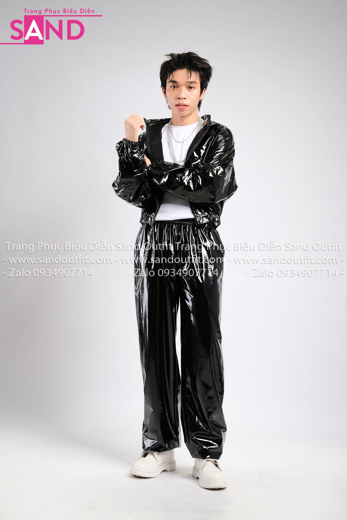 Outfit Phối Sẵn - (Quần Jogger Da Bóng Form Rộng phối Khoác Da Bóng Hoodie Đen)