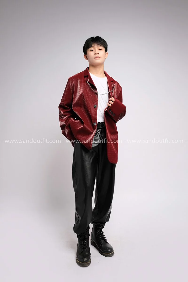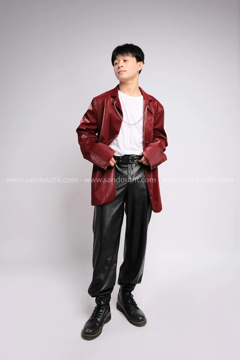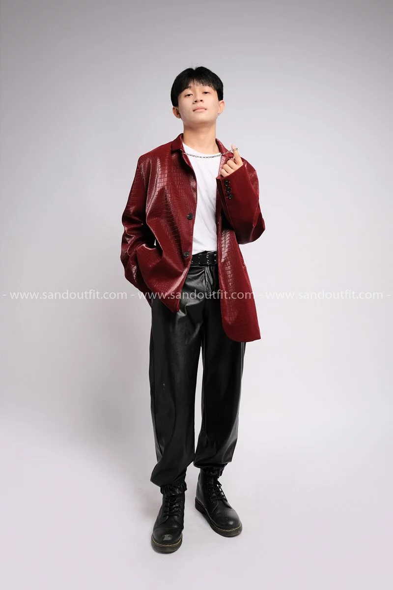 Outfit Phối Sẵn - (Quần Jogger Da phối Áo Khoác Vest Da Nam Đỏ)