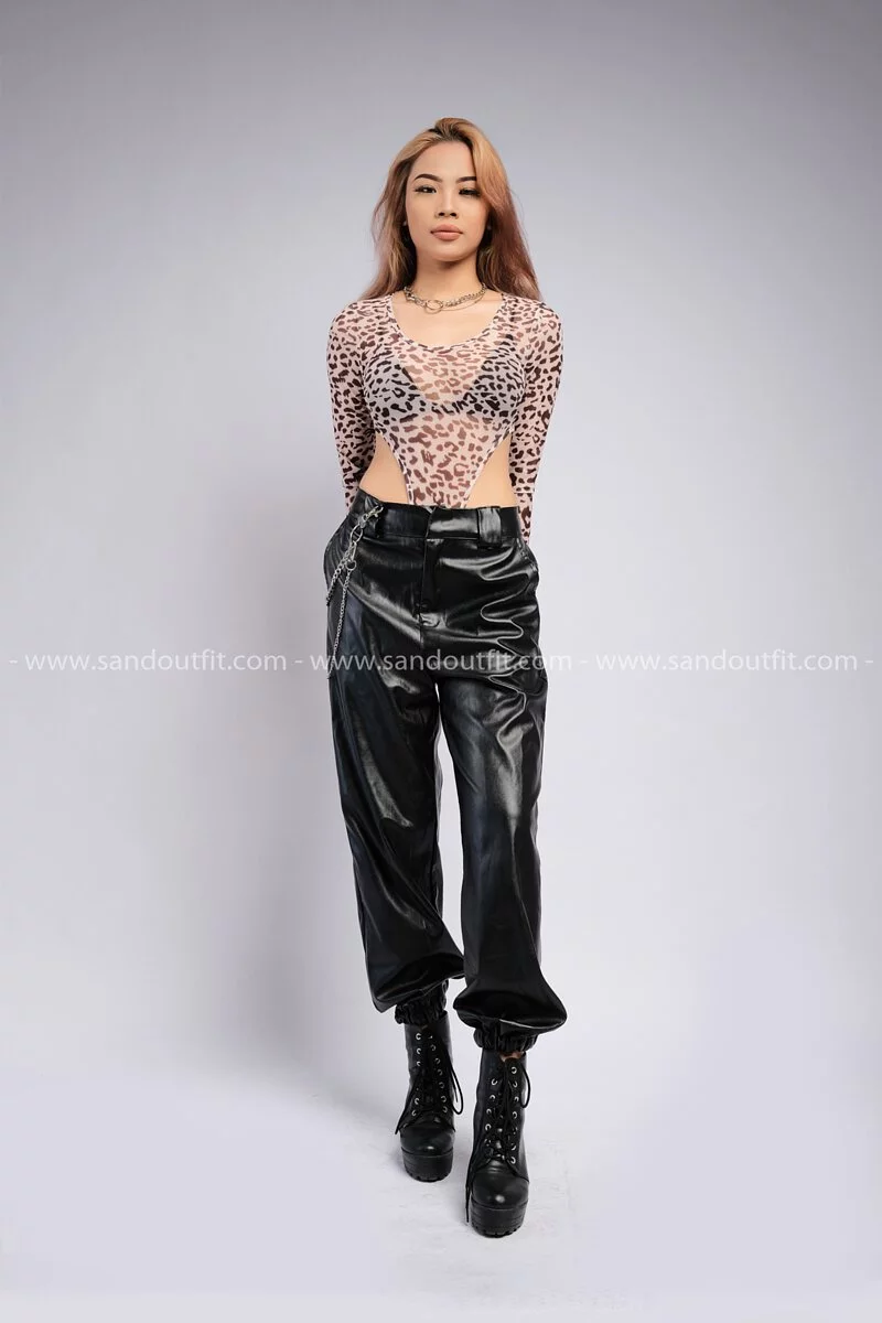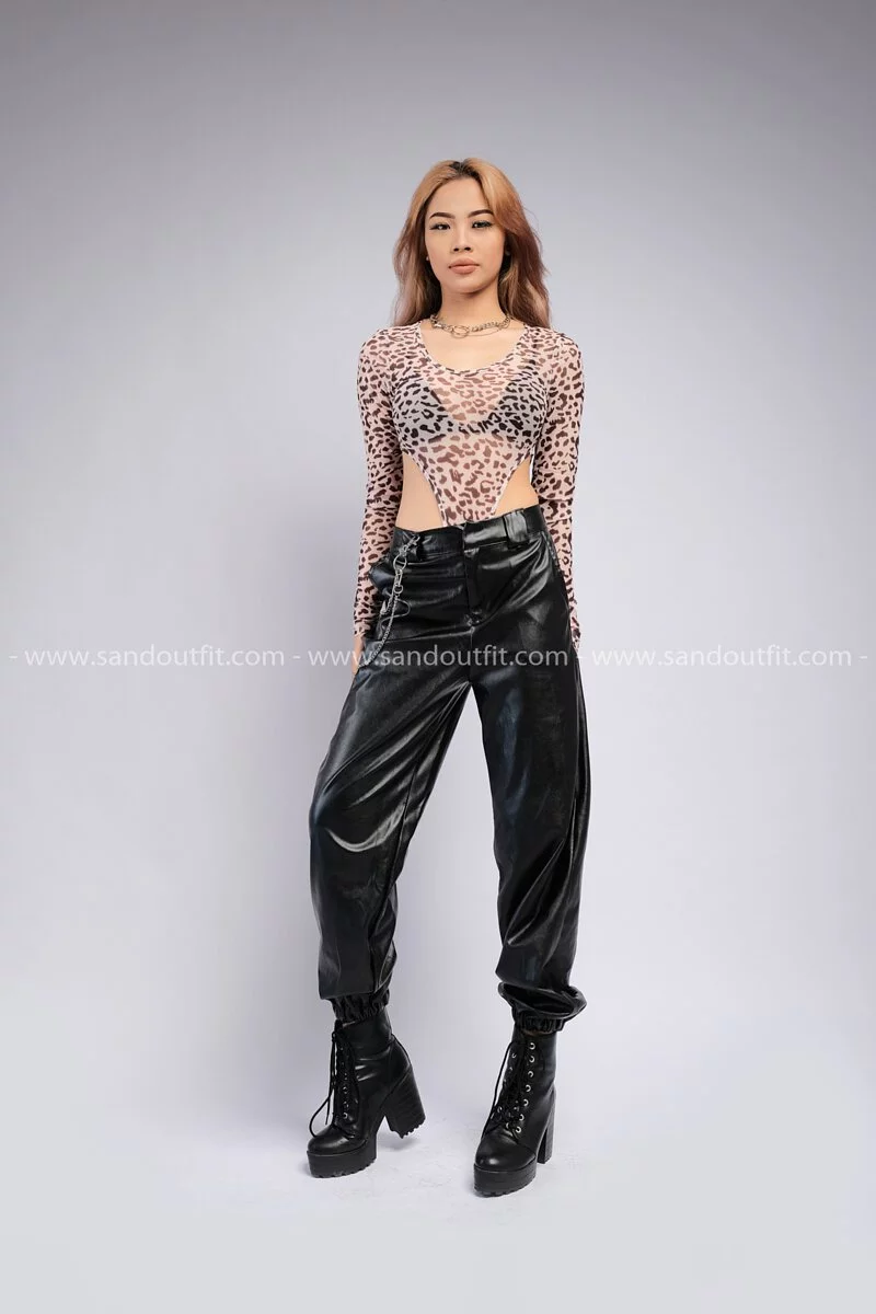 Outfit Phối Sẵn - (Quần Jogger Da phối Bodysuit Họa Tiết Nâu)