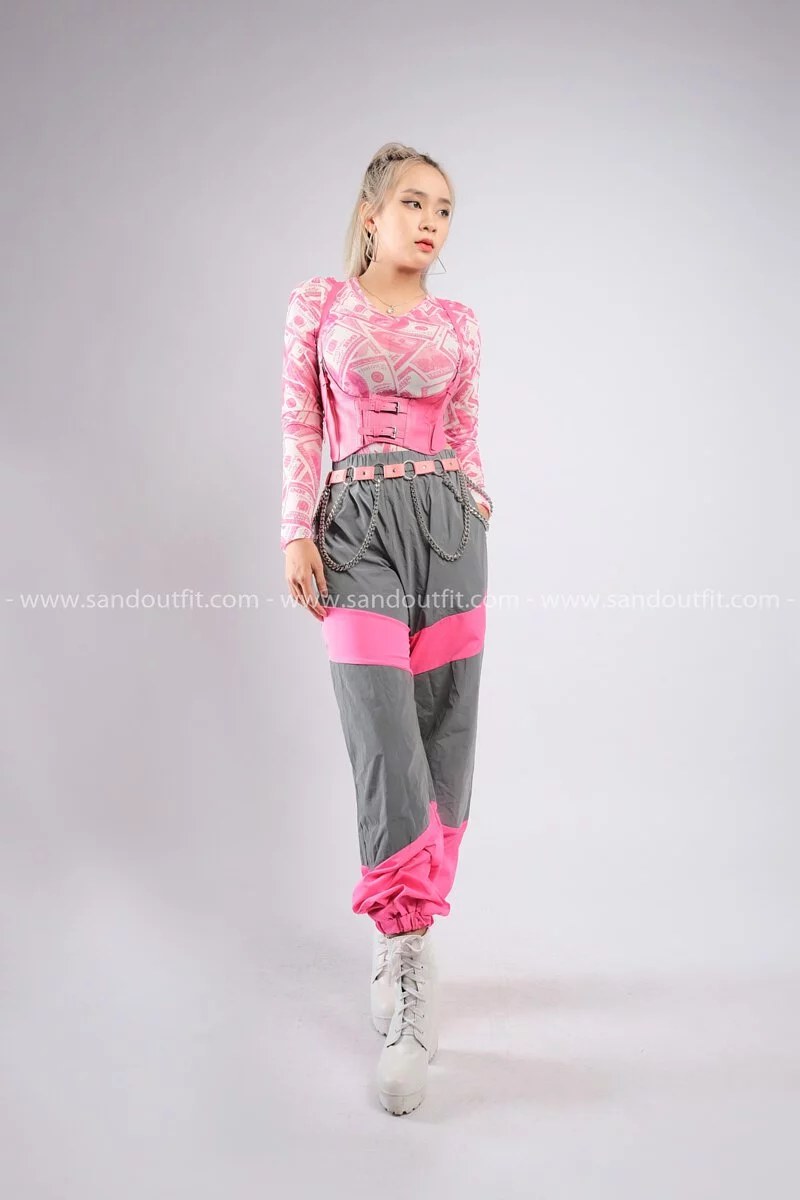 Outfit Phối Sẵn - (Quần Jogger Hồng Phản Quan phối Bodysuit Dola Hồng)