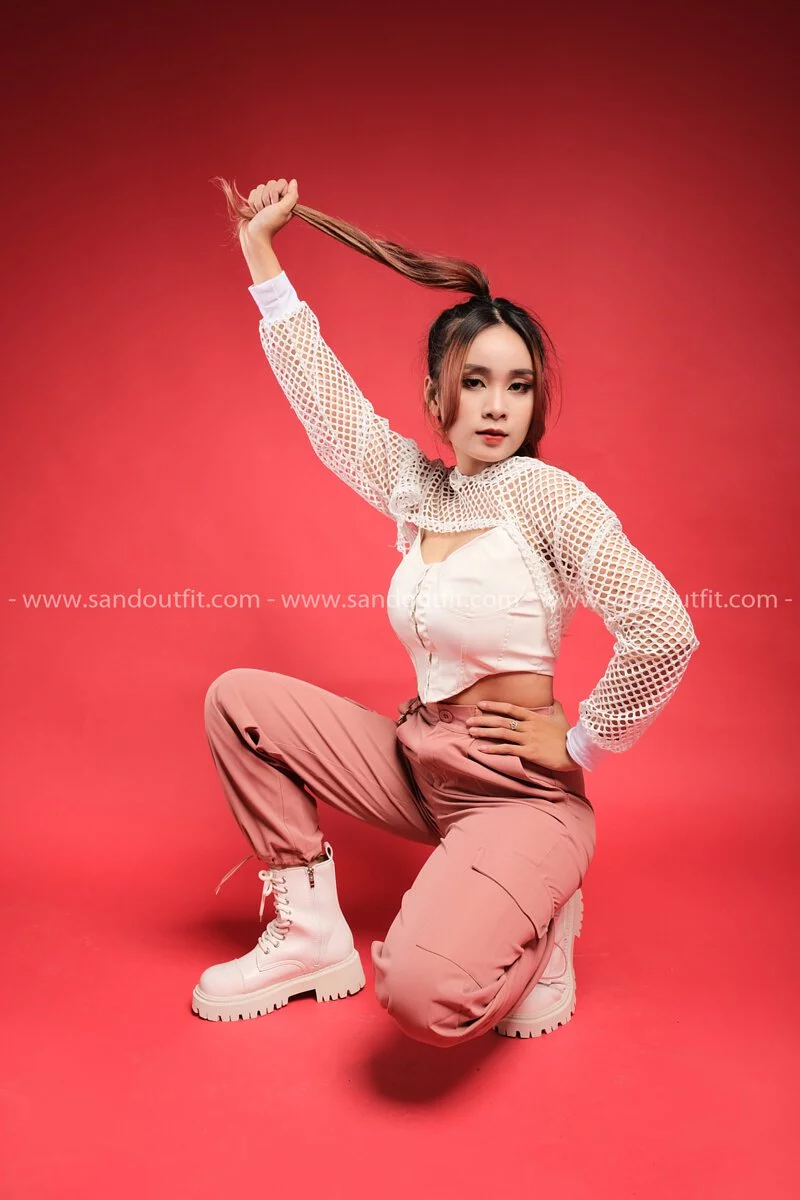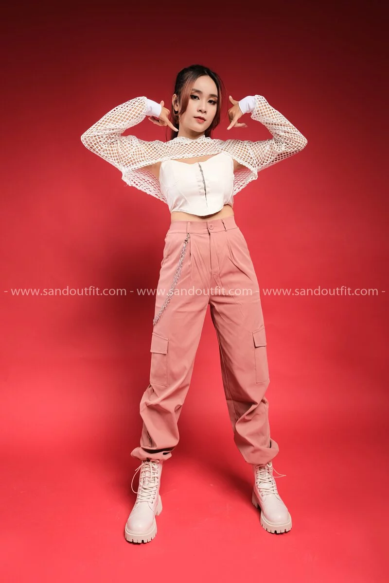 Outfit Phối Sẵn - (Quần Kaki Hồng phối Áo Quây Khóa Gài Trước)