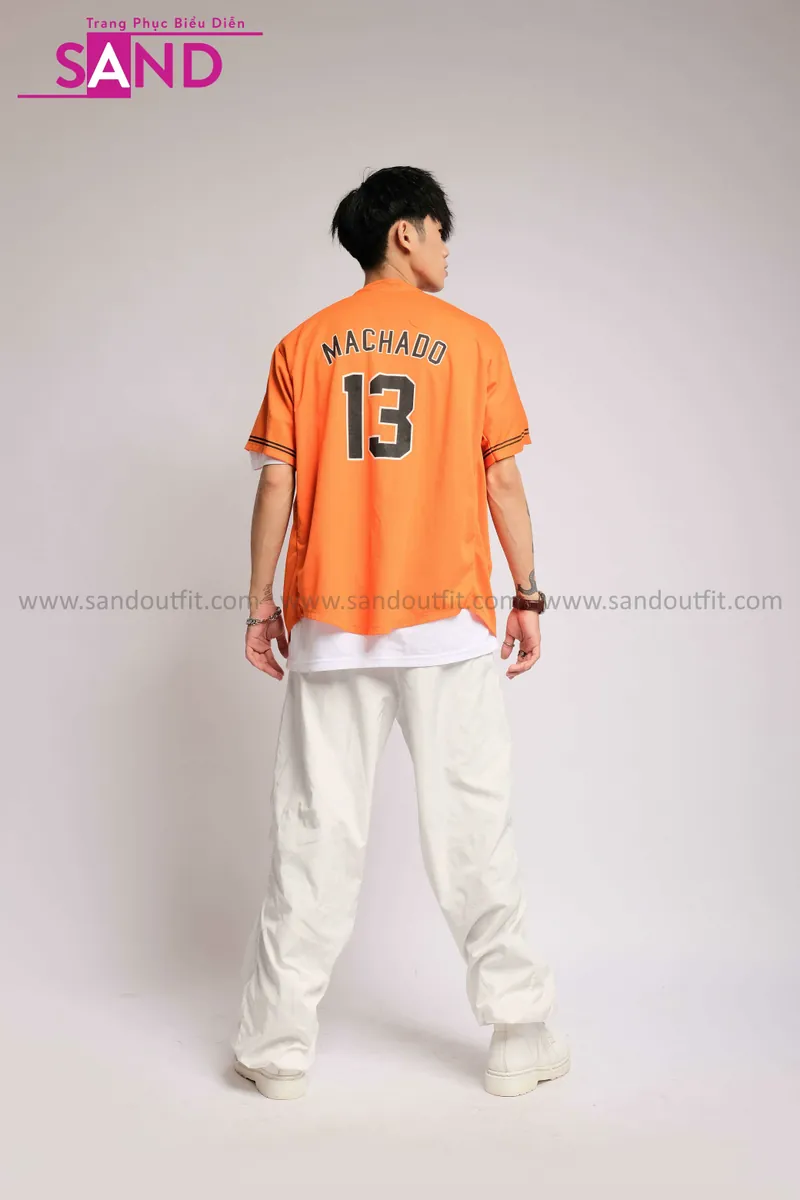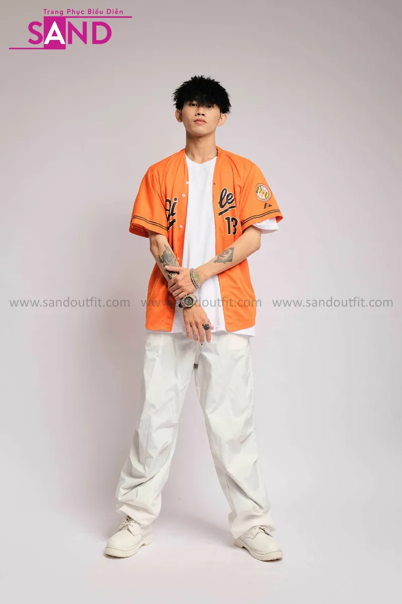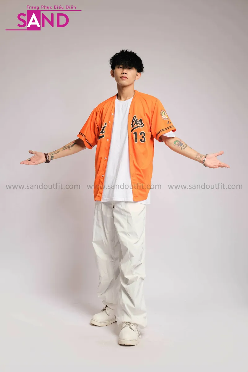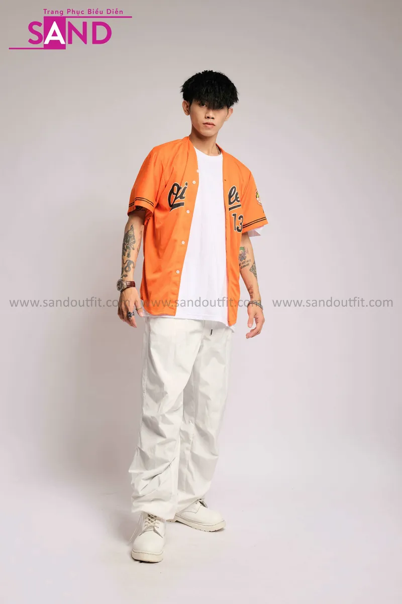 Outfit Phối Sẵn - (HQN0002 Quần Dài Trắng Nắp Túi Hộp Ngang Phối Dây phối HAB0602 Áo Bóng Chày Cam Mẫu Cũ)