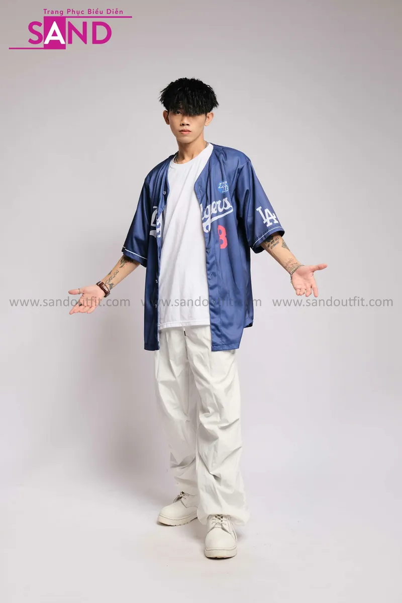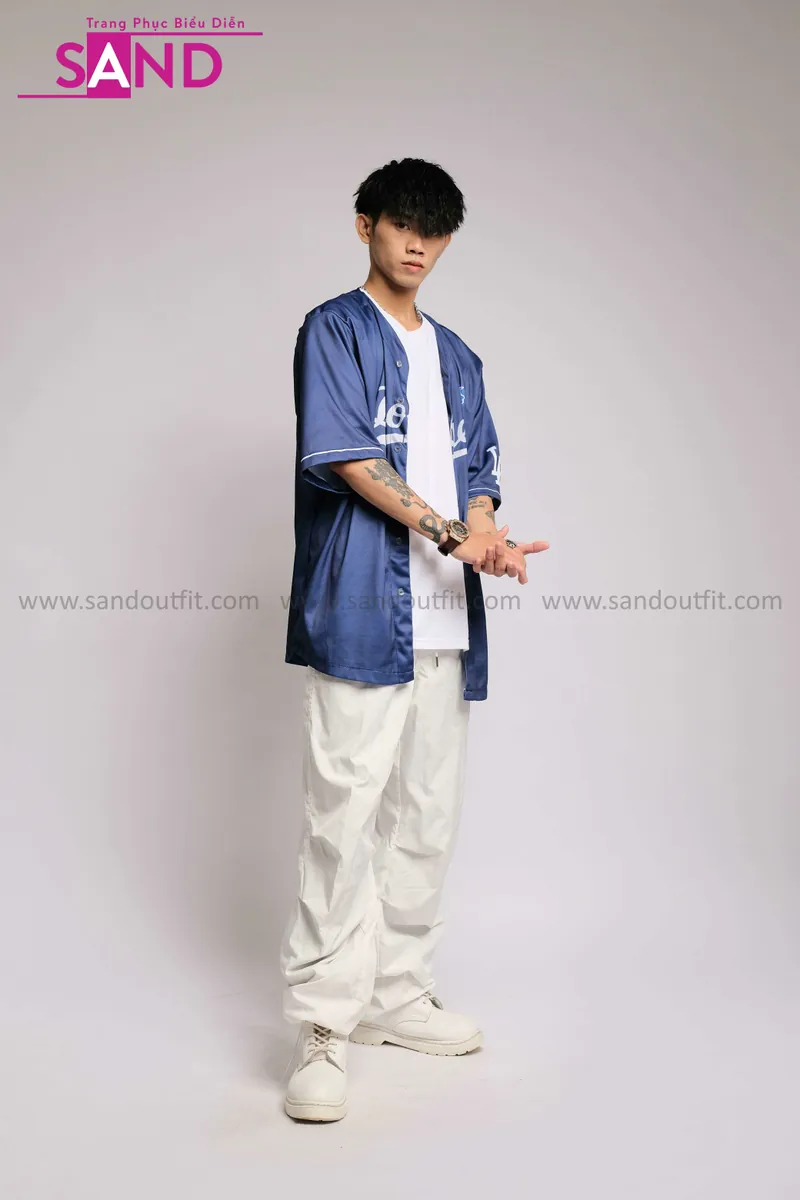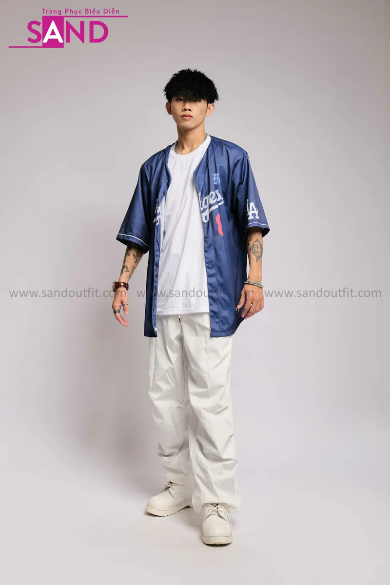 Outfit Phối Sẵn - (HQN0002 Quần Dài Trắng Nắp Túi Hộp Ngang Phối Dây phối HAB0804 Áo Bóng Chày Xanh Dương Số 24)