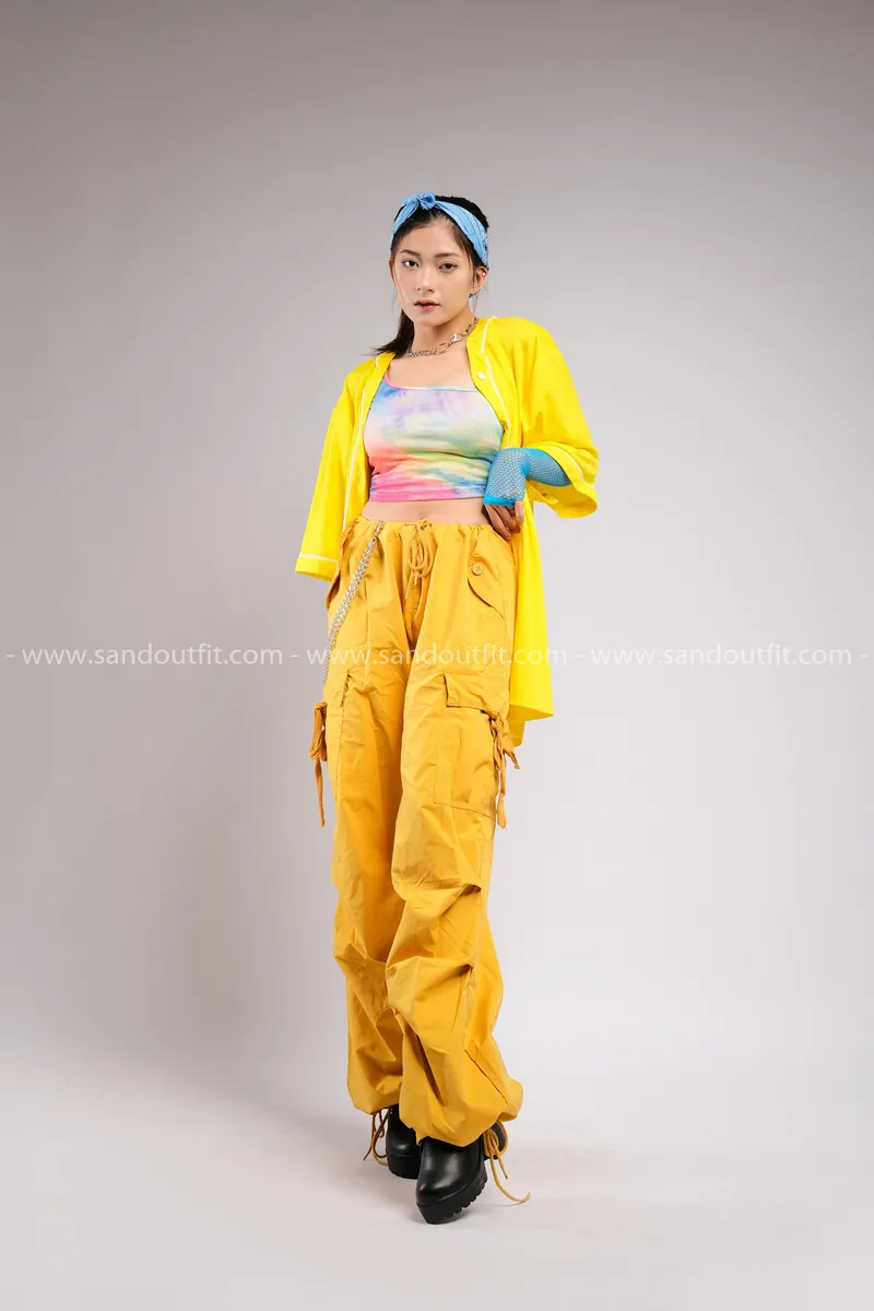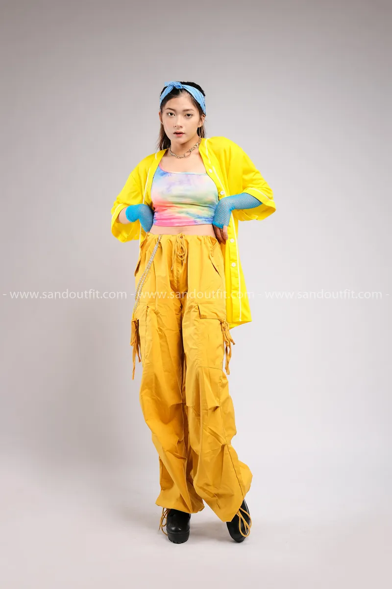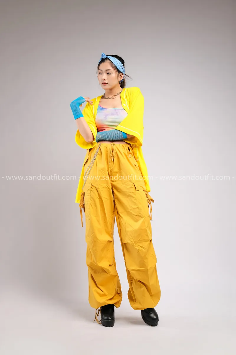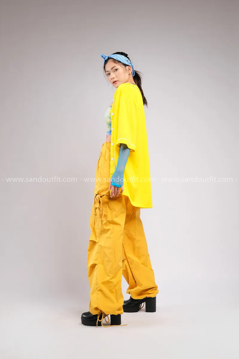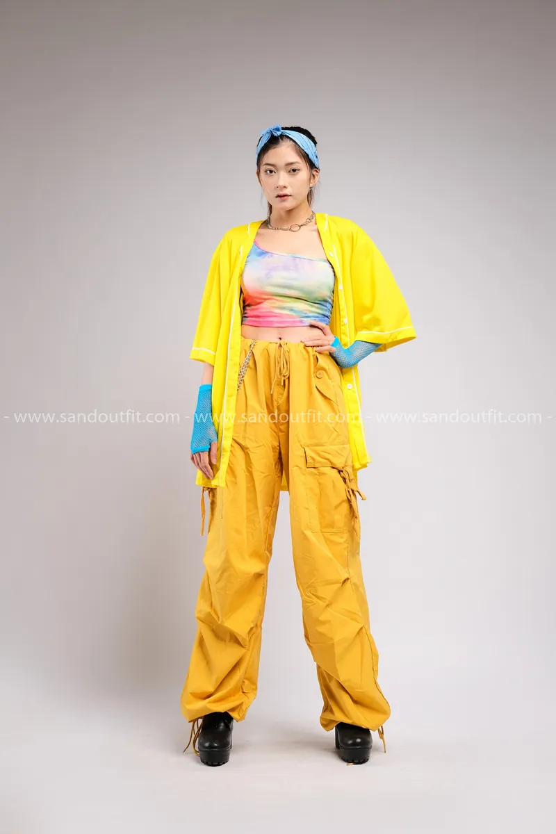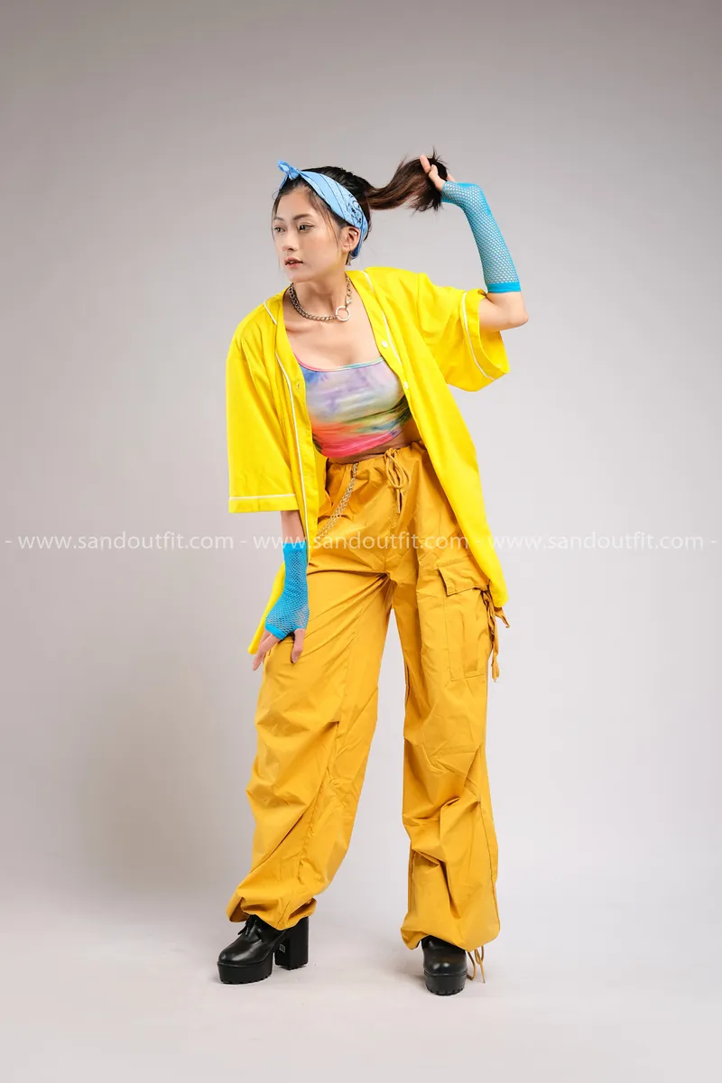 Outfit Phối Sẵn - (HQN0301 Quần Dài Vàng Nắp Túi Hộp Ngang Phối Dây phối Khoác Bóng Chày Vàng)