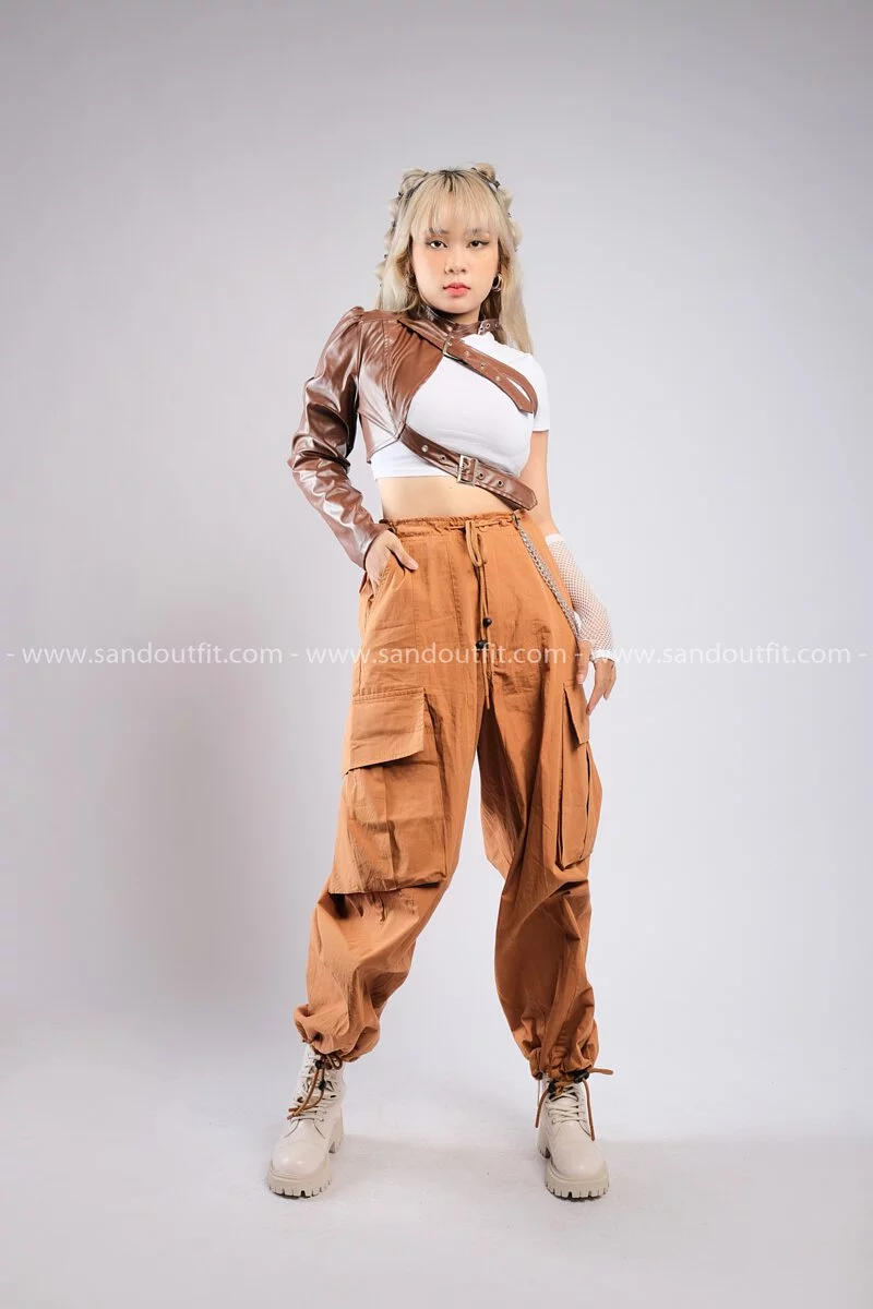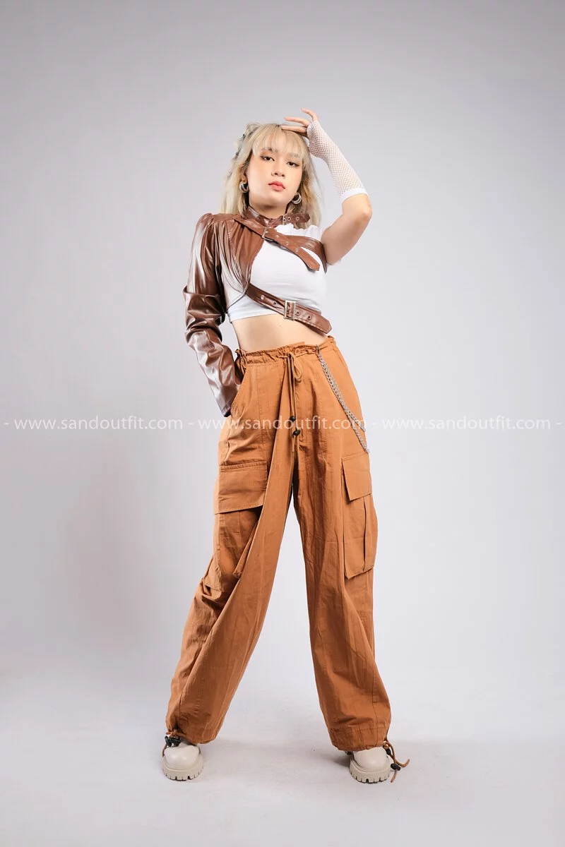 Outfit Phối Sẵn - (Quần Ống Rộng Túi Hộp Nâu phối Cánh Tay Rời Da Nâu)