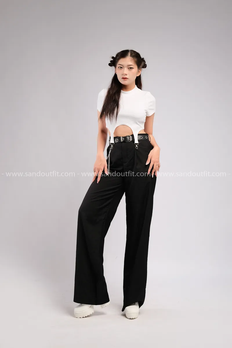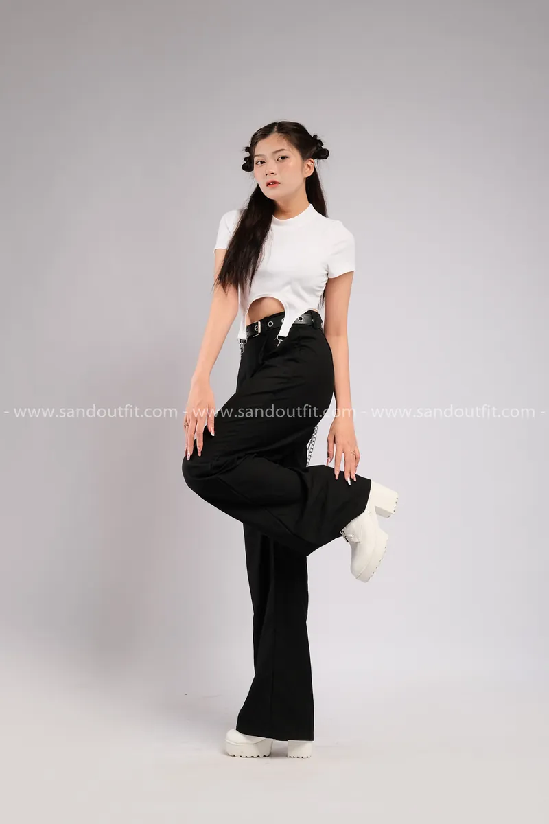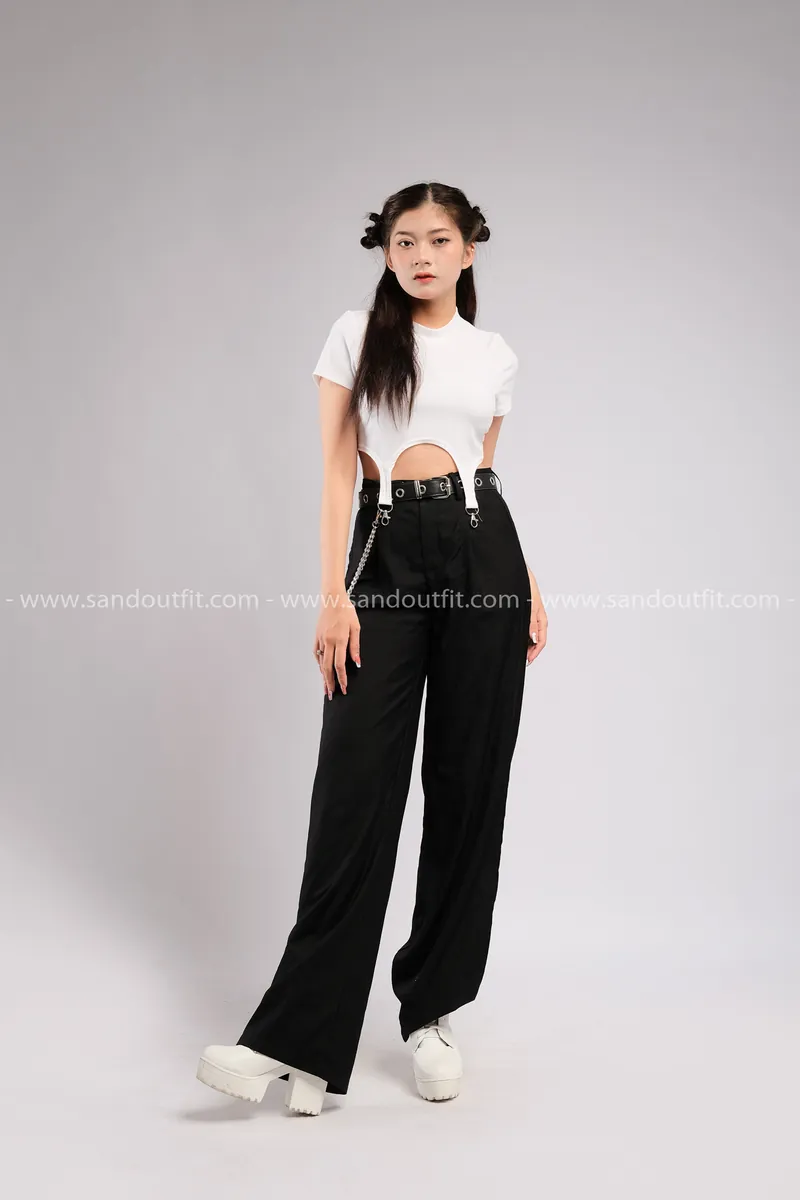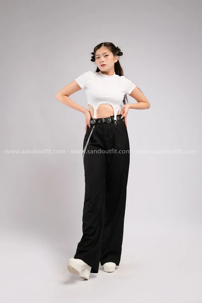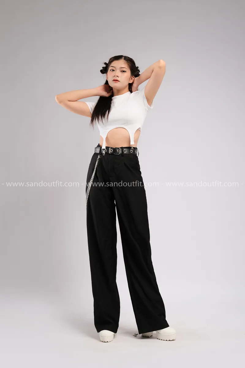 Outfit Phối Sẵn - (Quần Ống Suông Đen phối Áo Croptop Móc Trắng)