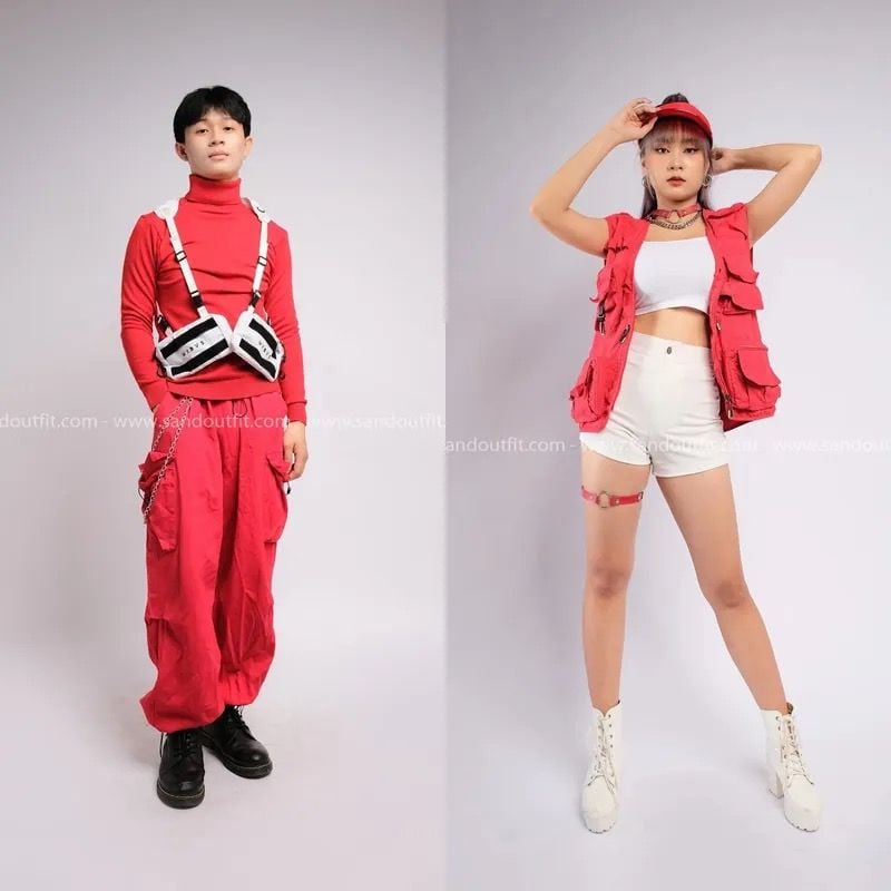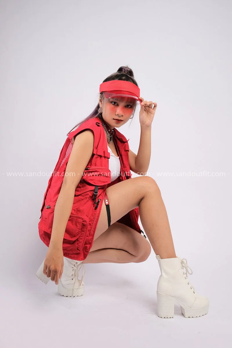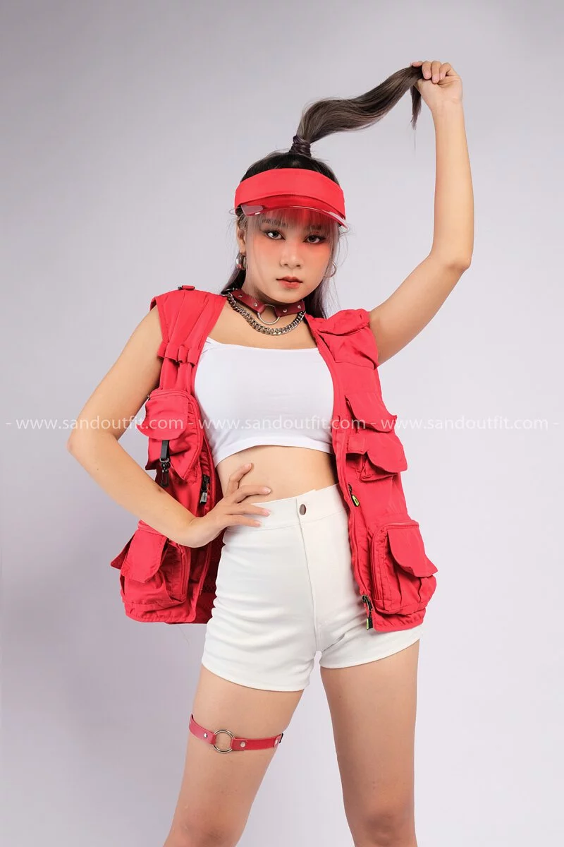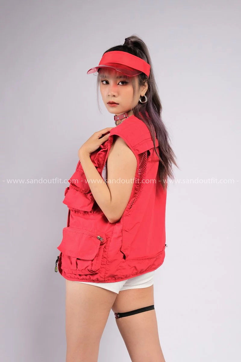 Outfit Phối Sẵn - (Quần Short Thun phối Áo Gile Đỏ)