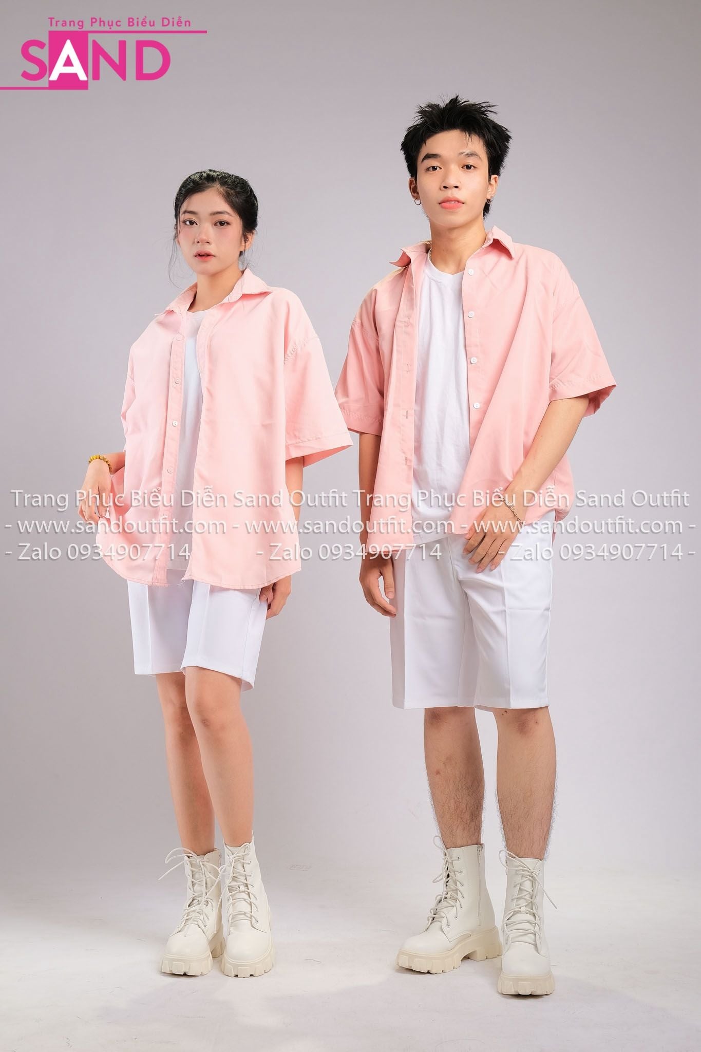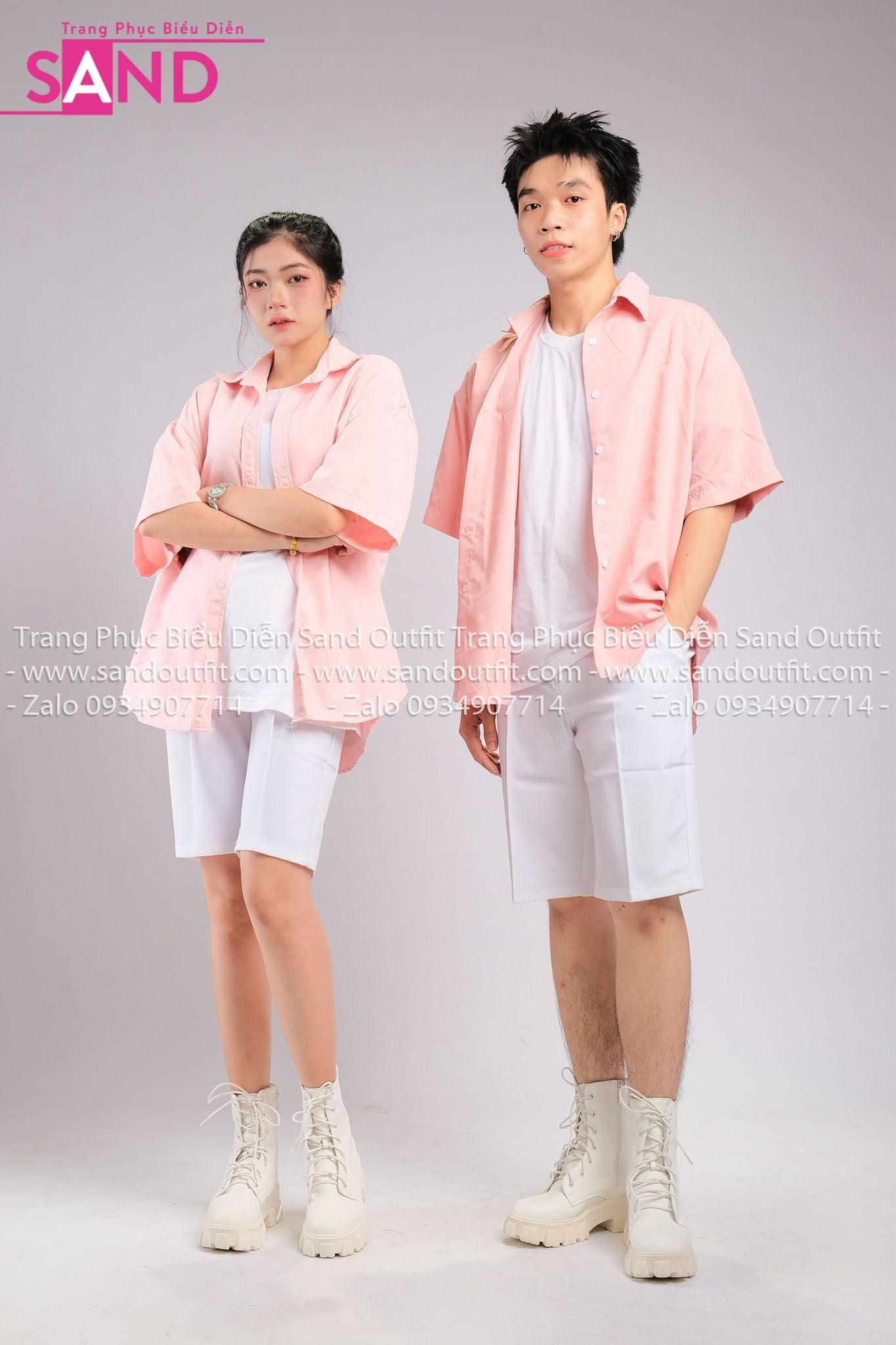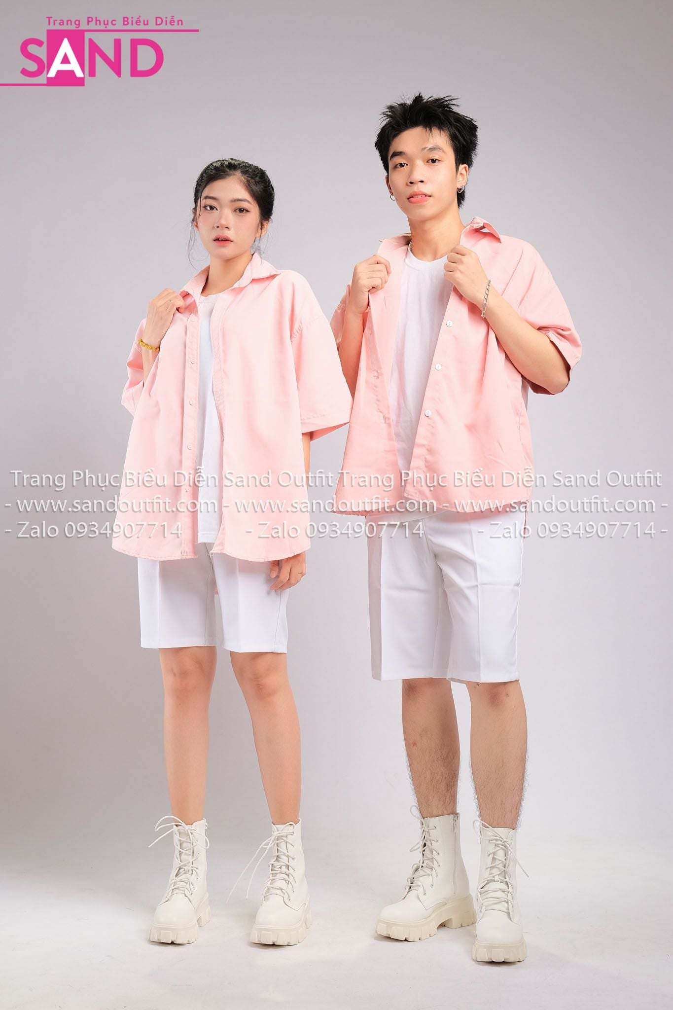 Outfit Phối Sẵn - ( HST0001 Quần Short Trắng Form Rộng Nam phối HAS0501 Áo Sơ Mi Ngắn Tay Pastel Form Rộng Freesize- Màu Hồng)