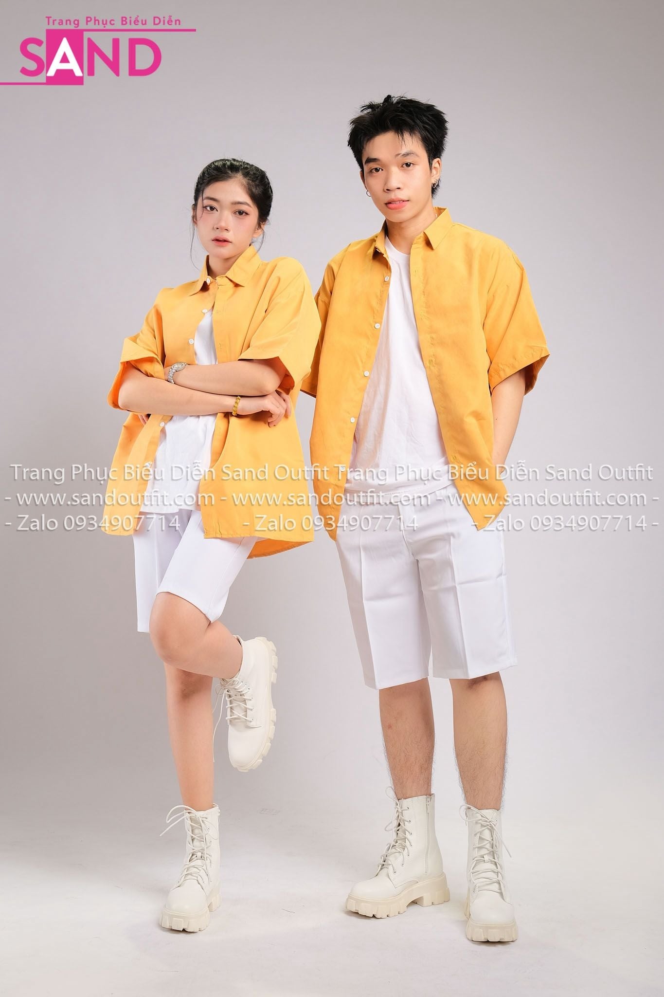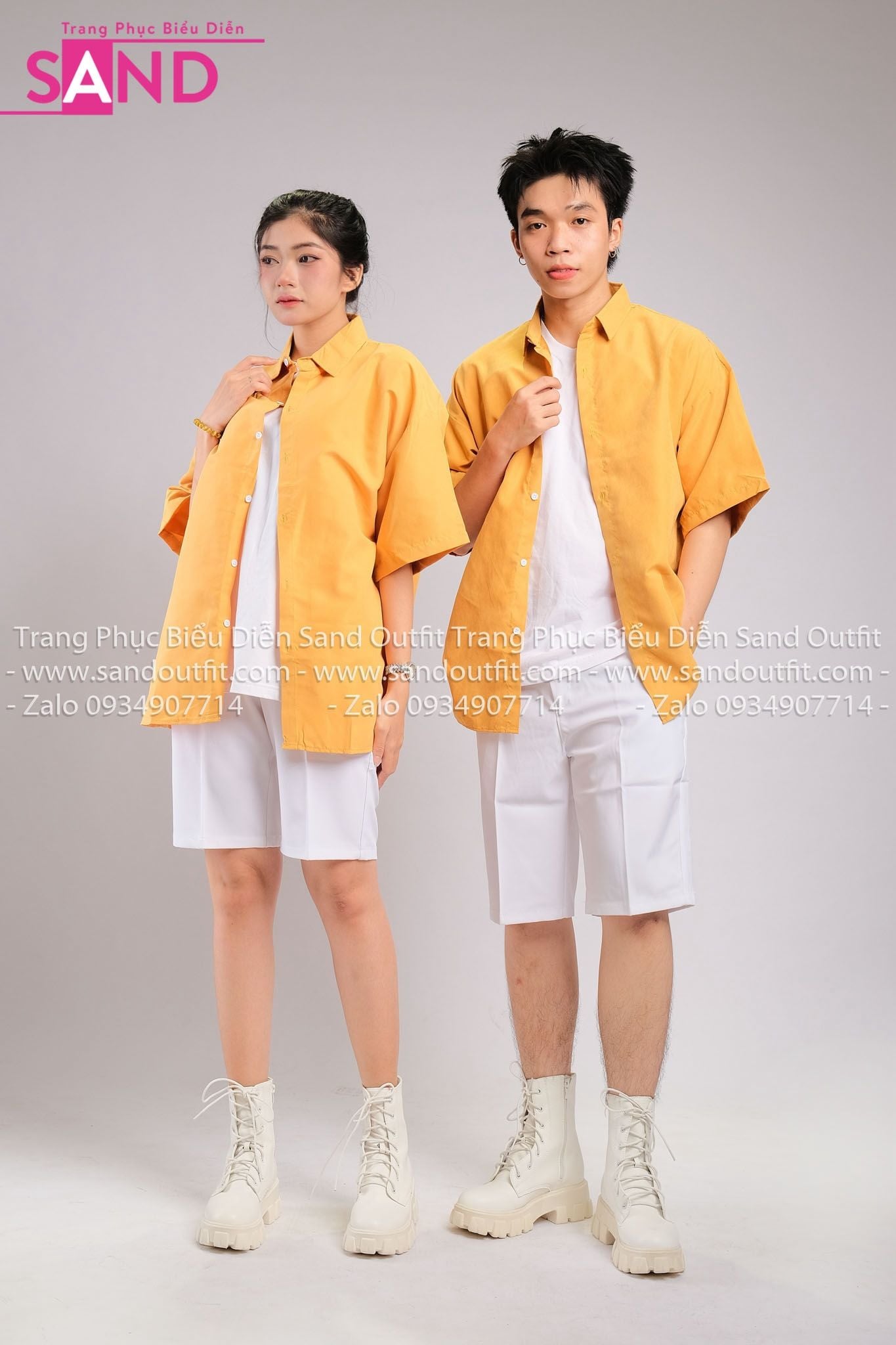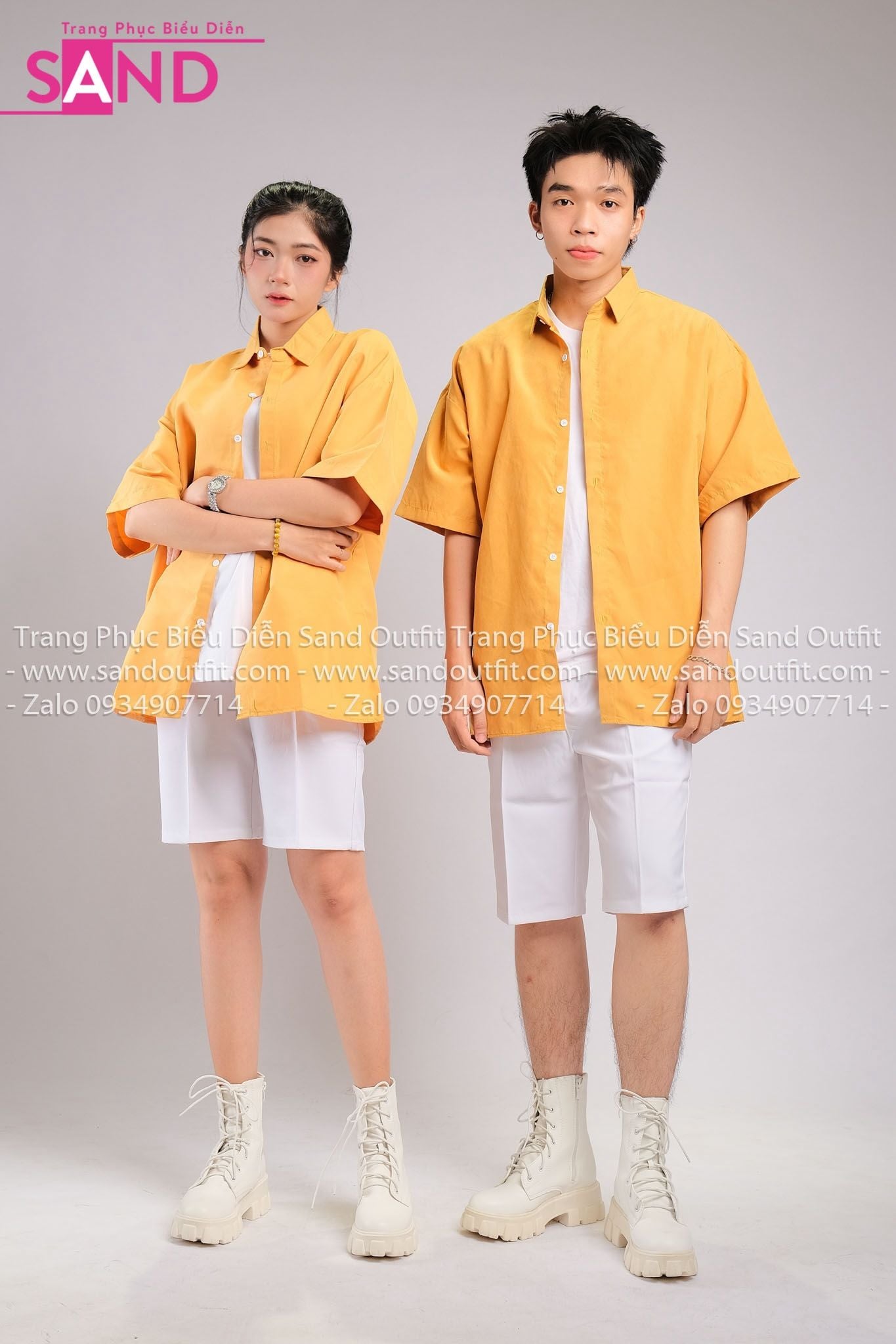 Outfit Phối Sẵn - (HST0001 Quần Short Trắng Form Rộng Nam phối HAS0302 Áo Sơ Mi Pastel Form Rộng - Màu Vàng)