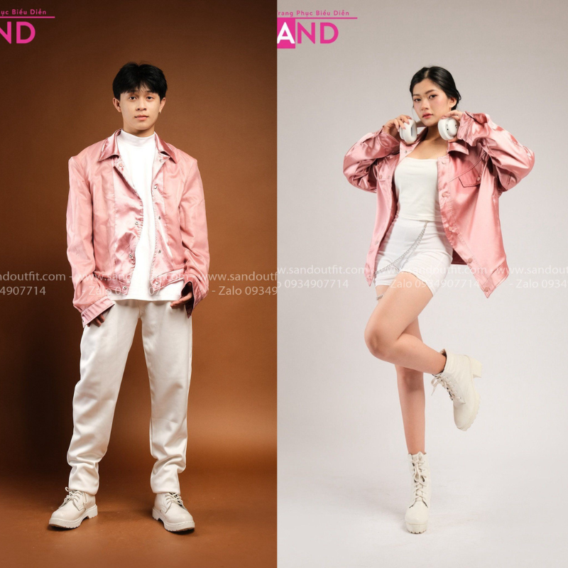 Outfit Phối Sẵn - (Quần Suông Trắng phối Áo Khoác Hồng)