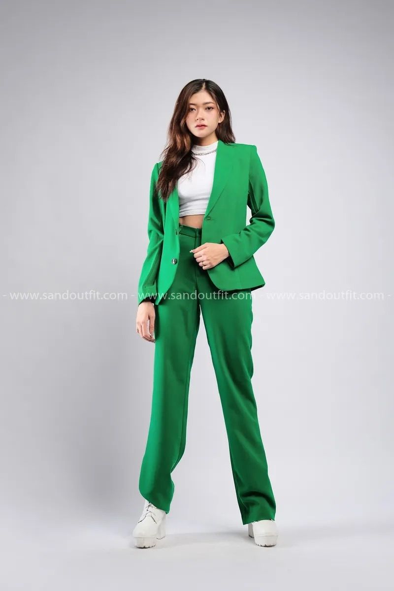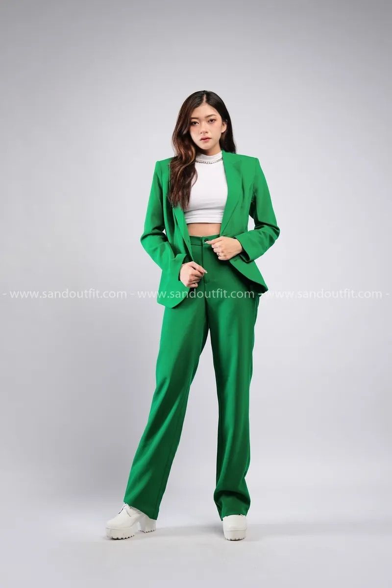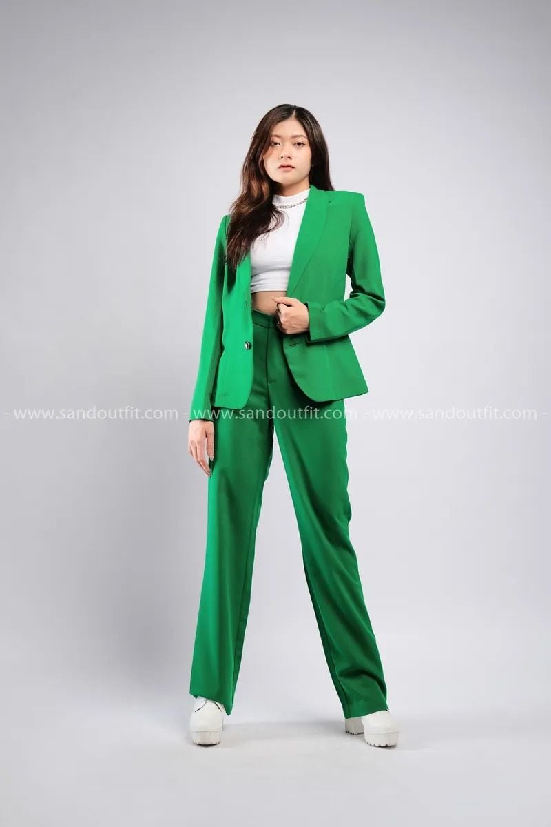 Outfit Phối Sẵn - (HQD0902 Quần Tây Suông Nữ Đủ Màu - Xanh Lá Cây Đậm HAV0902 Áo Khoác Vest Nữ Đủ Màu - Xanh Lá Cây Đậm )