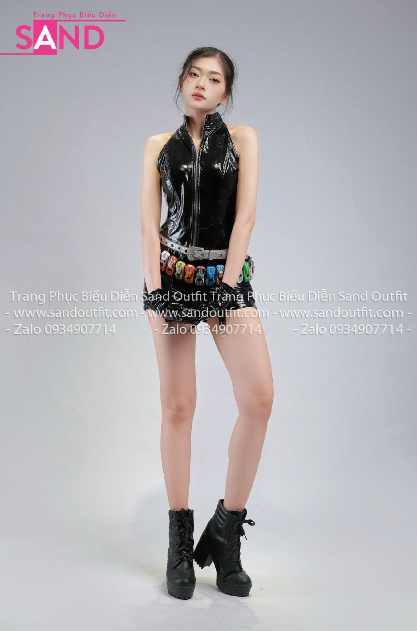 OUTFIT PHỐI SẴN (HBB0102 Áo Da Bóng Đen Khóa Kẹp phối HQA0102 Quần Short Da Bóng - PNA0101 Nịt Xe)