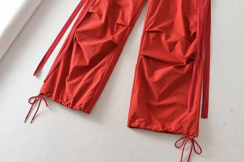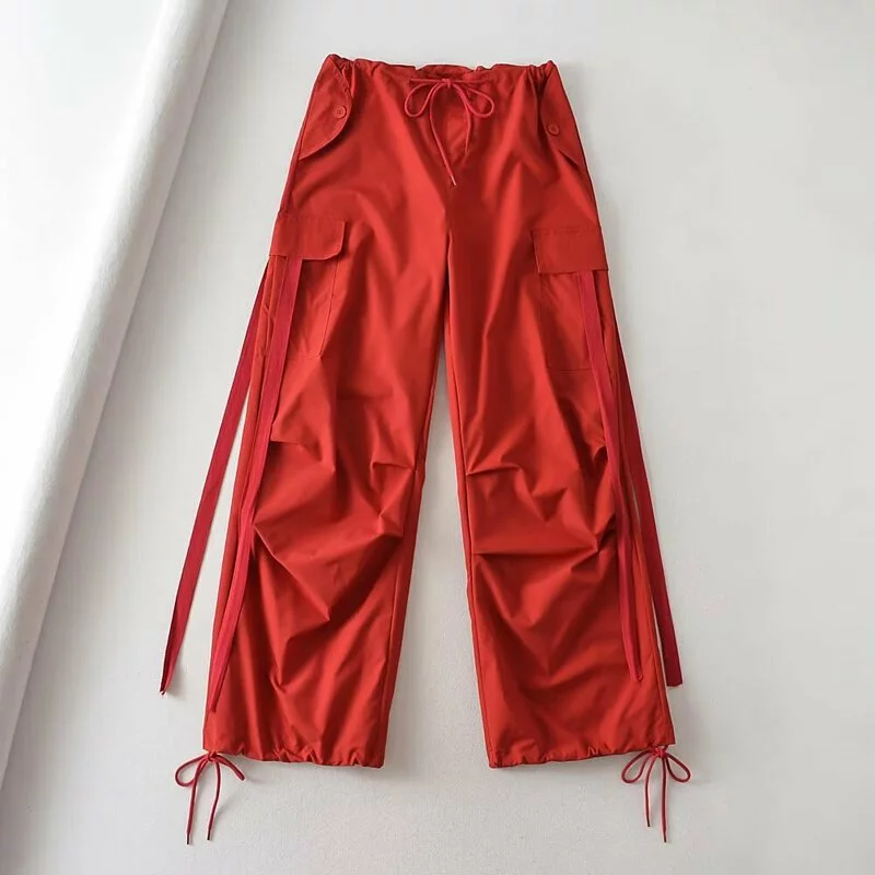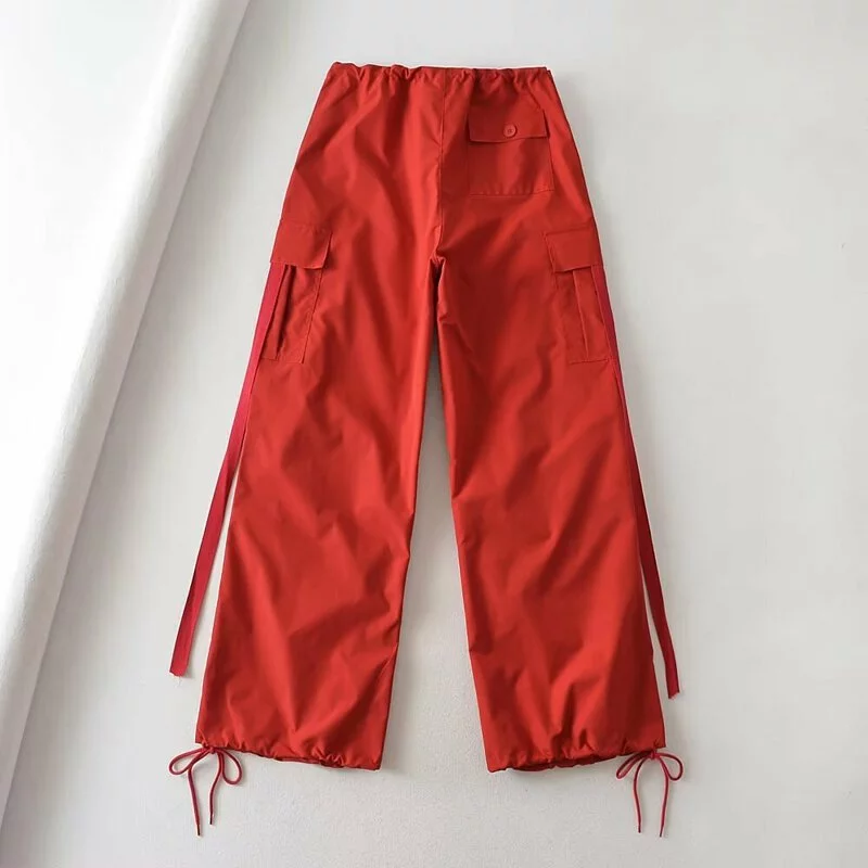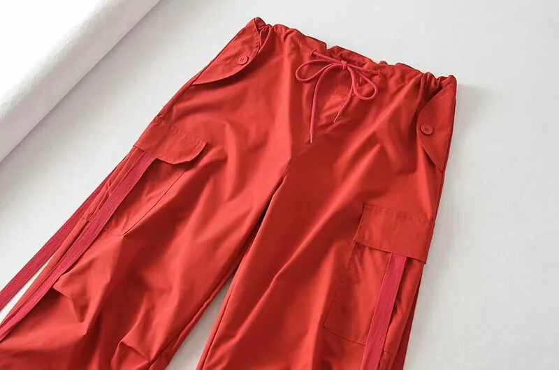 HQN0401 Quần Dài Đỏ Nắp Túi Hộp Ngang Phối Dây