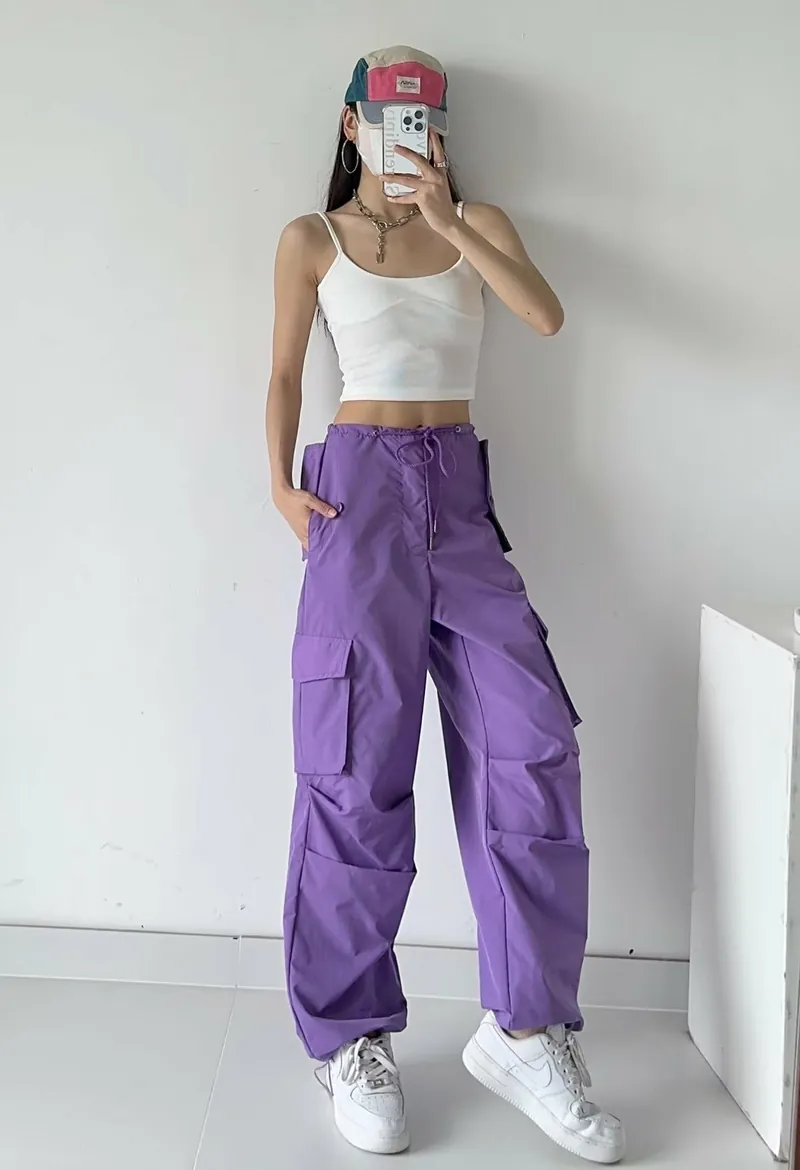 HQN0701 Quần Dài Tím Nắp Túi Hộp Ngang