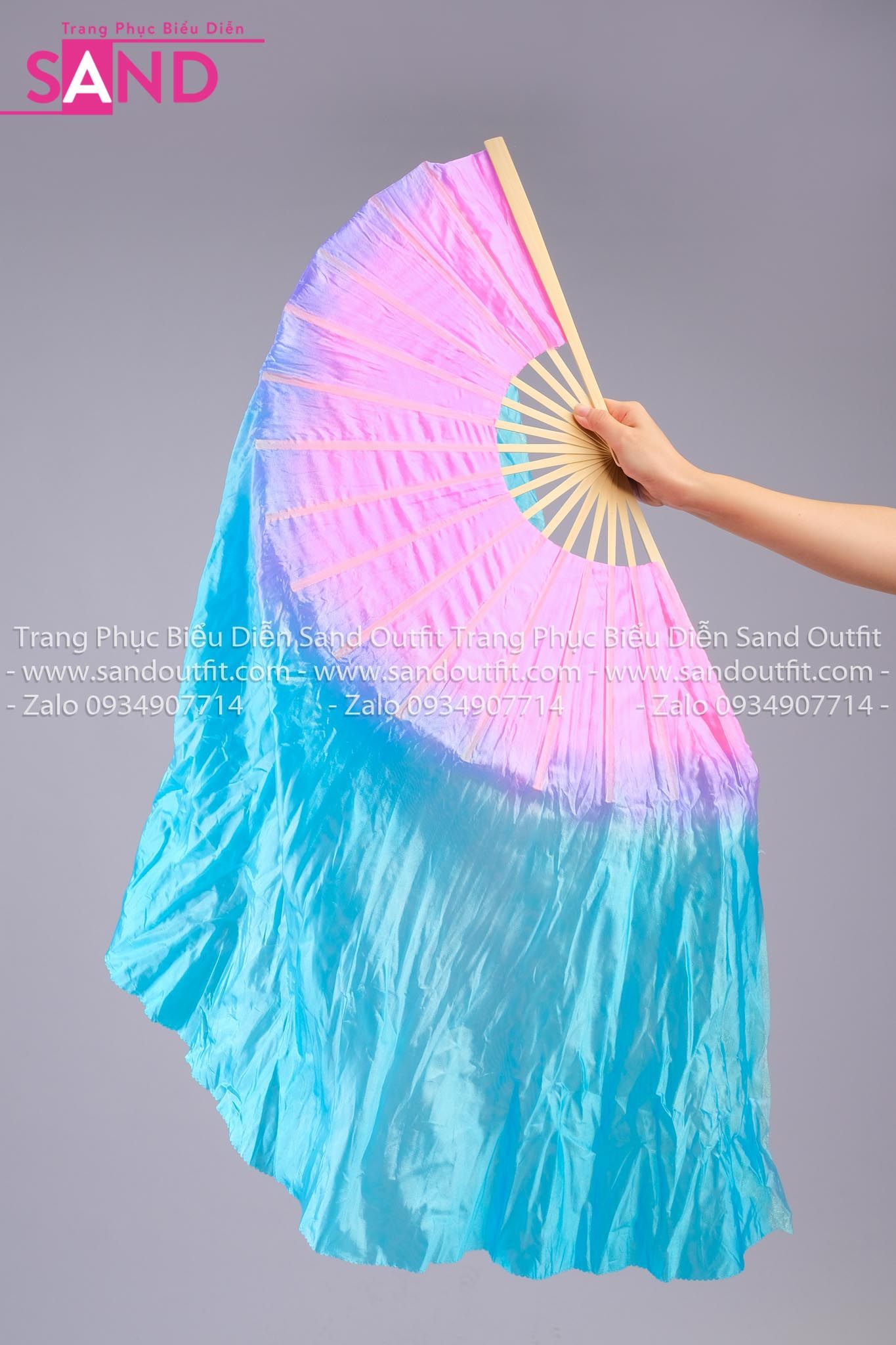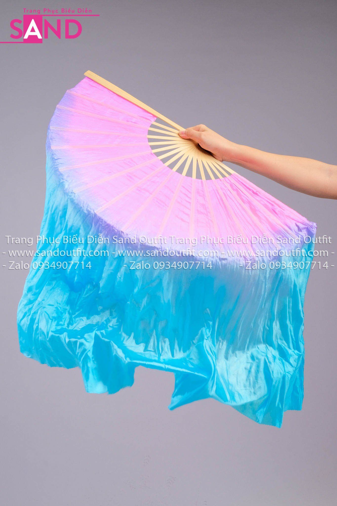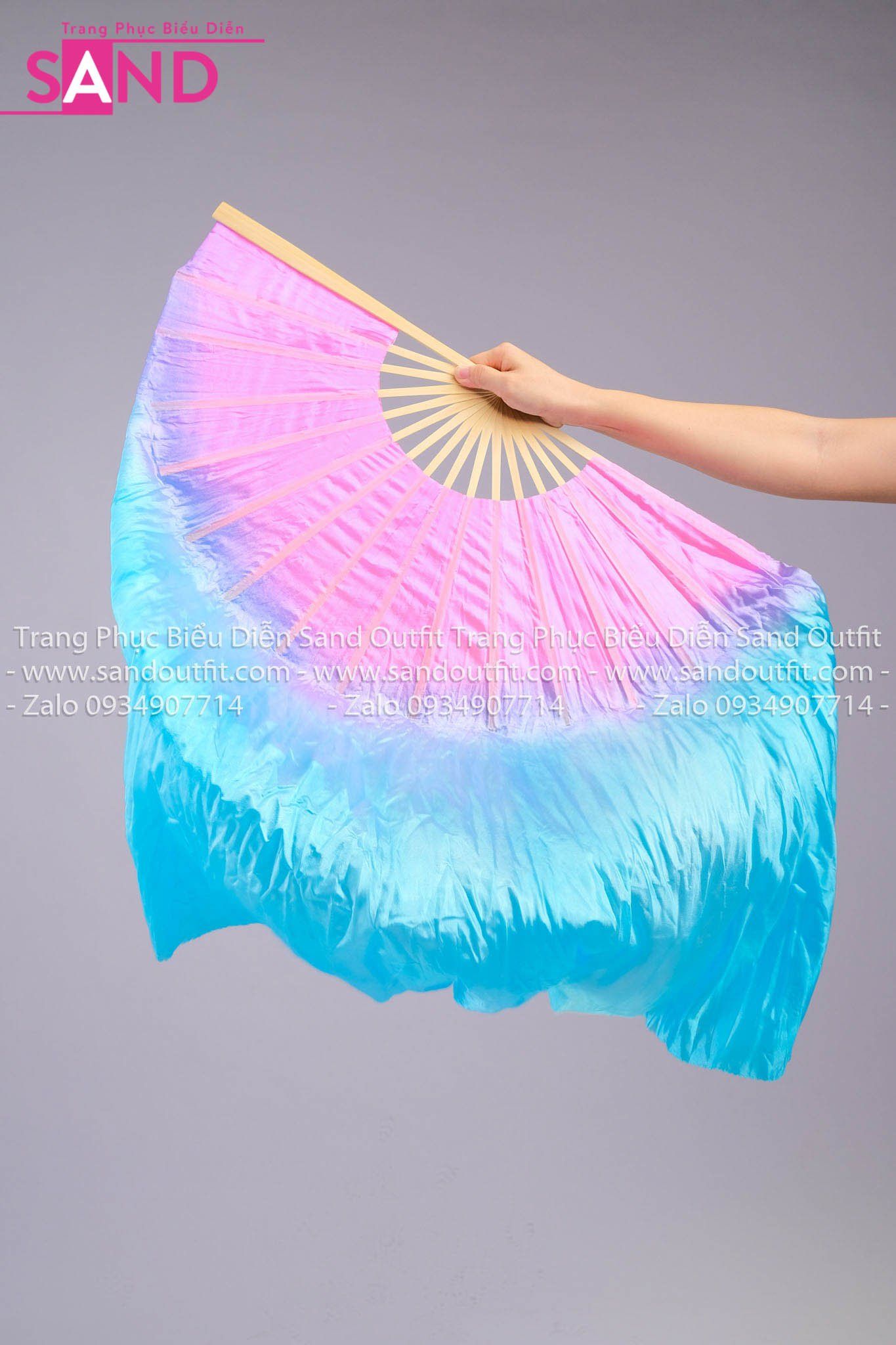 DQU0802 Quạt Lụa Lửng Loang Hồng Xanh