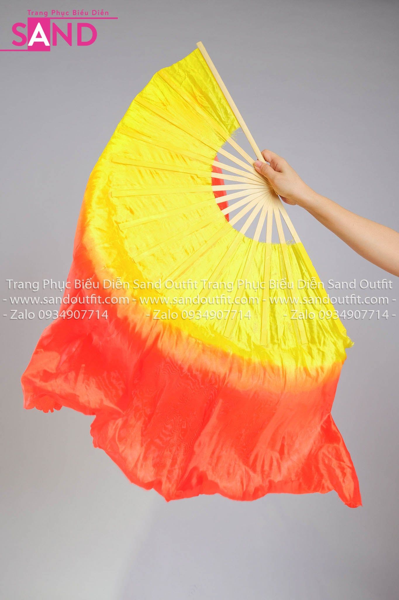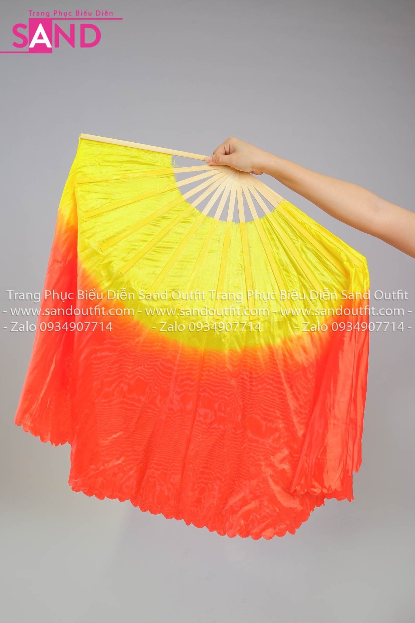 DQU0312 Quạt Lụa Lửng Loang Vàng Cam