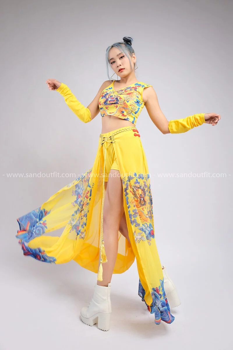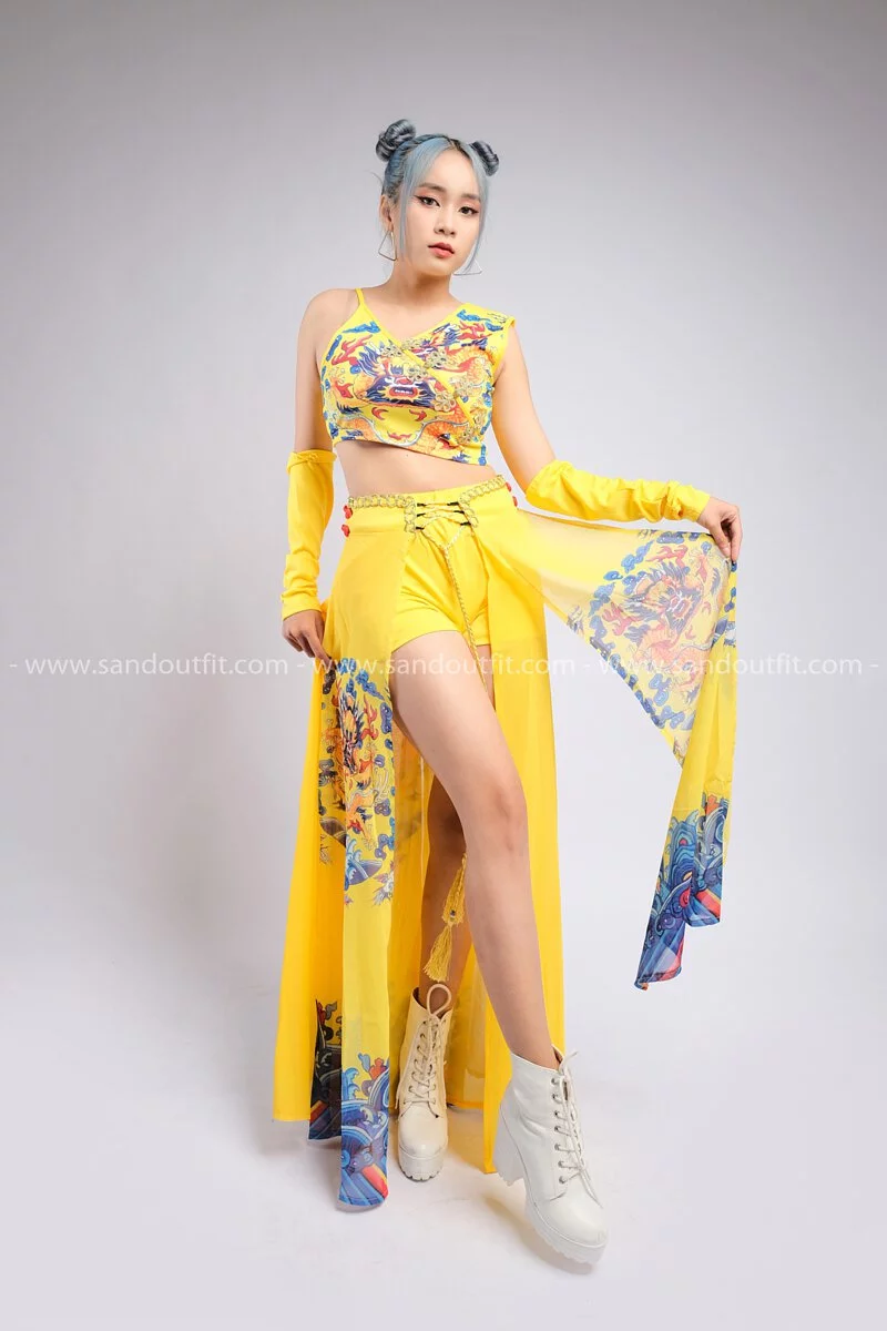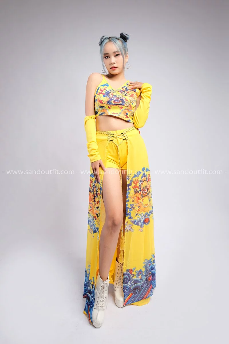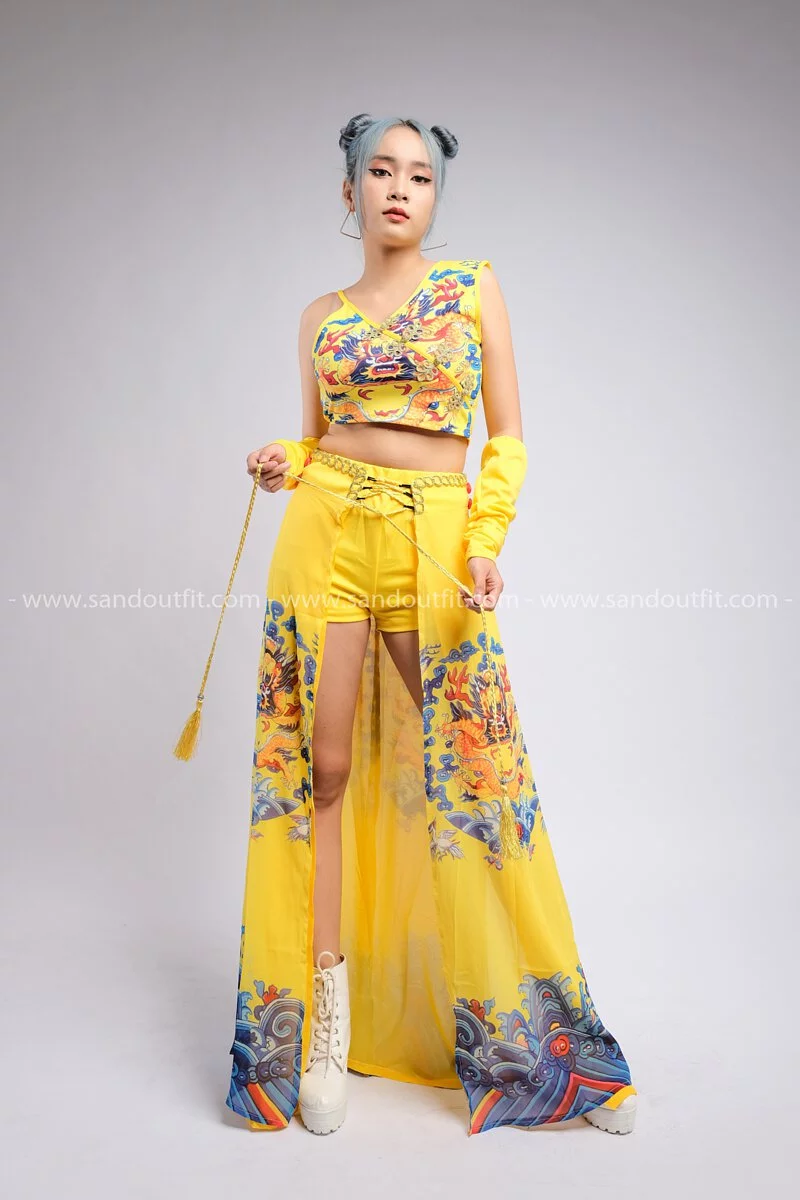 TNQ0302 Set áo kèm tà váy trung hoa cách tân rồng phượng - Vàng