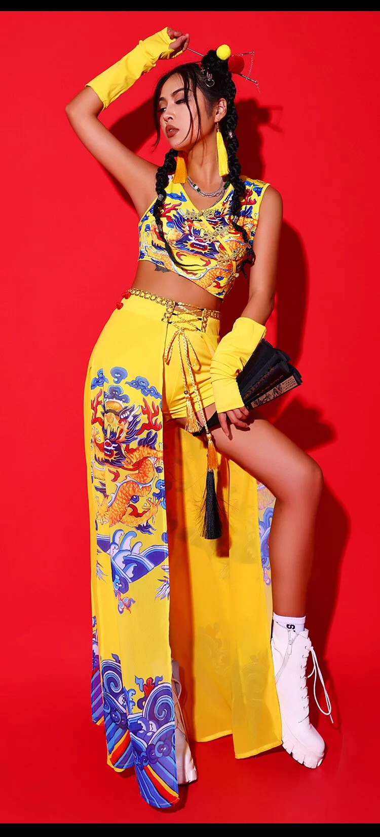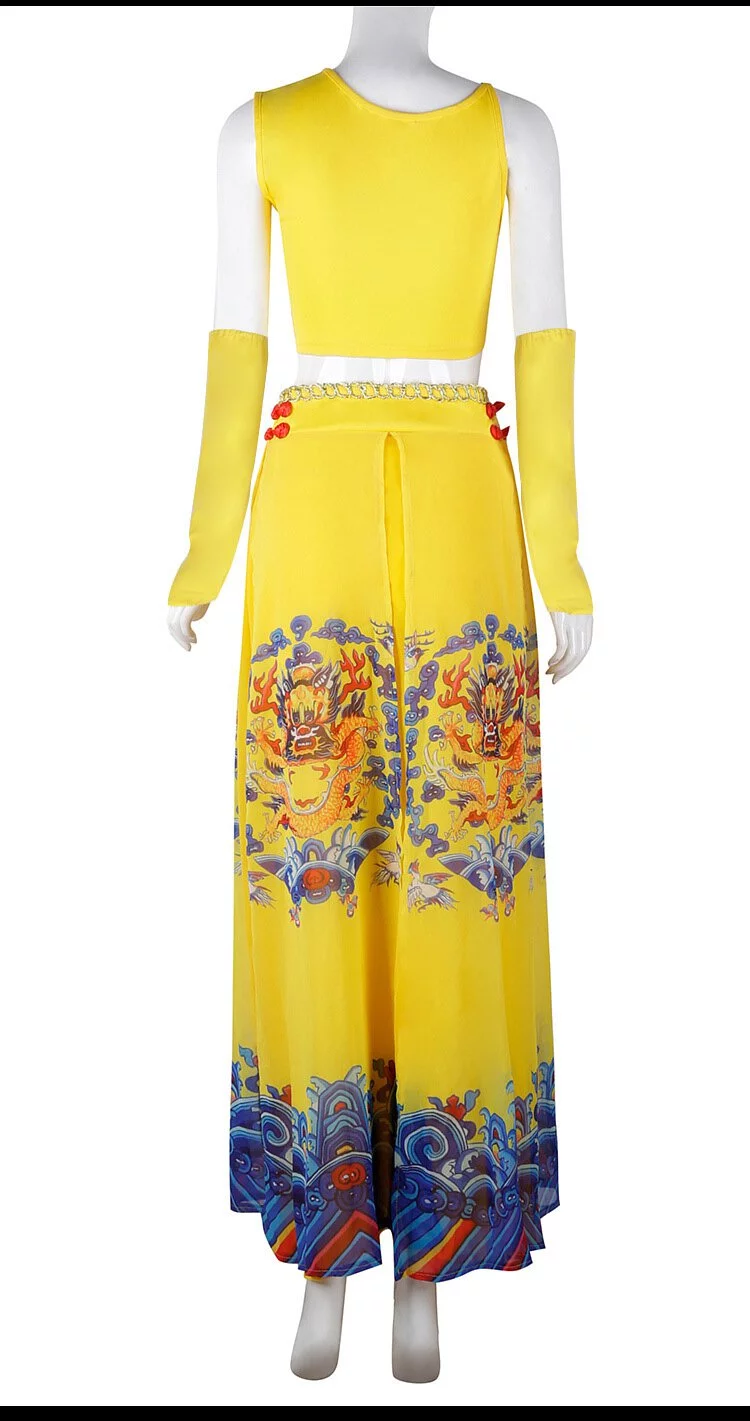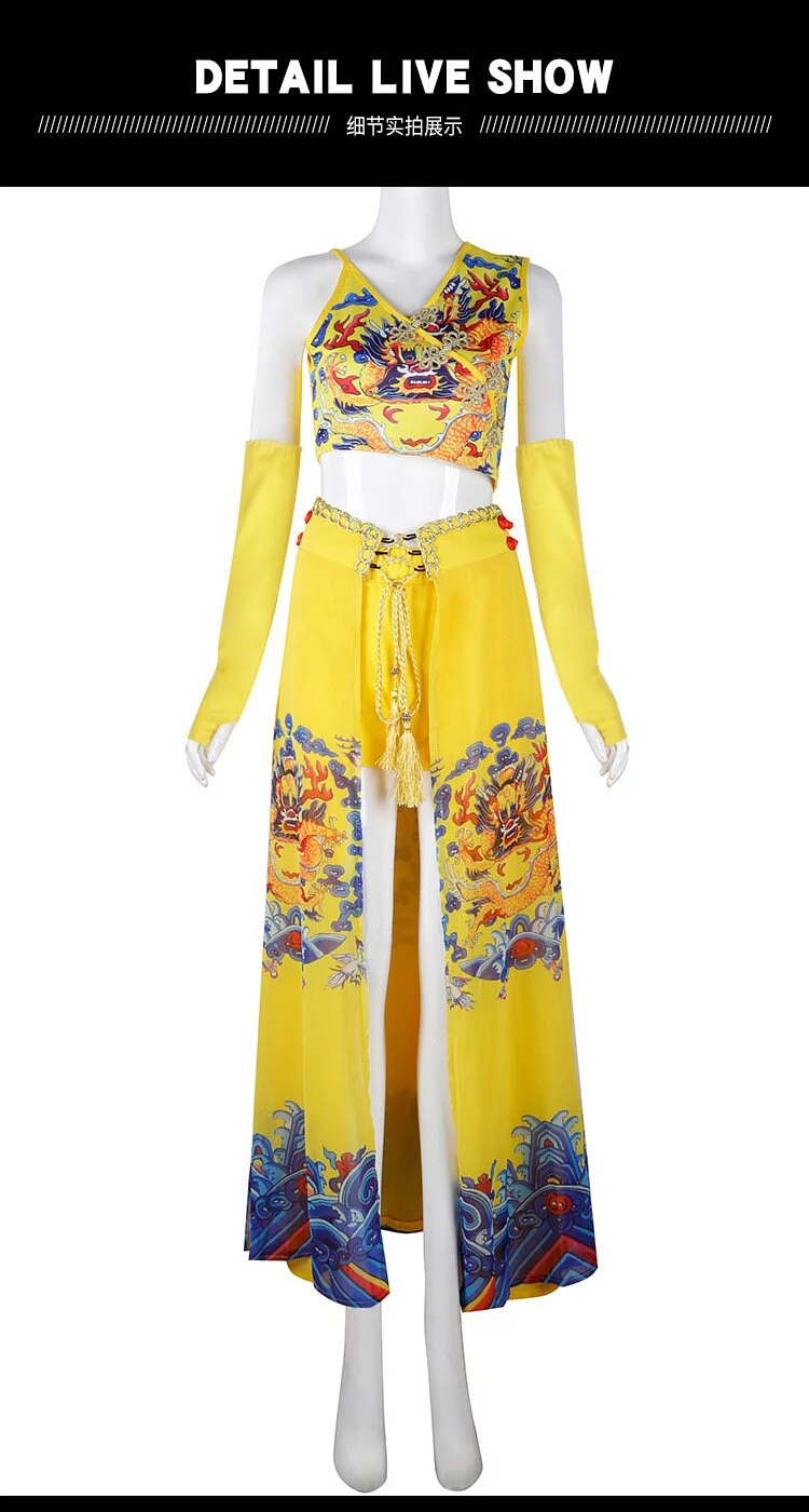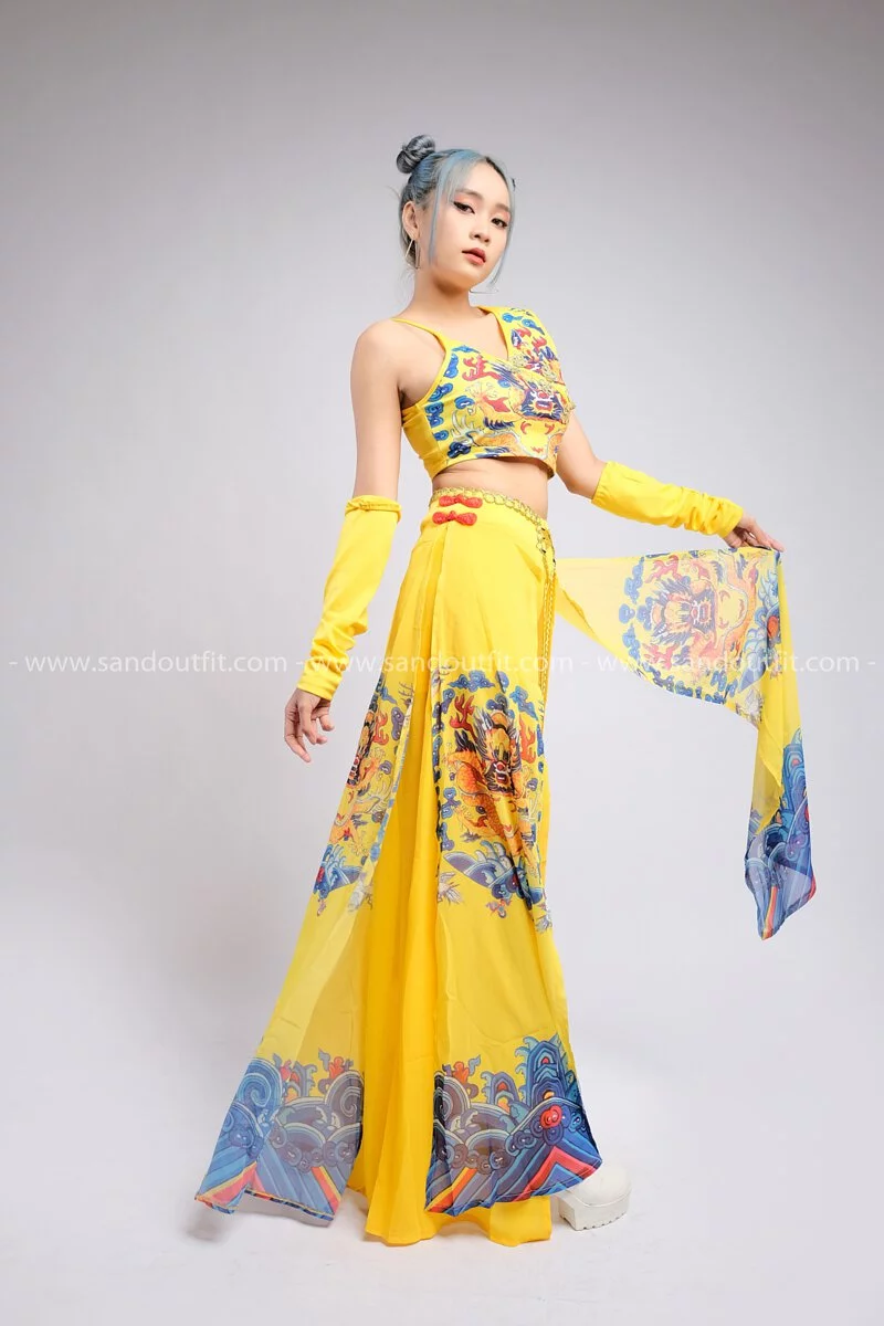 TNQ0302 Set áo kèm tà váy trung hoa cách tân rồng phượng - Vàng