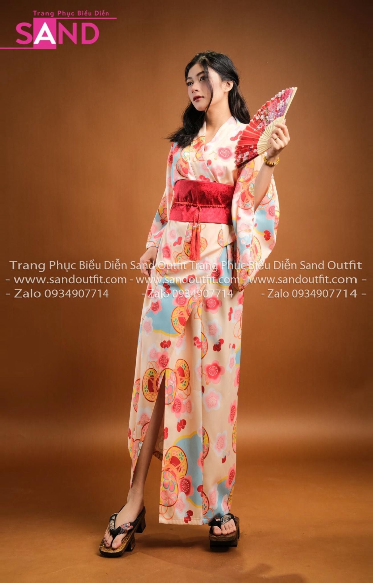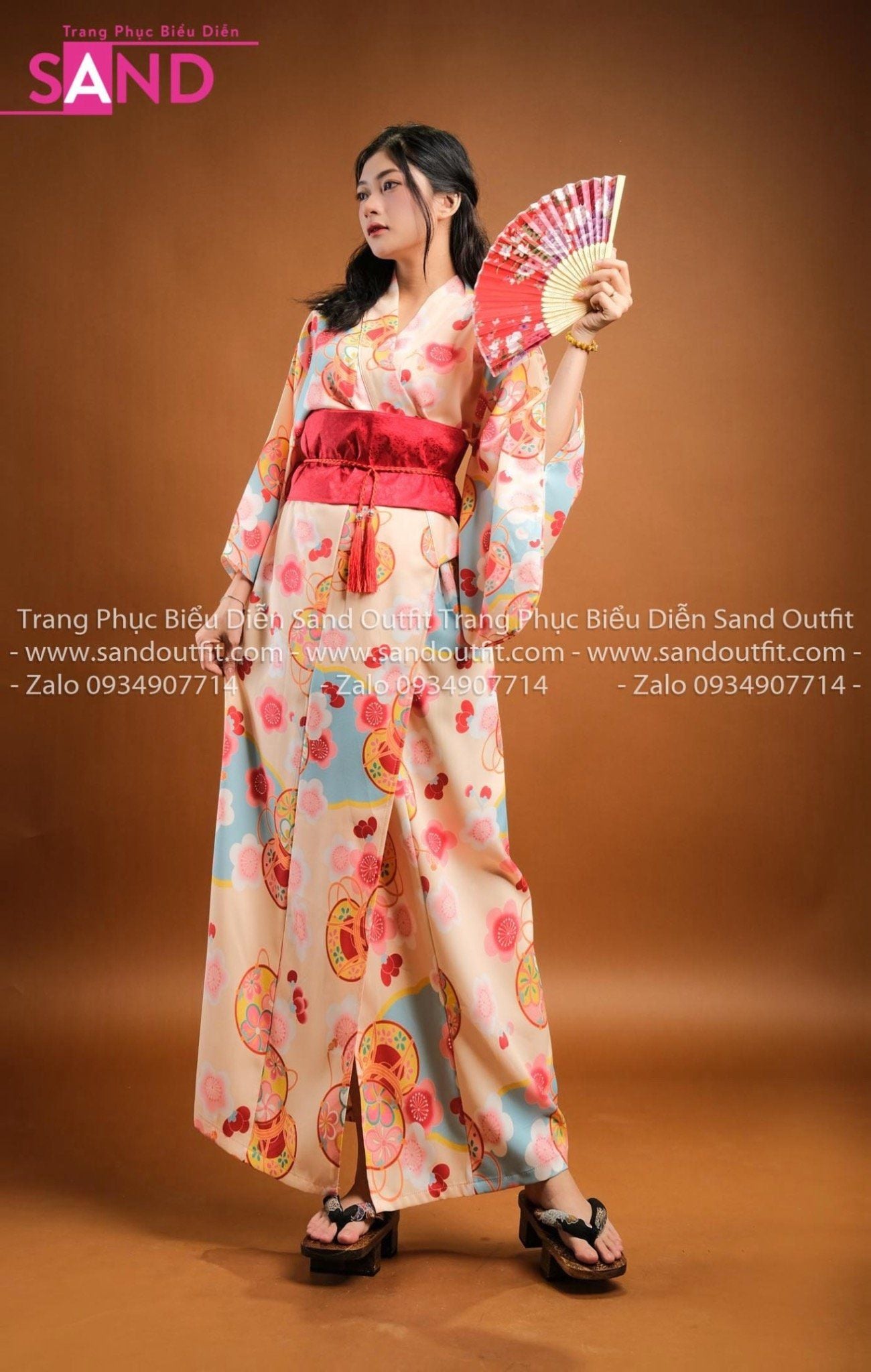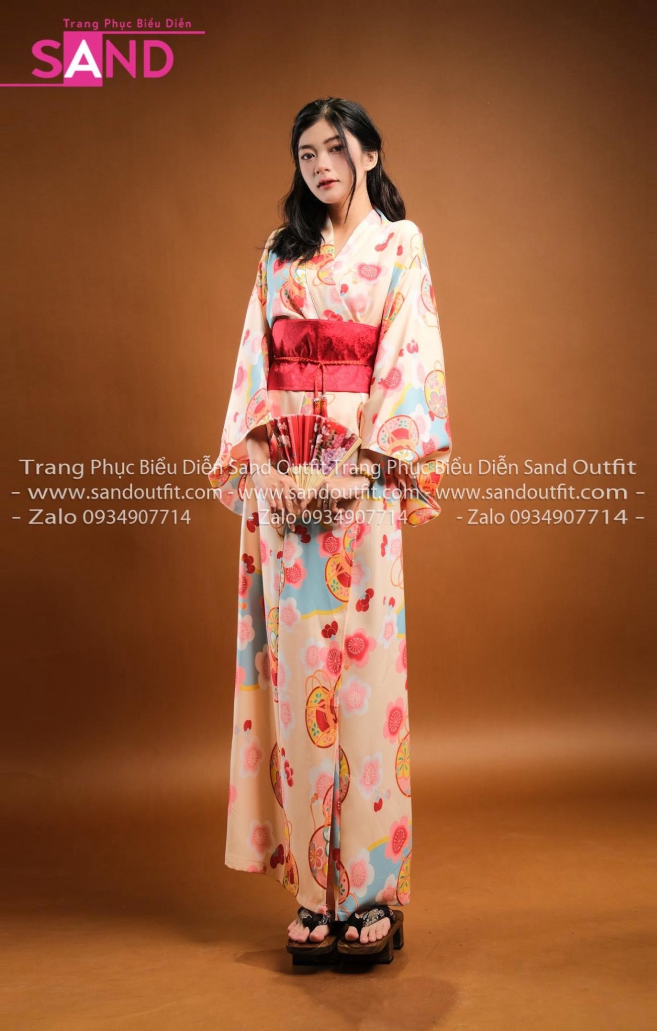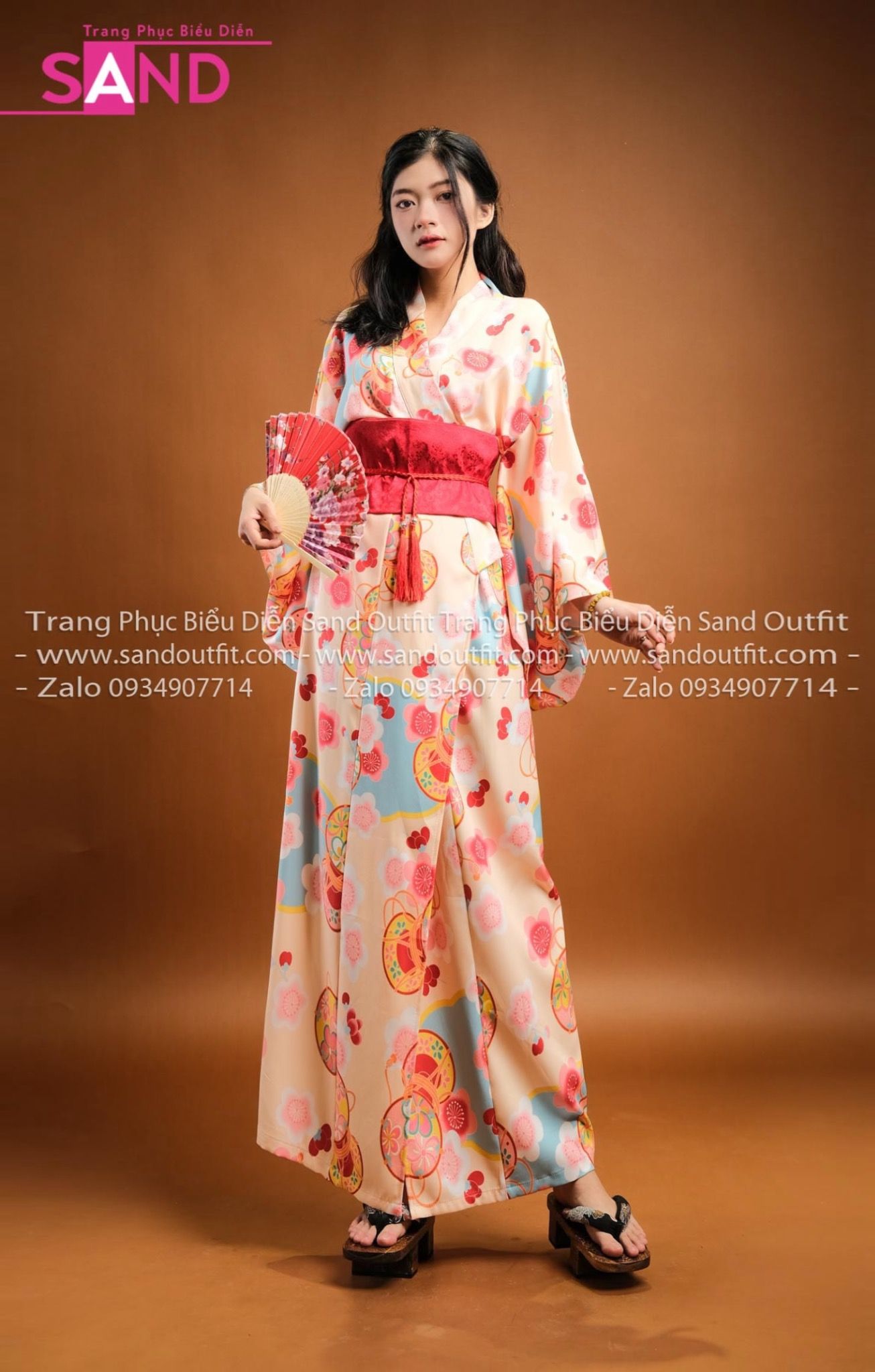 TNN0601 Set Kimono Cam Đỏ Hoạ Tiết Hoa