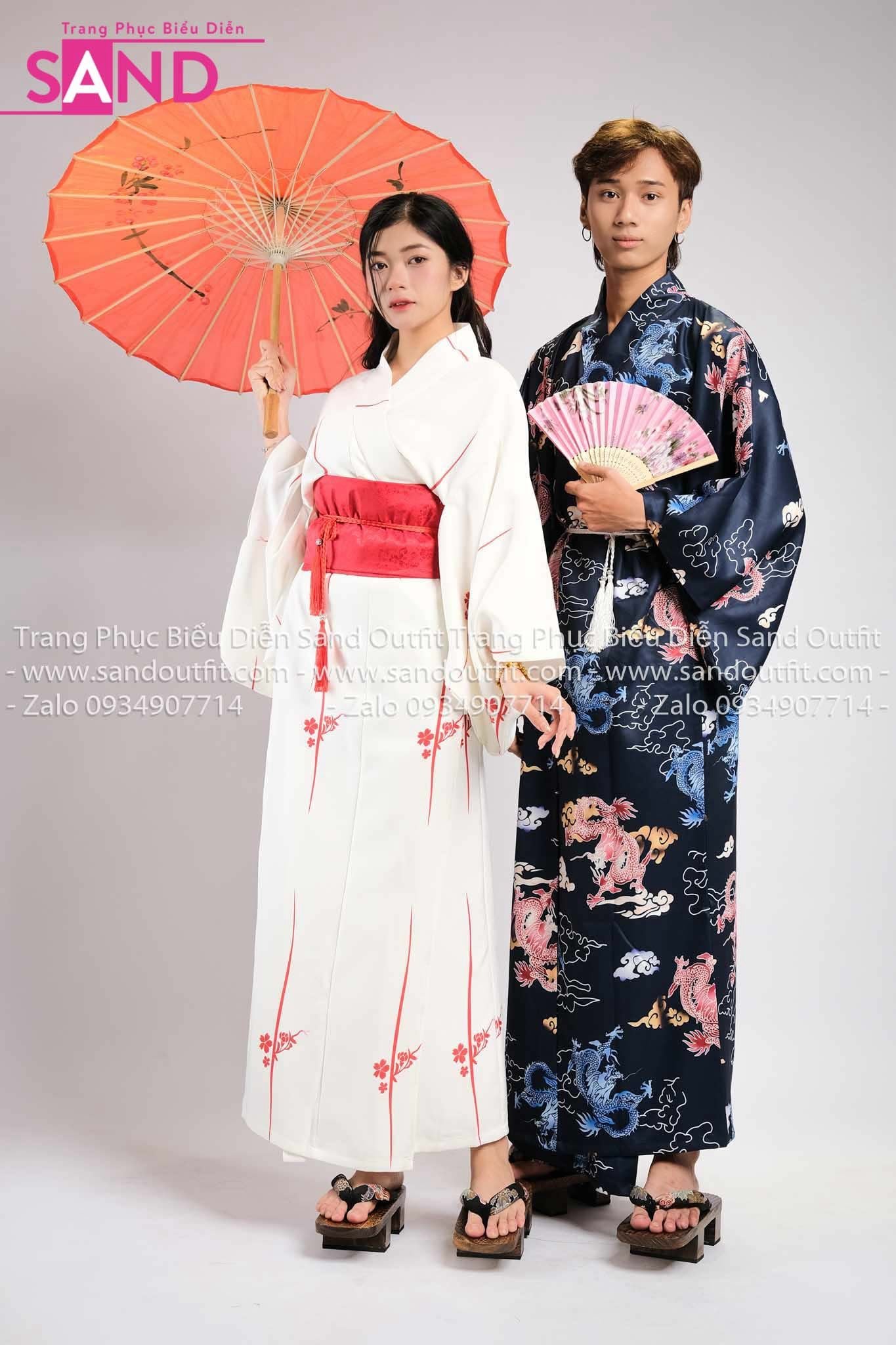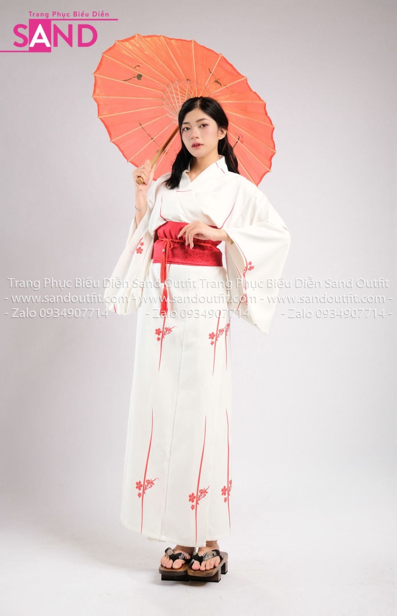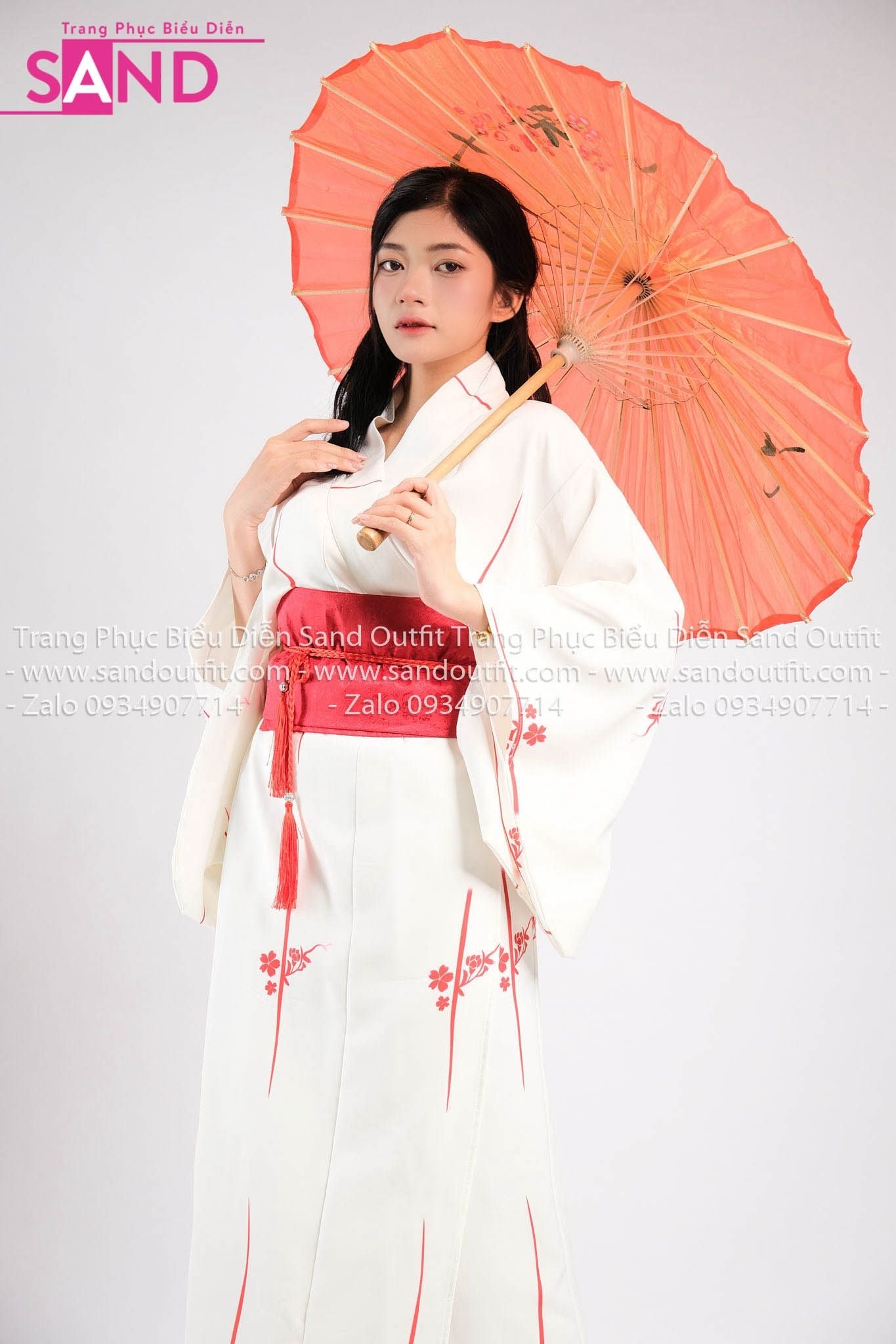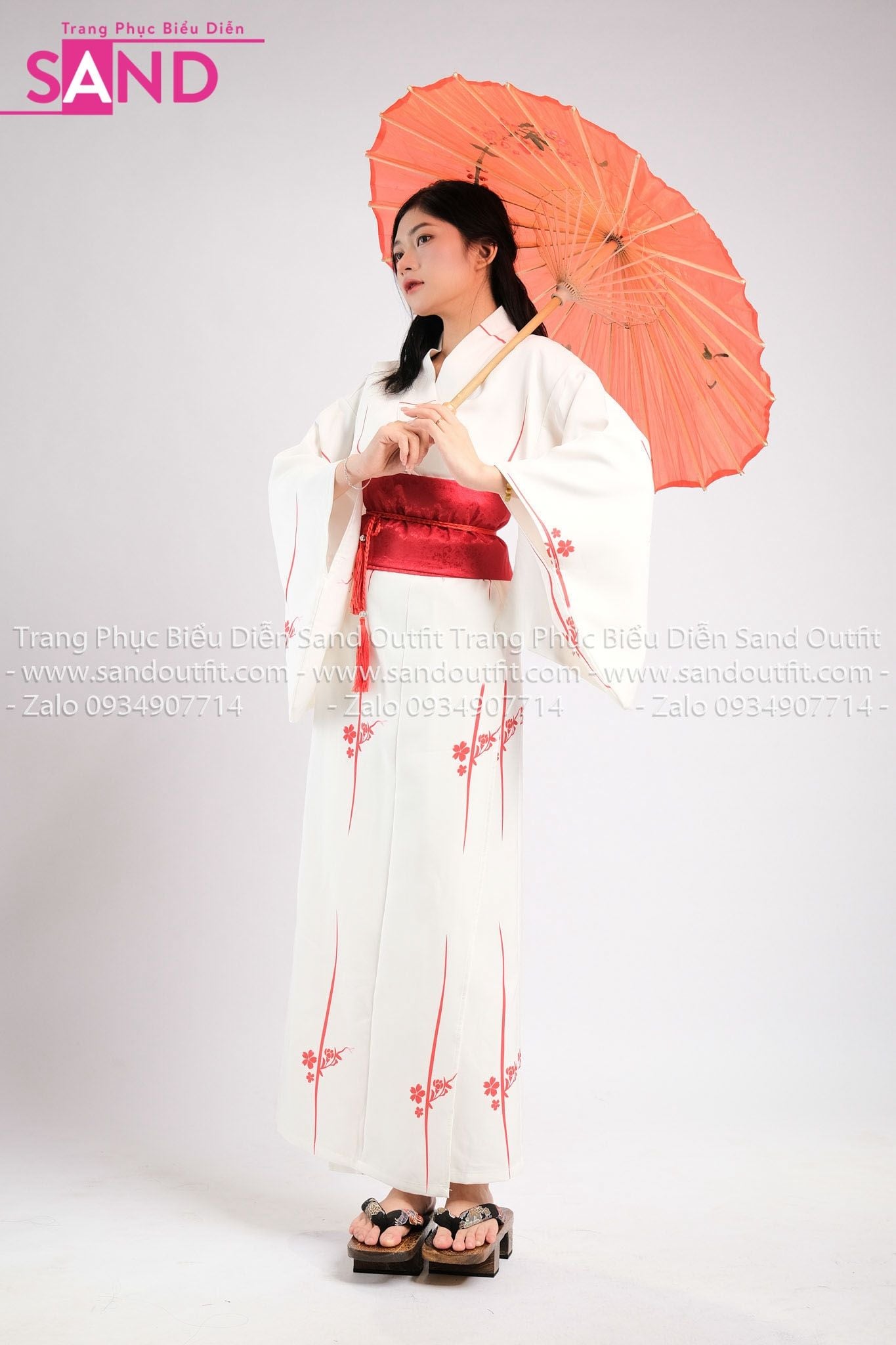TNN0002 Set Kimono Trắng Hoạ Tiết Đỏ