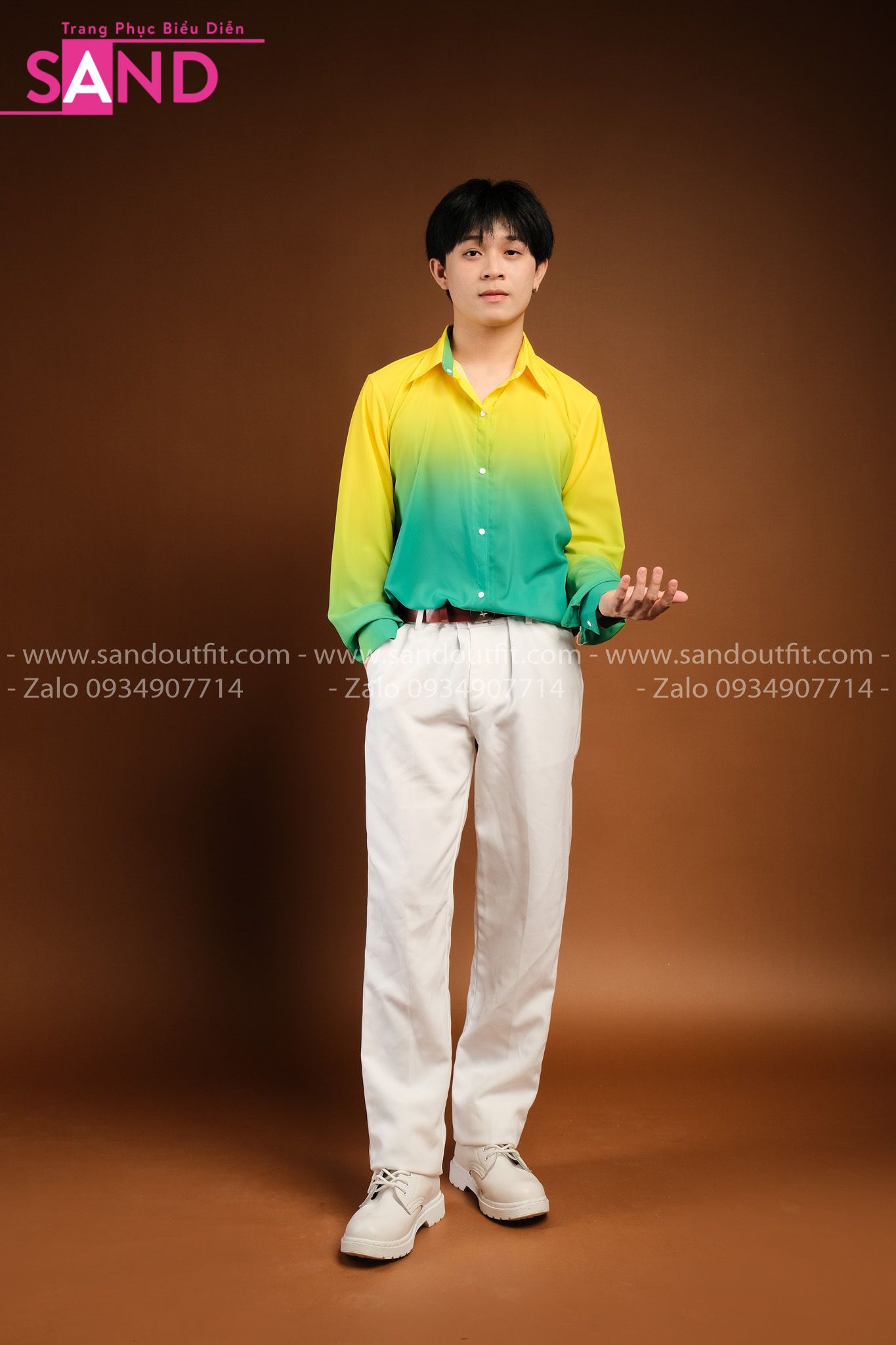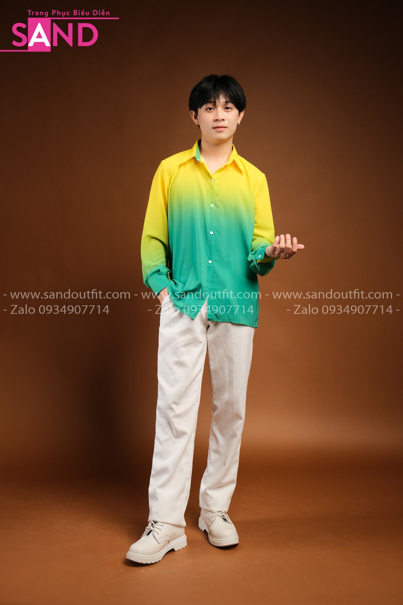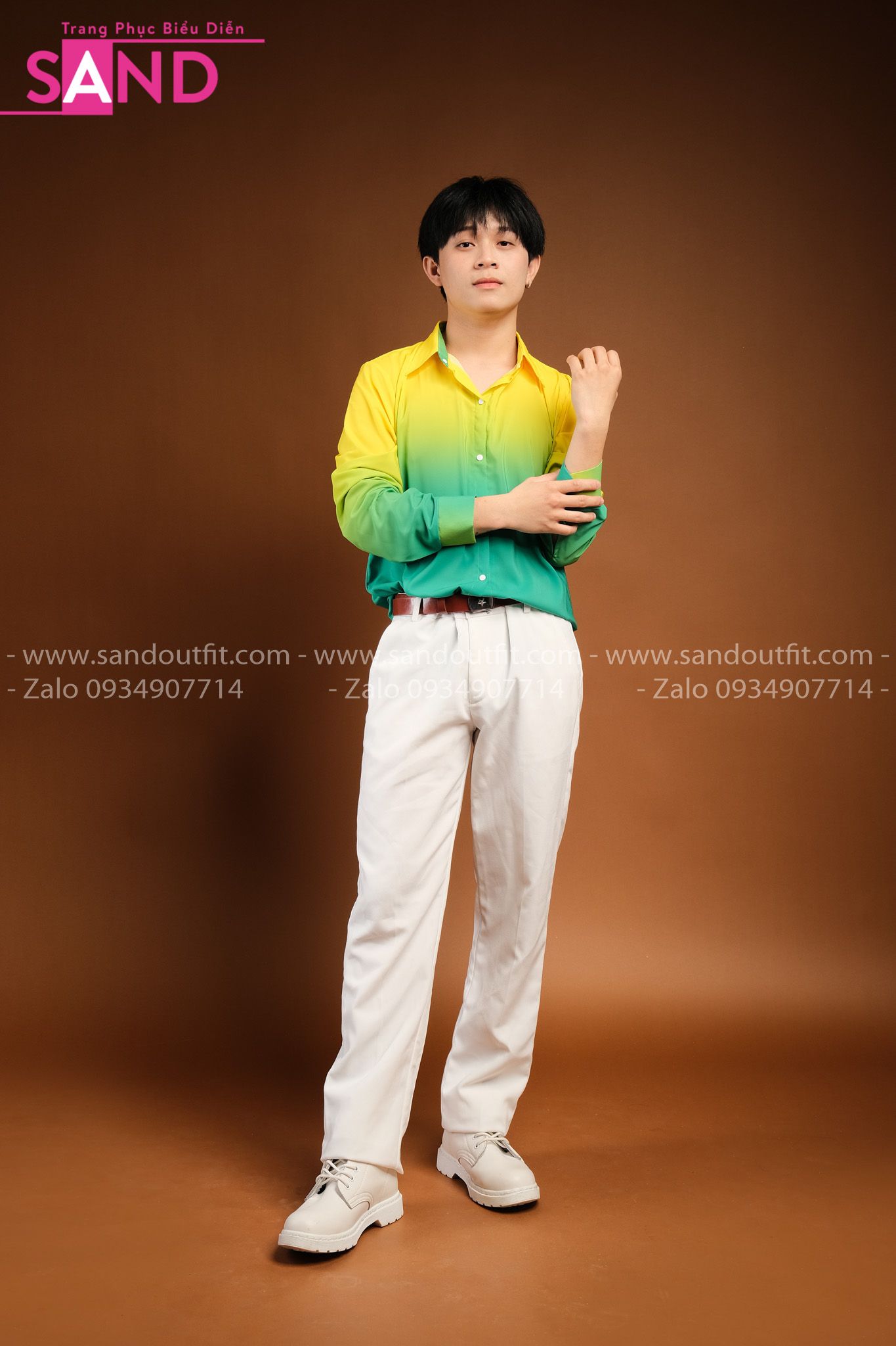 HAS1202 Áo Sơ Mi Nam Xanh Loang Vàng phối HQD0004 Quần Suông Trắng Nam Vải Umi
